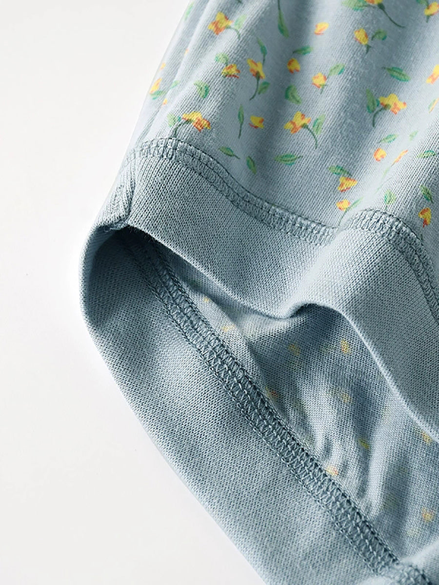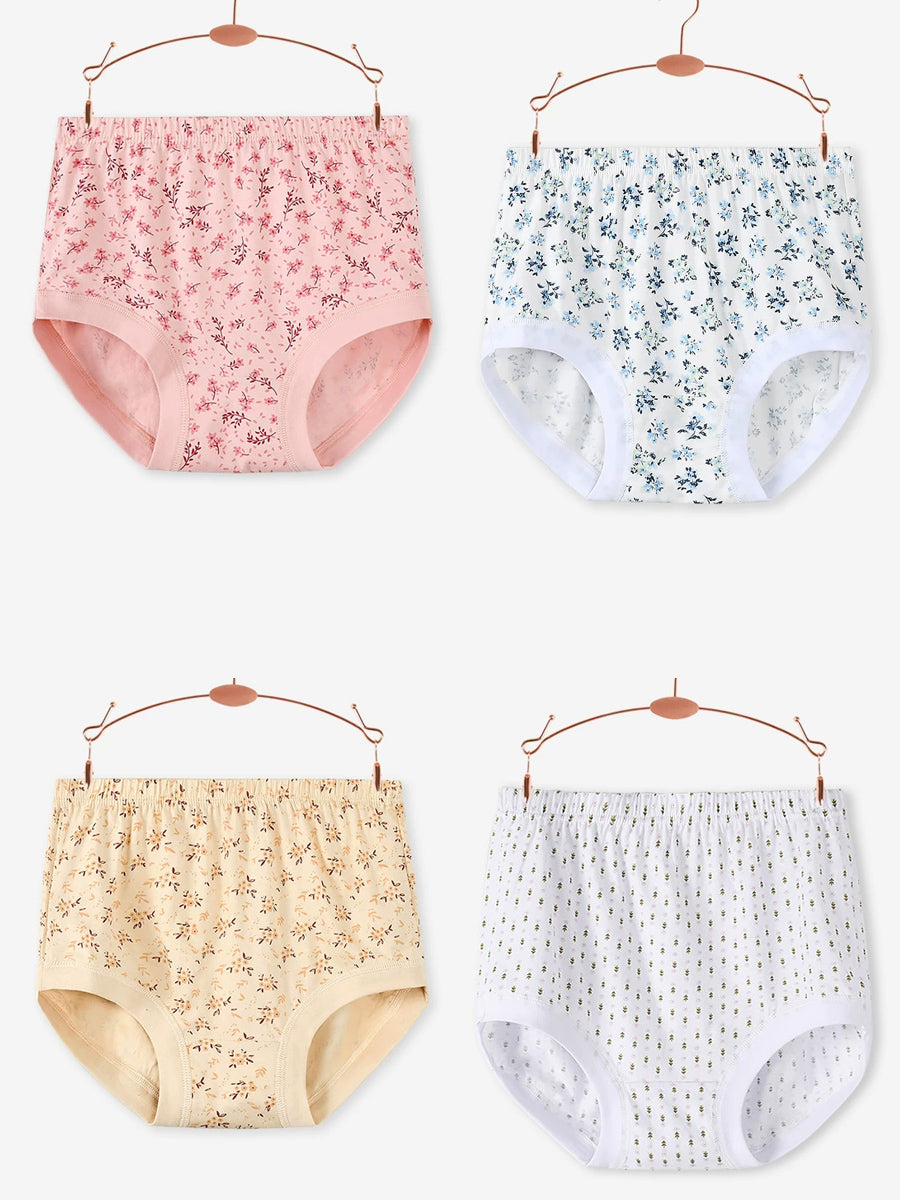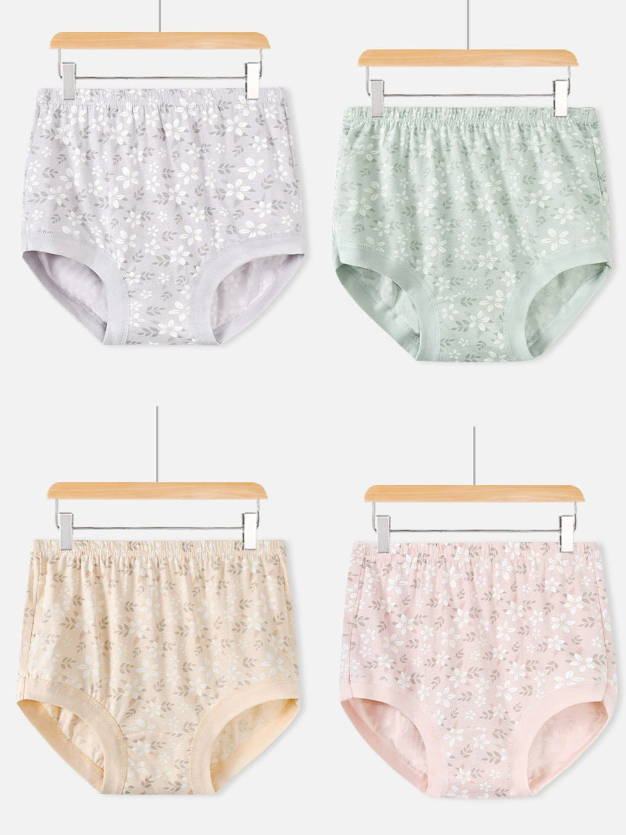4 stk. kunstnerisk blomsterprintet højtaljet undertøj til kvinder