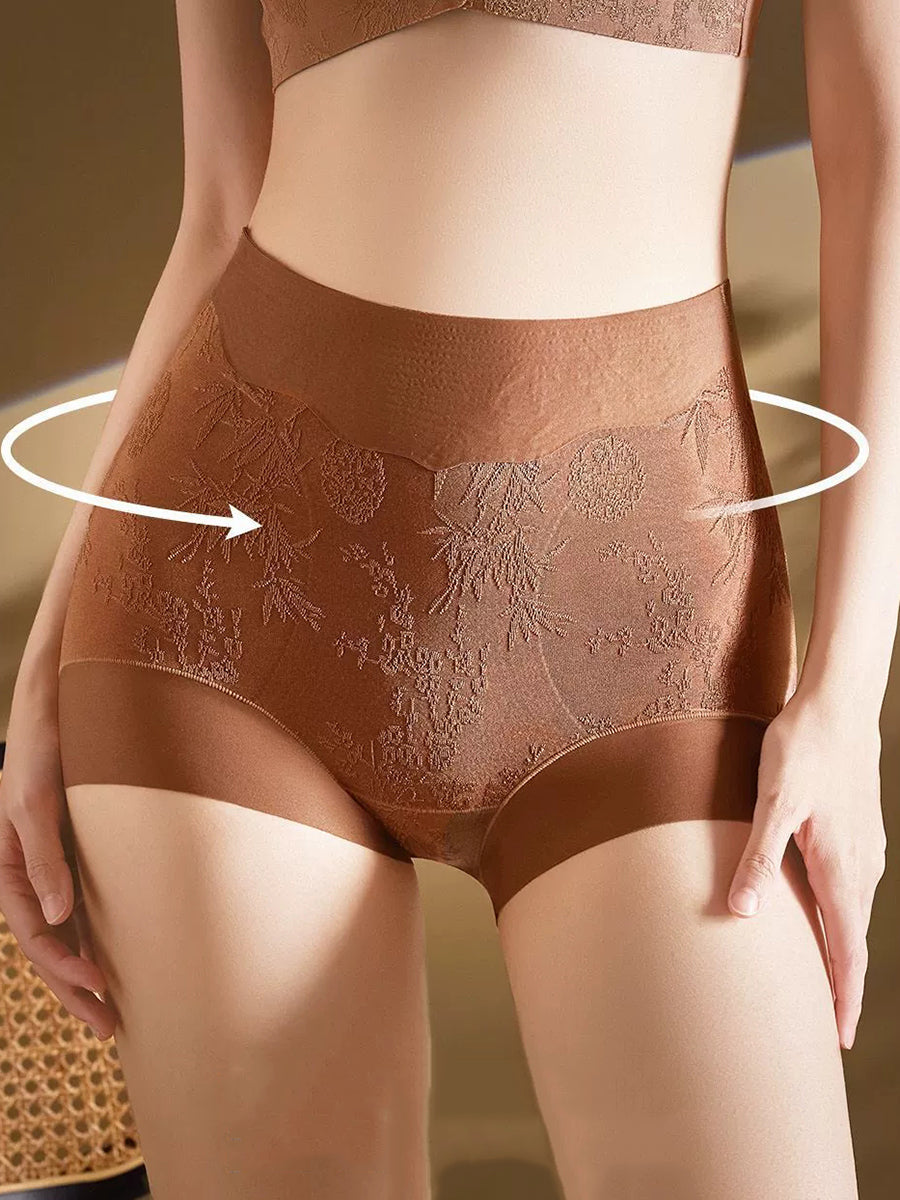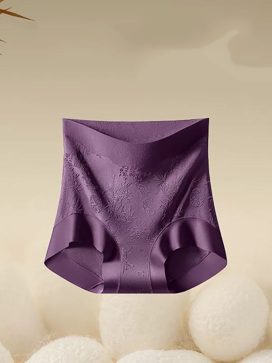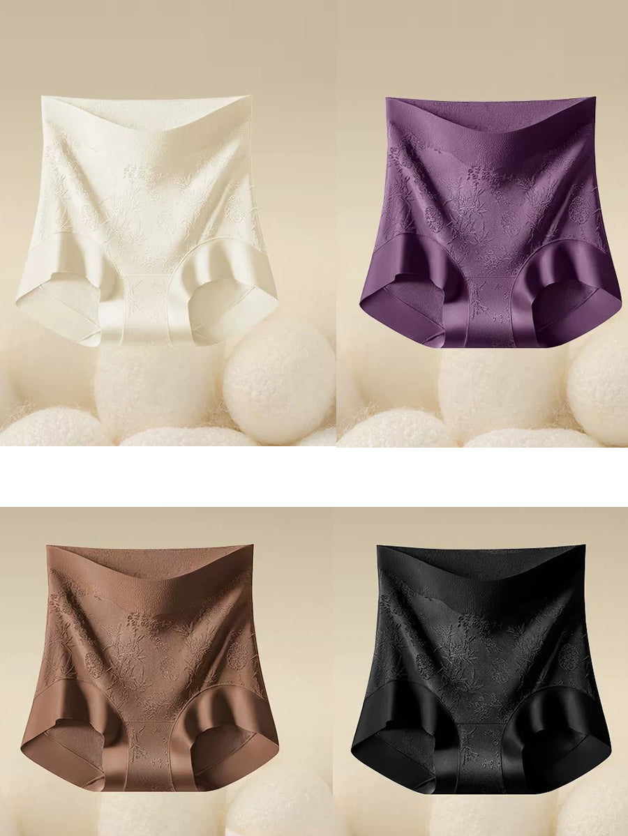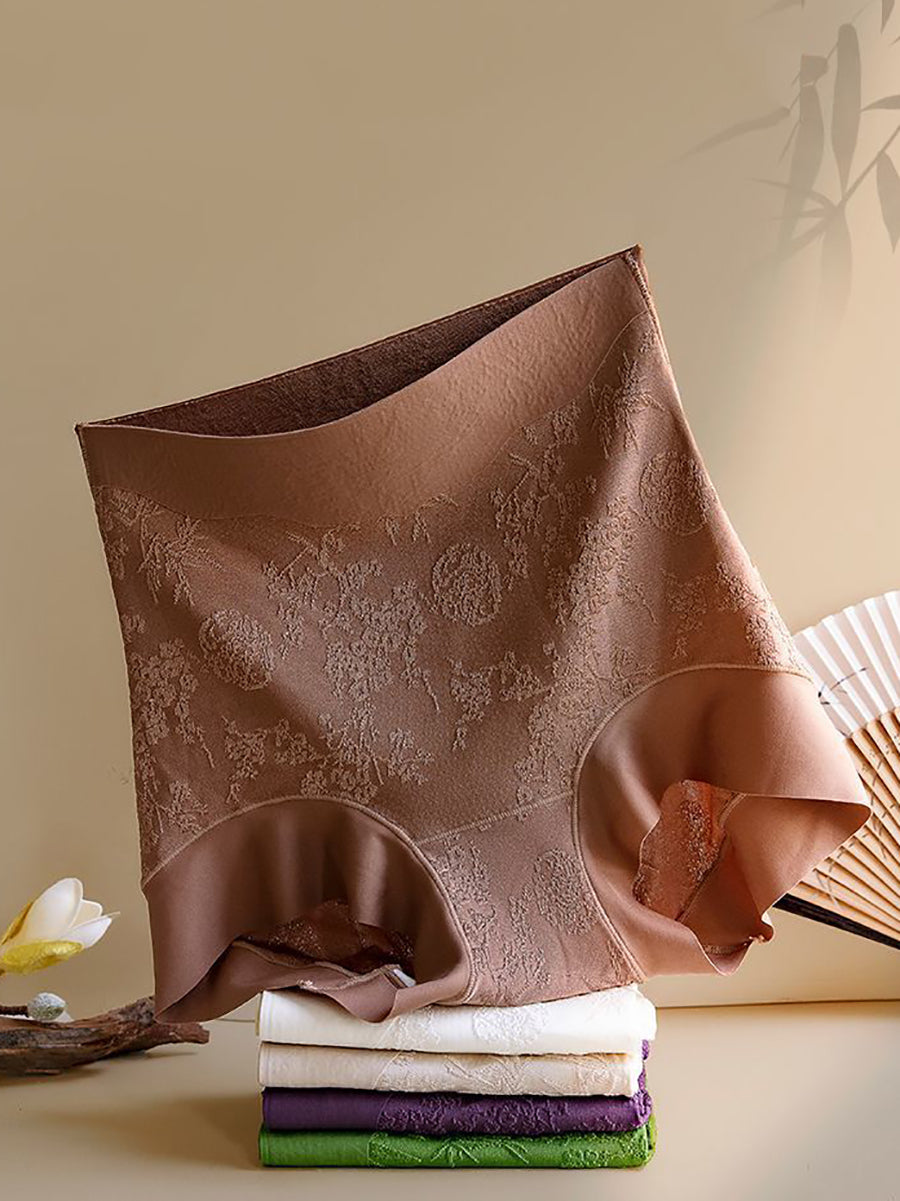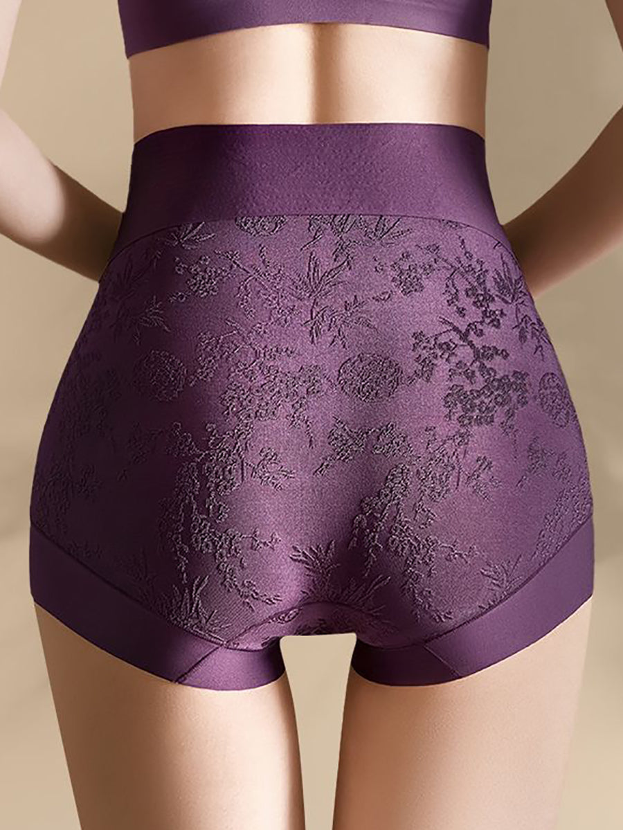 4 stk. højtaljede undertøj til kvinder med kunstnerisk blomstermønster og jacquard