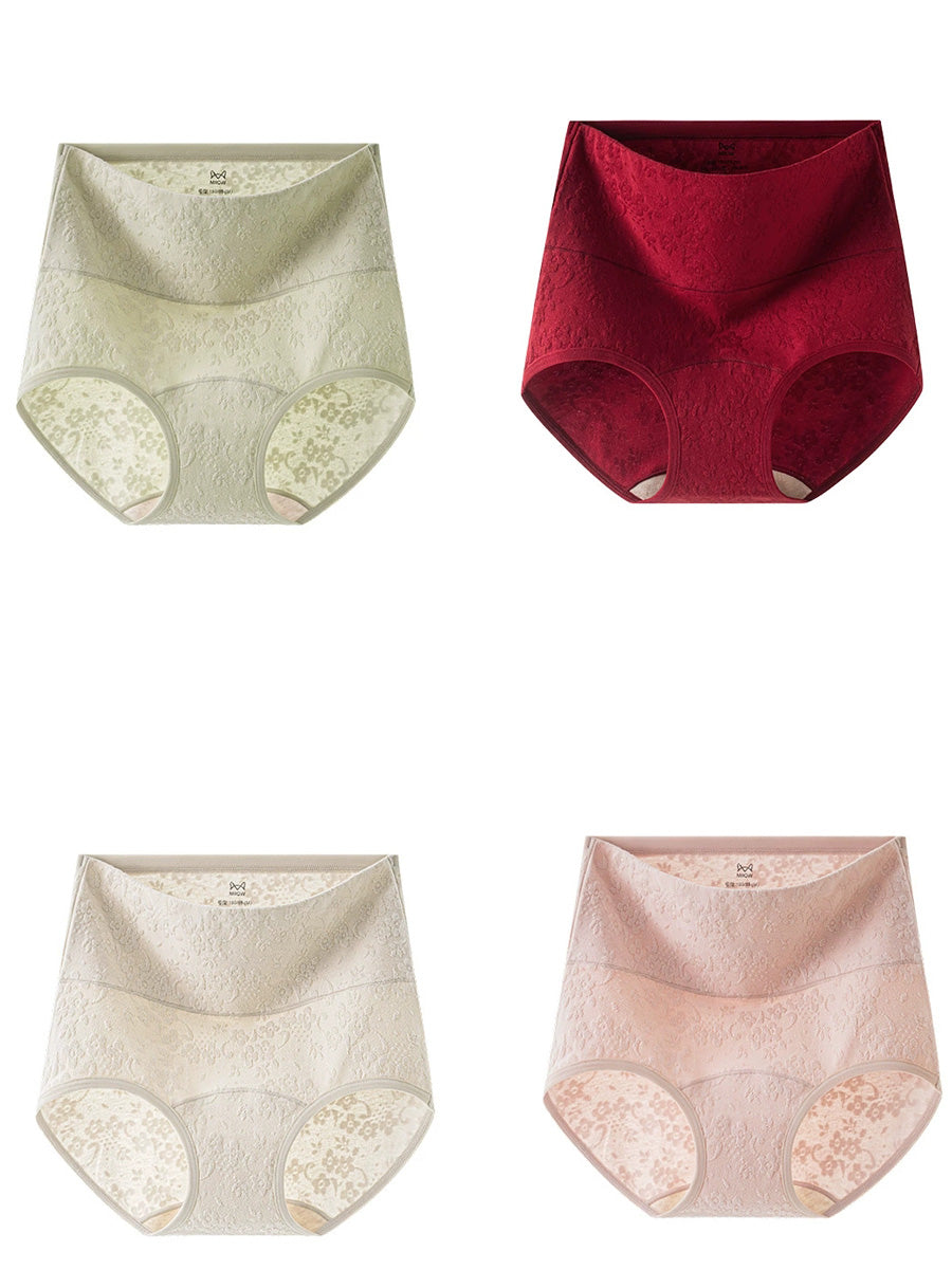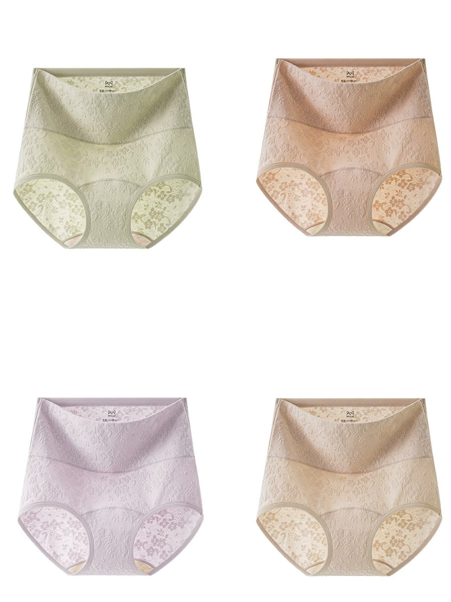 4 stk. højtaljede undertøj til kvinder med kunstnerisk blomsterprægning