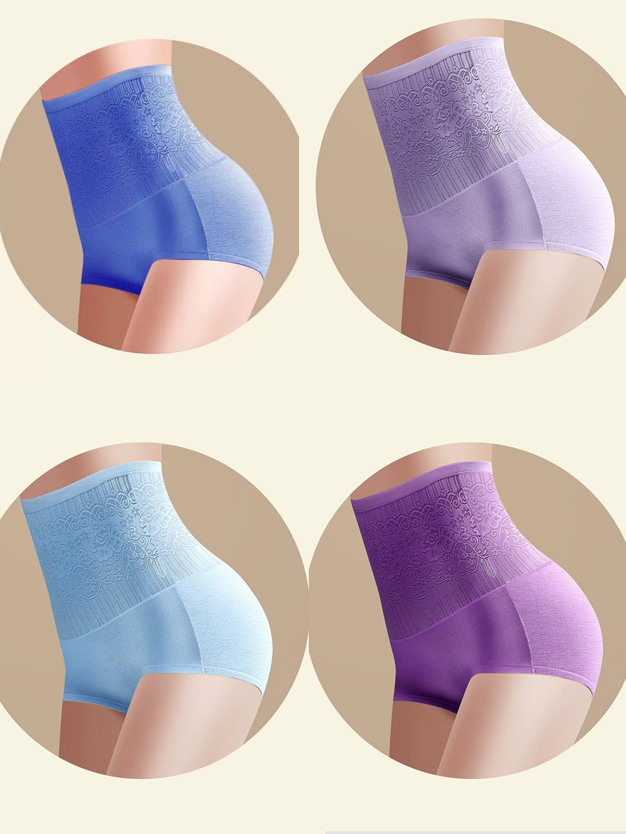 4 stk. højtaljede undertøj til kvinder med kunstnerisk blomsterprint