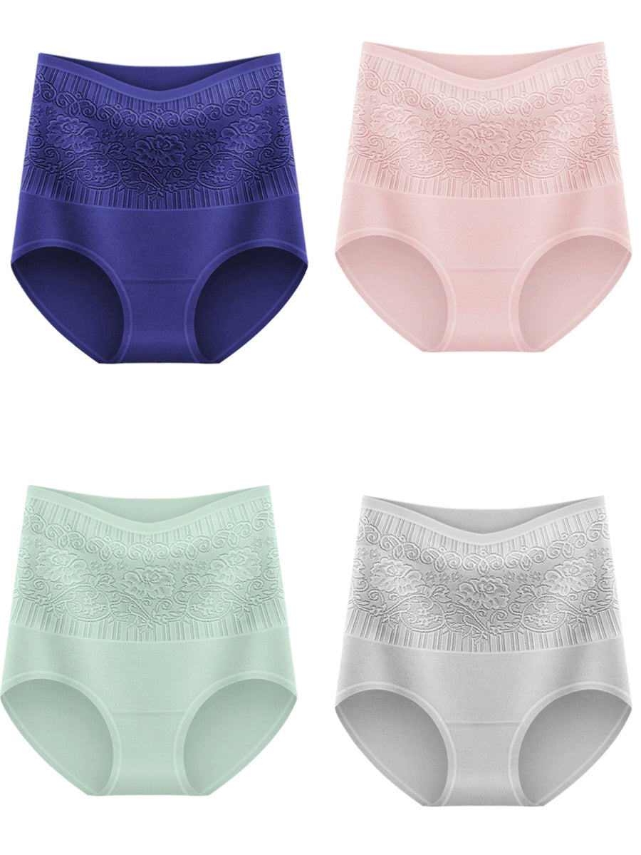 4 stk. højtaljede undertøj til kvinder med kunstnerisk blomsterprint