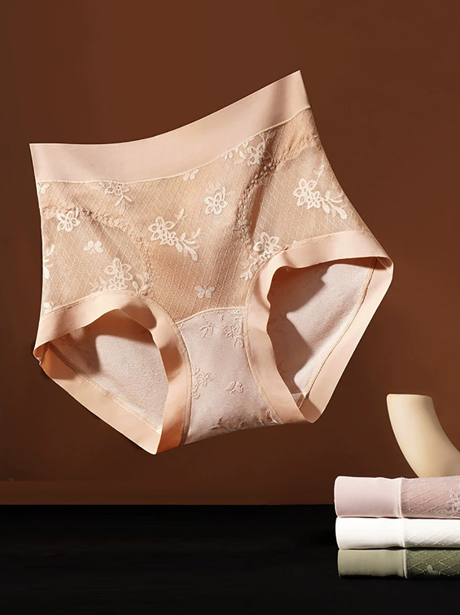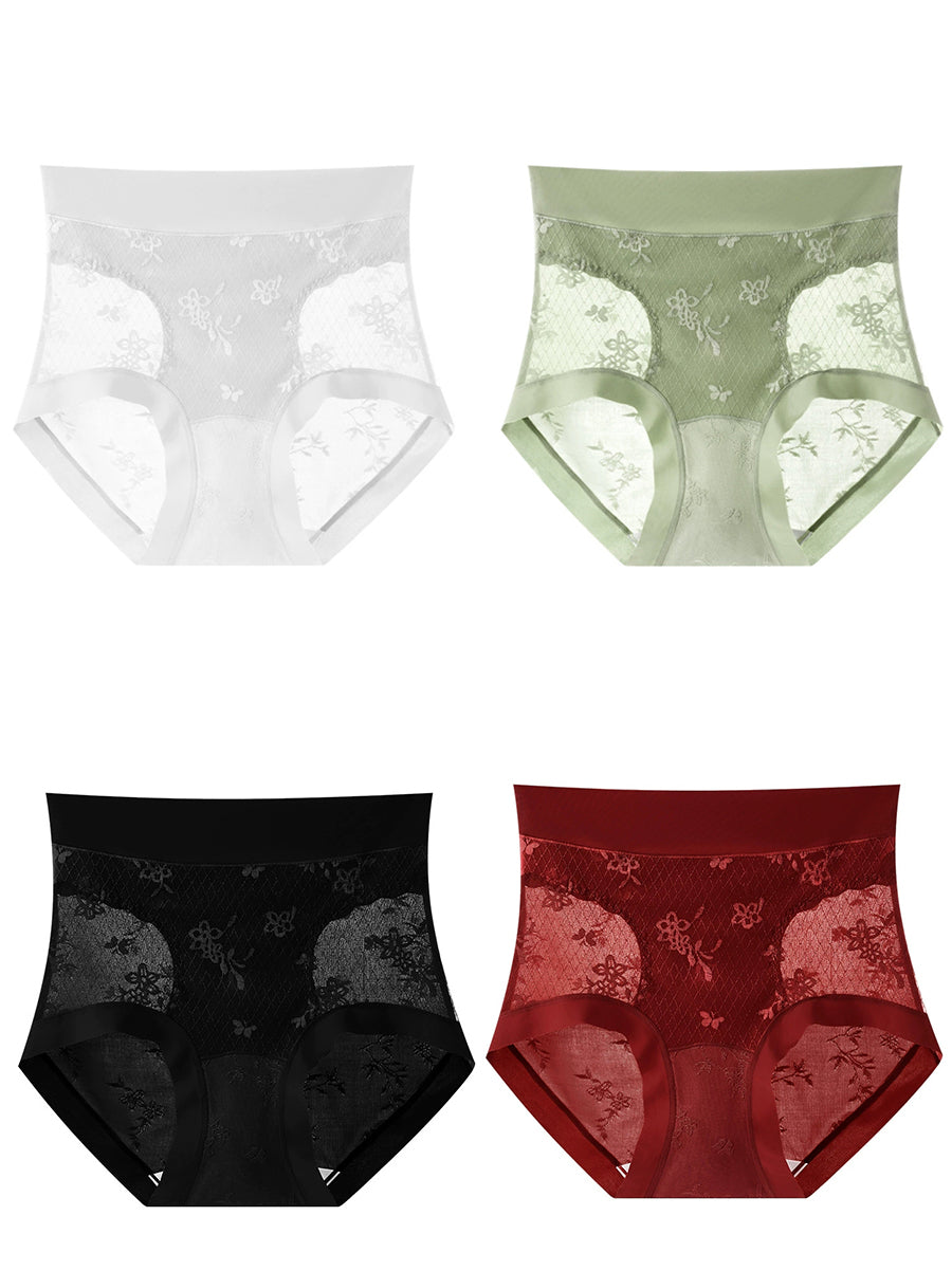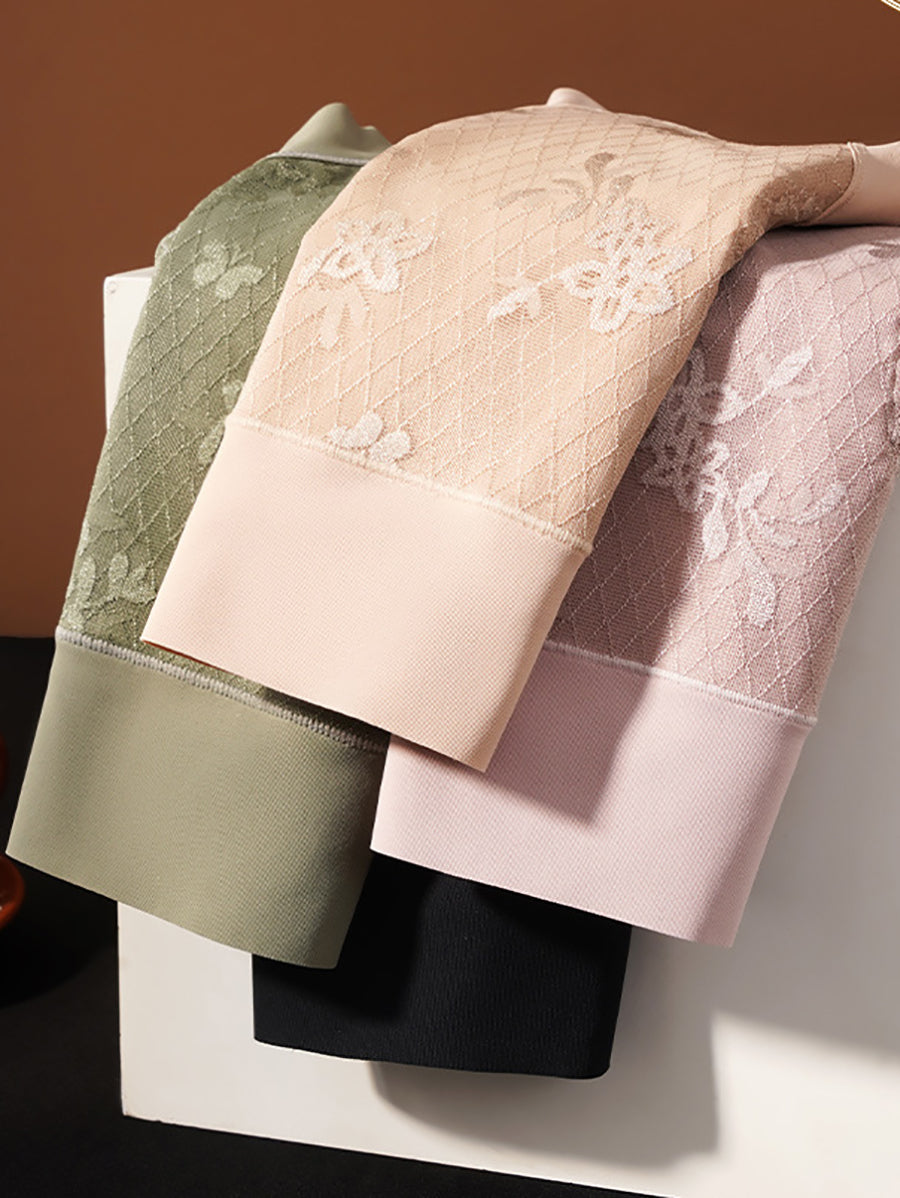 4 stk. højtaljede undertøj til kvinder med kunstnerisk blomsterjacquard