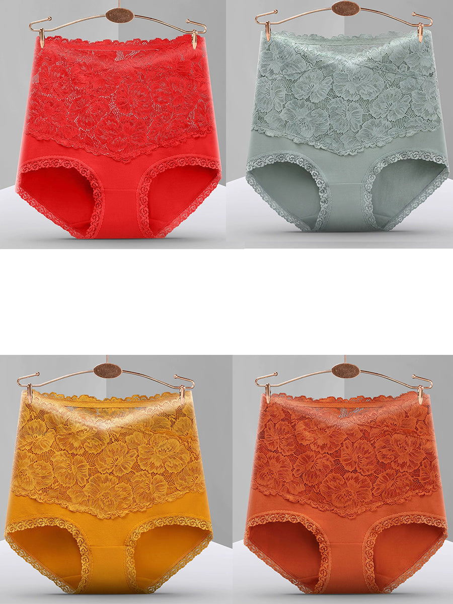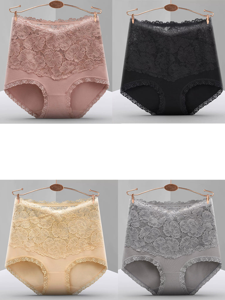 4 stk. højtaljede undertøj til kvinder med kunstnerisk blondeprint