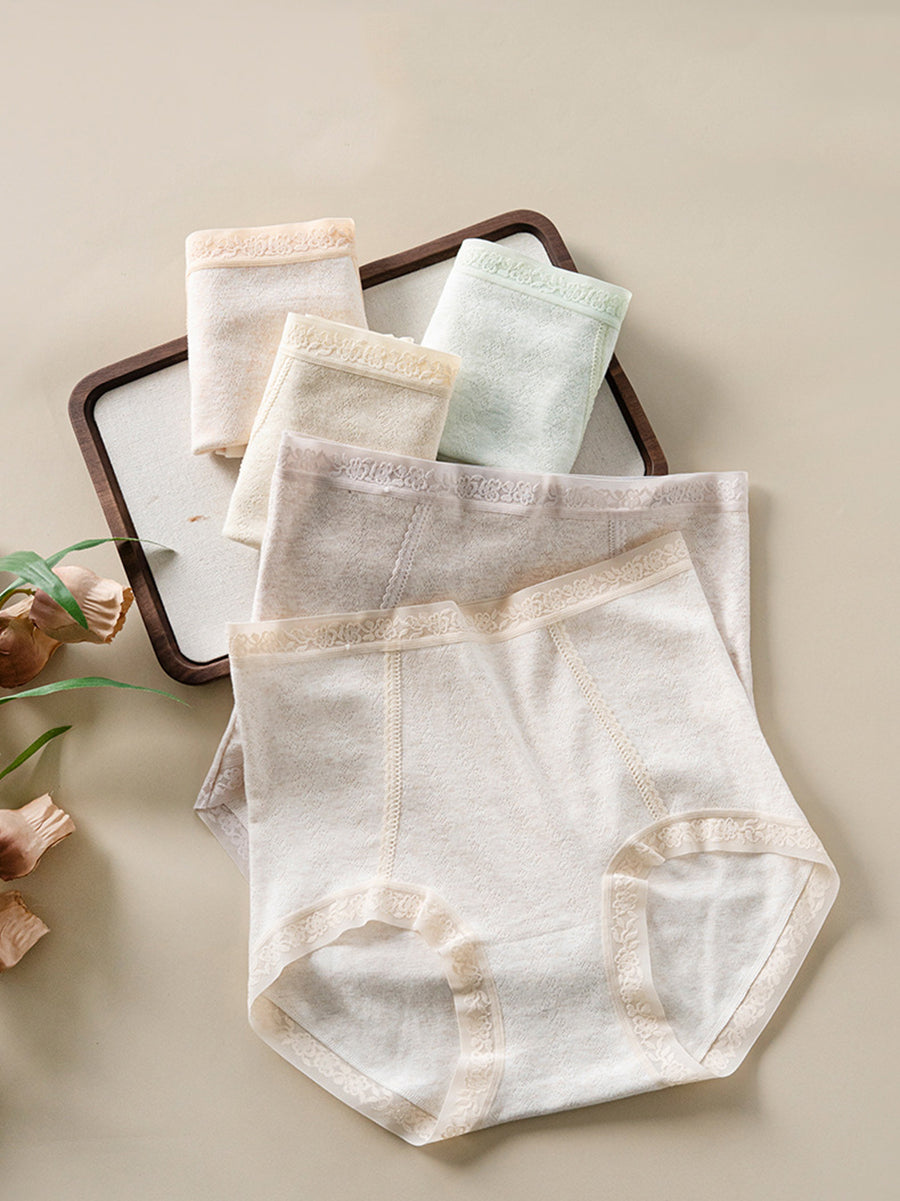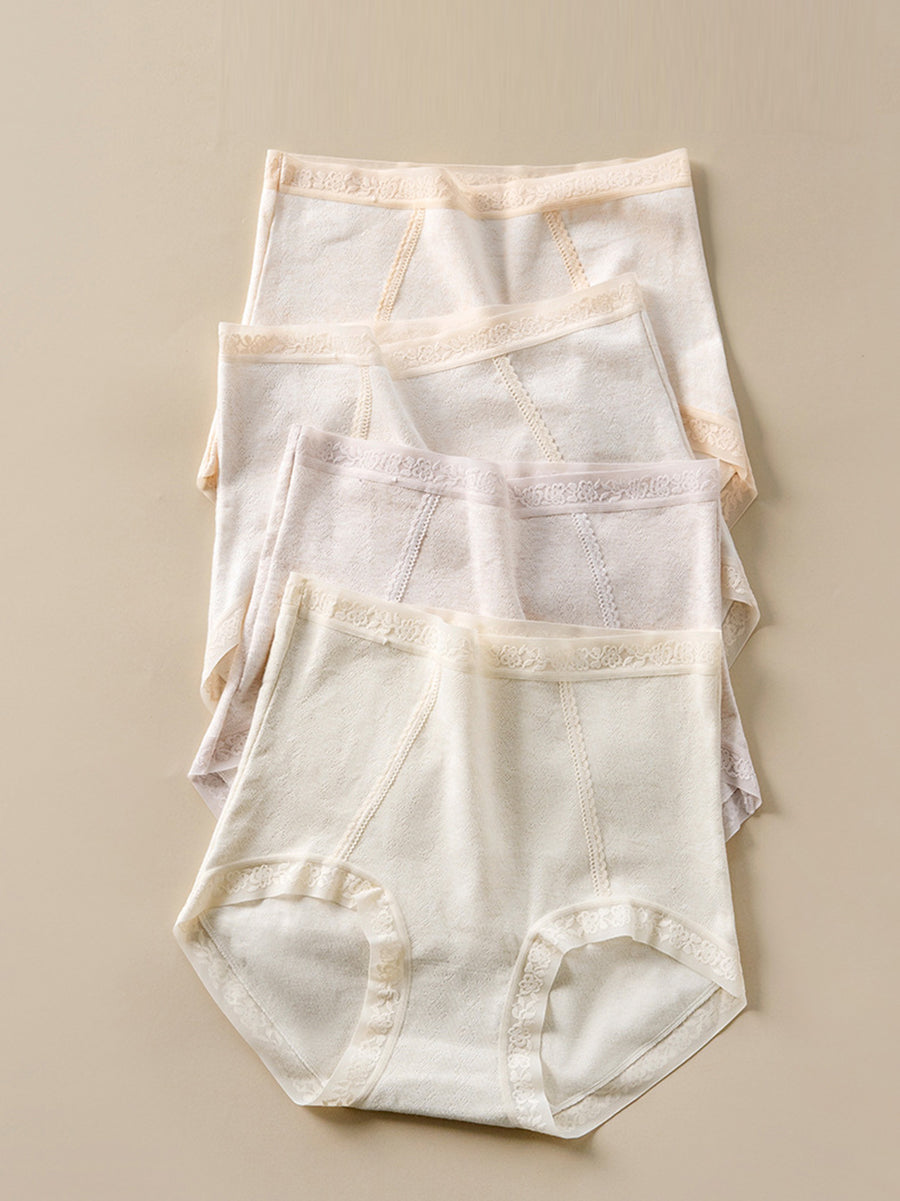 4 stk. kunstnerisk undertøj i ren farve til kvinder med høj talje