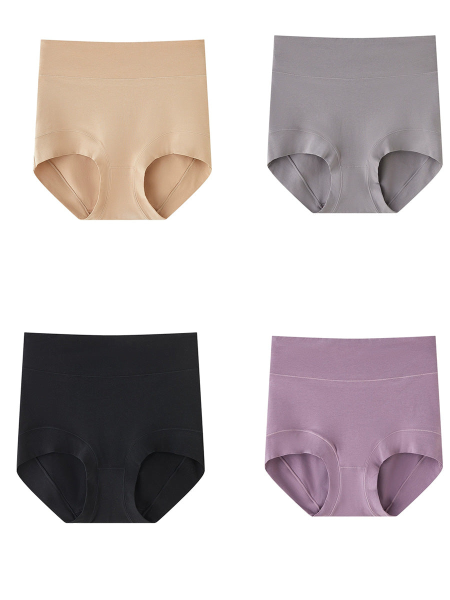 4 stk. kunstnerisk undertøj i ren farve til kvinder med høj talje