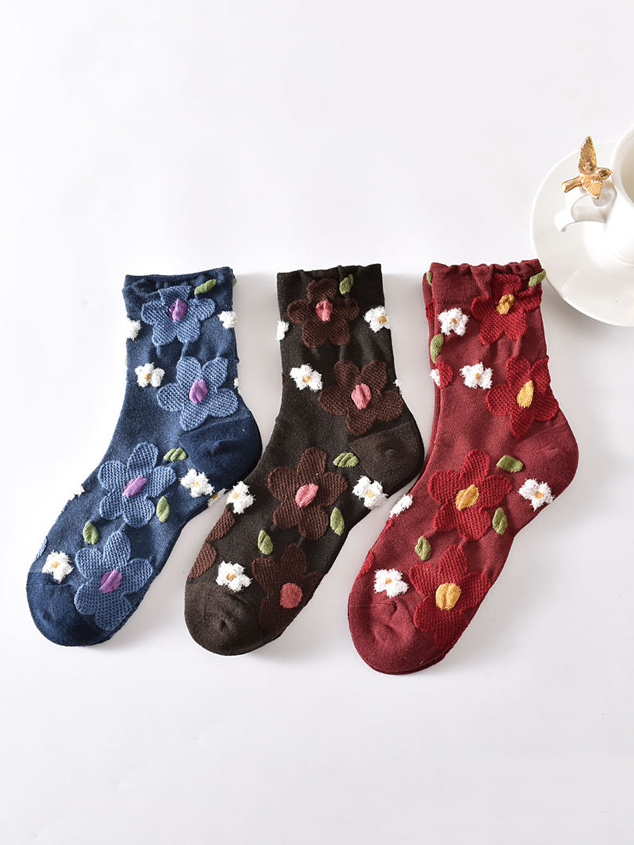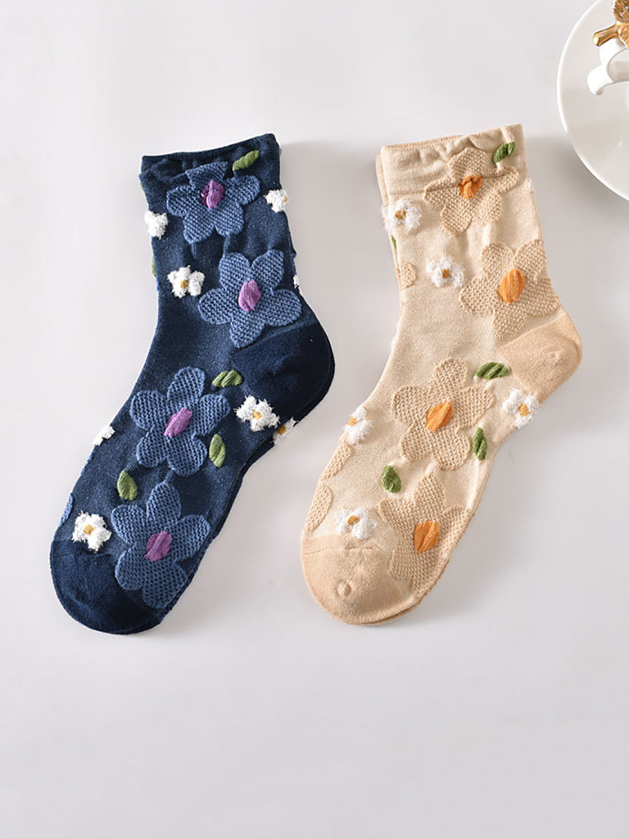 5 par damesokker med kunstnerisk blomsterprint og jacquard-bomuld