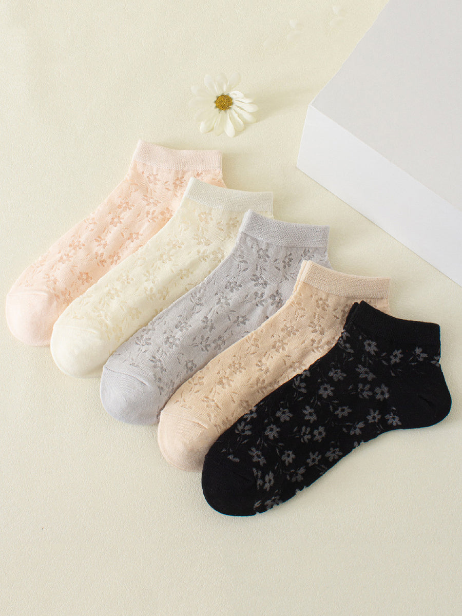 5 par korte kunstneriske blomstersokker til kvinder