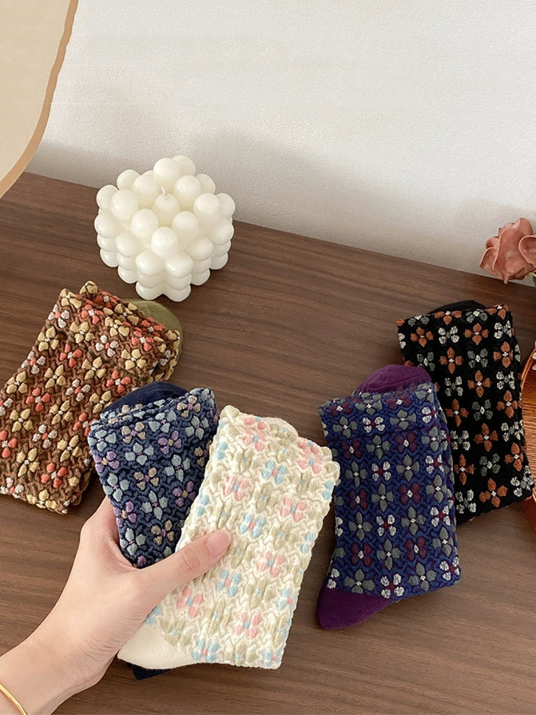5 par dame vintage blomsterprægede bomuldssokker