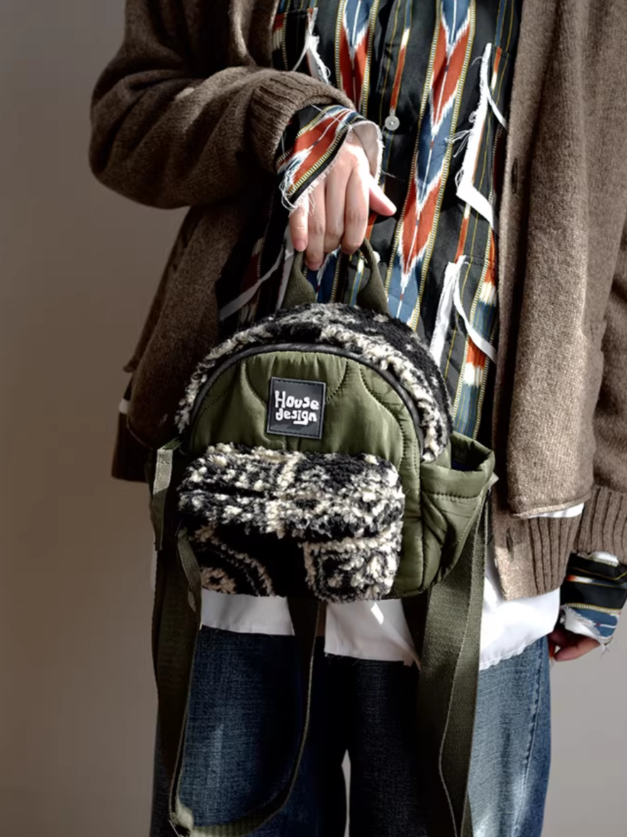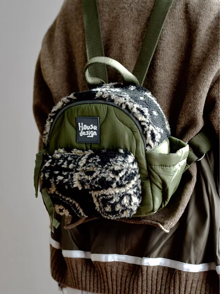 Retro Fluffy Blomster Spliced Mini Rygsæk