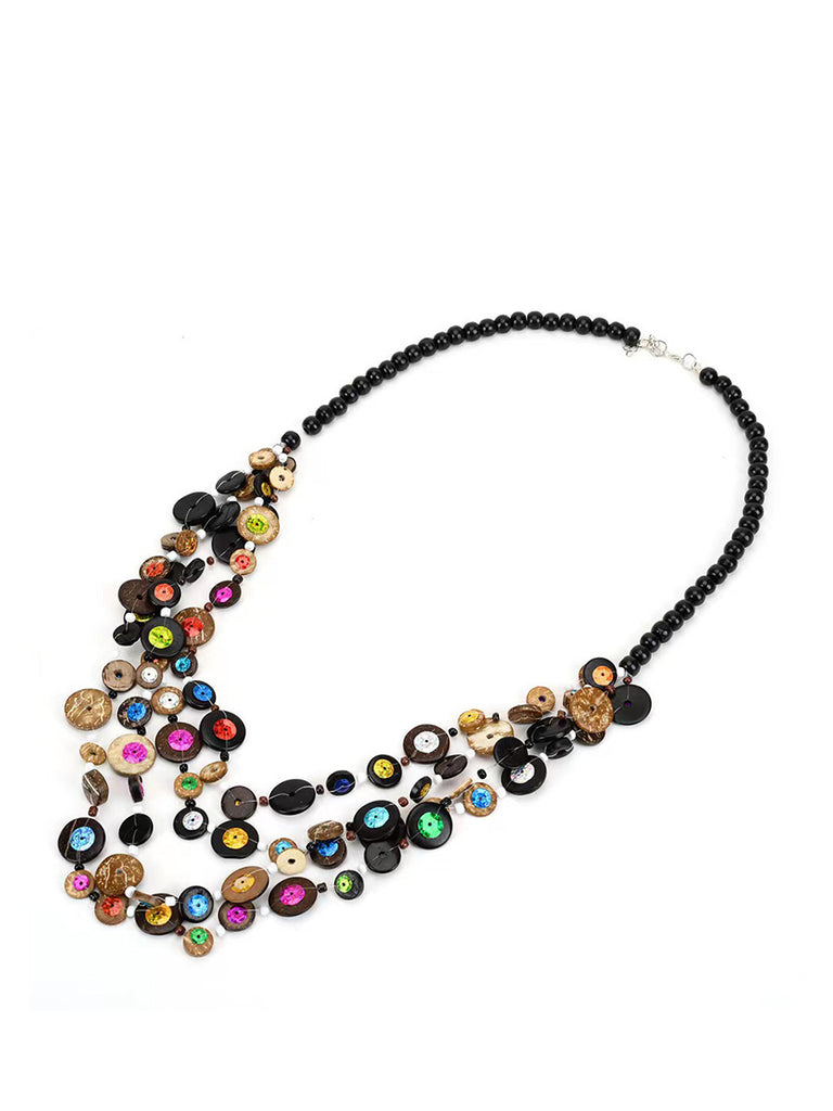 Bohemia Wooden Button Perle Multilayer Halskæde