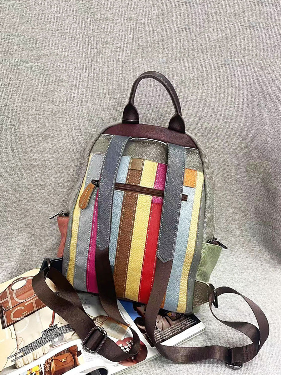 Multicolor Rhomboids læder splejset lynlås rygsæk