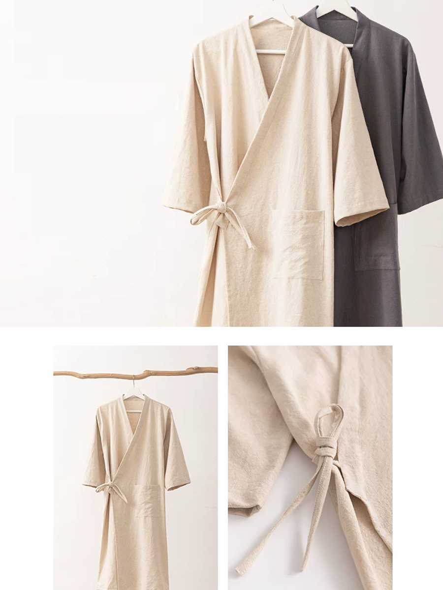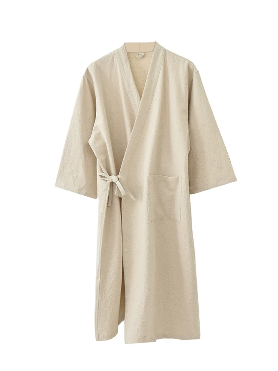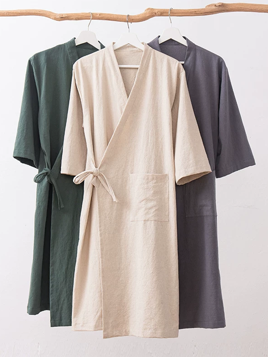 Ren farve unisex bomulds-hør badekåbe