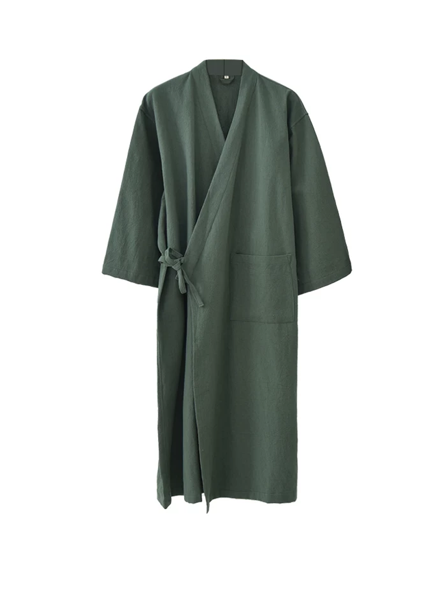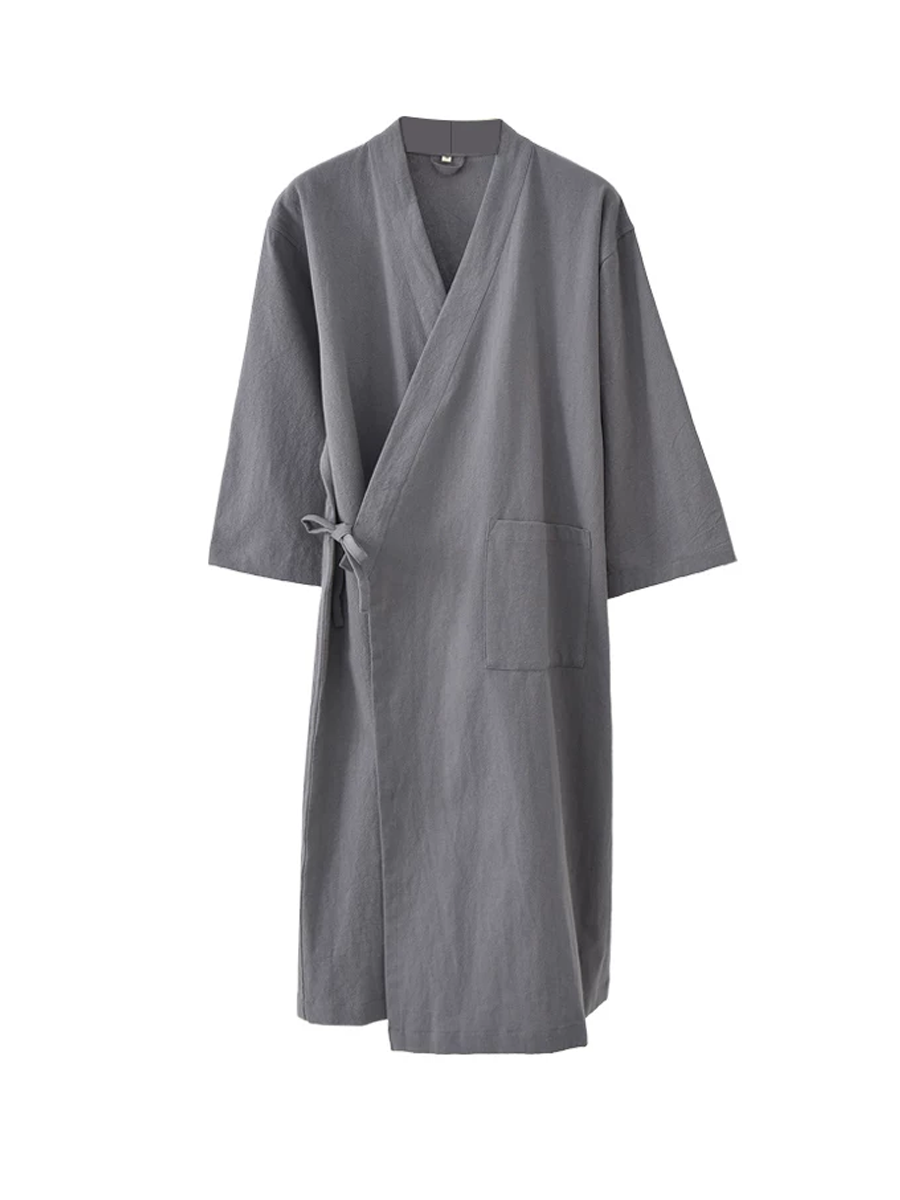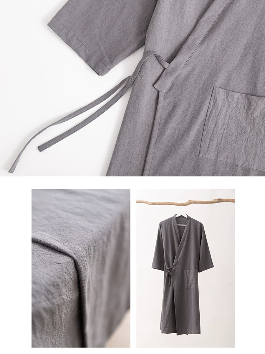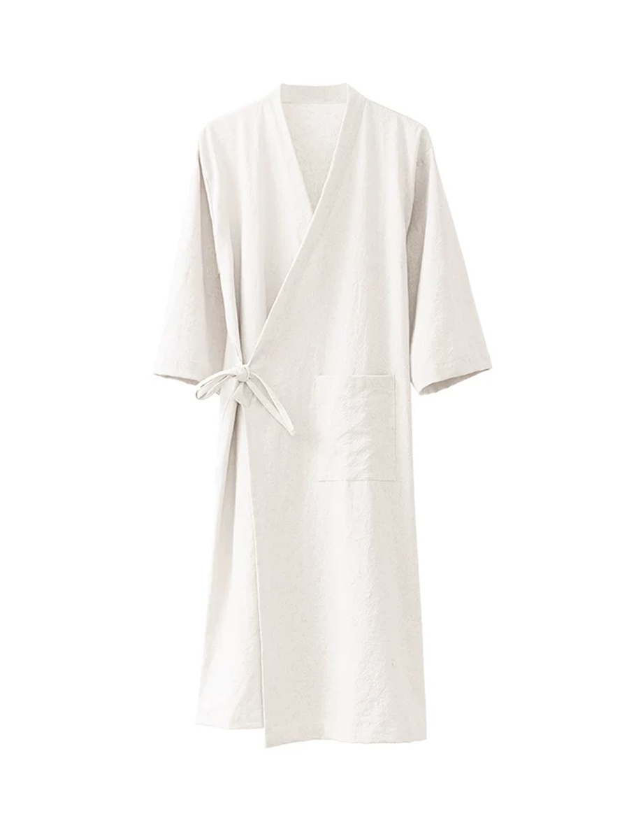 Ren farve unisex bomulds-hør badekåbe