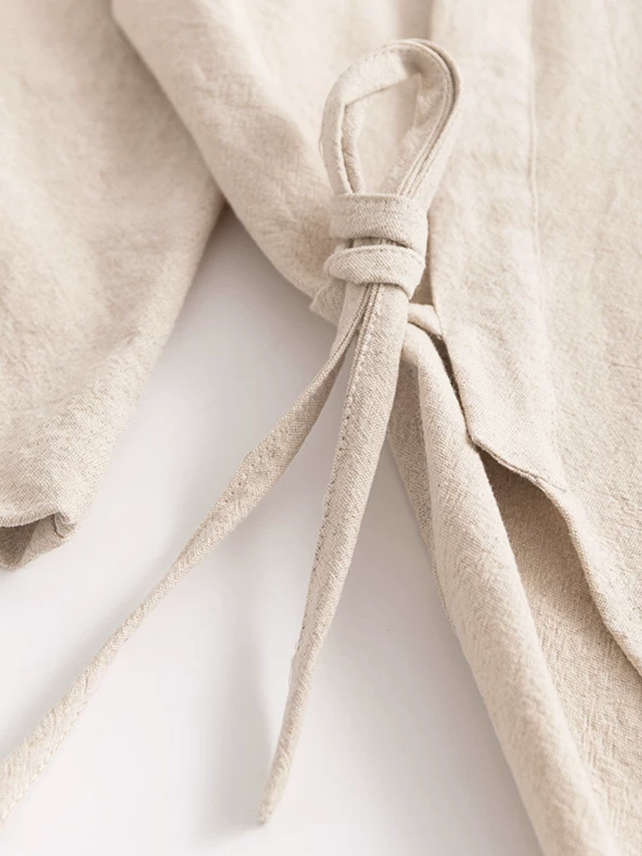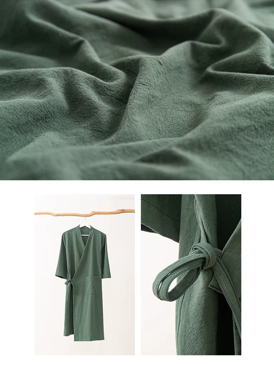 Vores bomulds-hør badekåbe har en mellemlang til lang længde, der går til under knæet, og er fremstillet af en blød blanding af 70% bomuld og 30% hør. Med sin elegante, rene farve er denne åndbare og slidstærke badekåbe perfekt til afslapning derhjemme eller efter et bad, og den tilbyder en stilfuld og behagelig oplevelse.