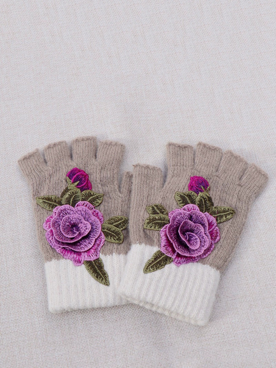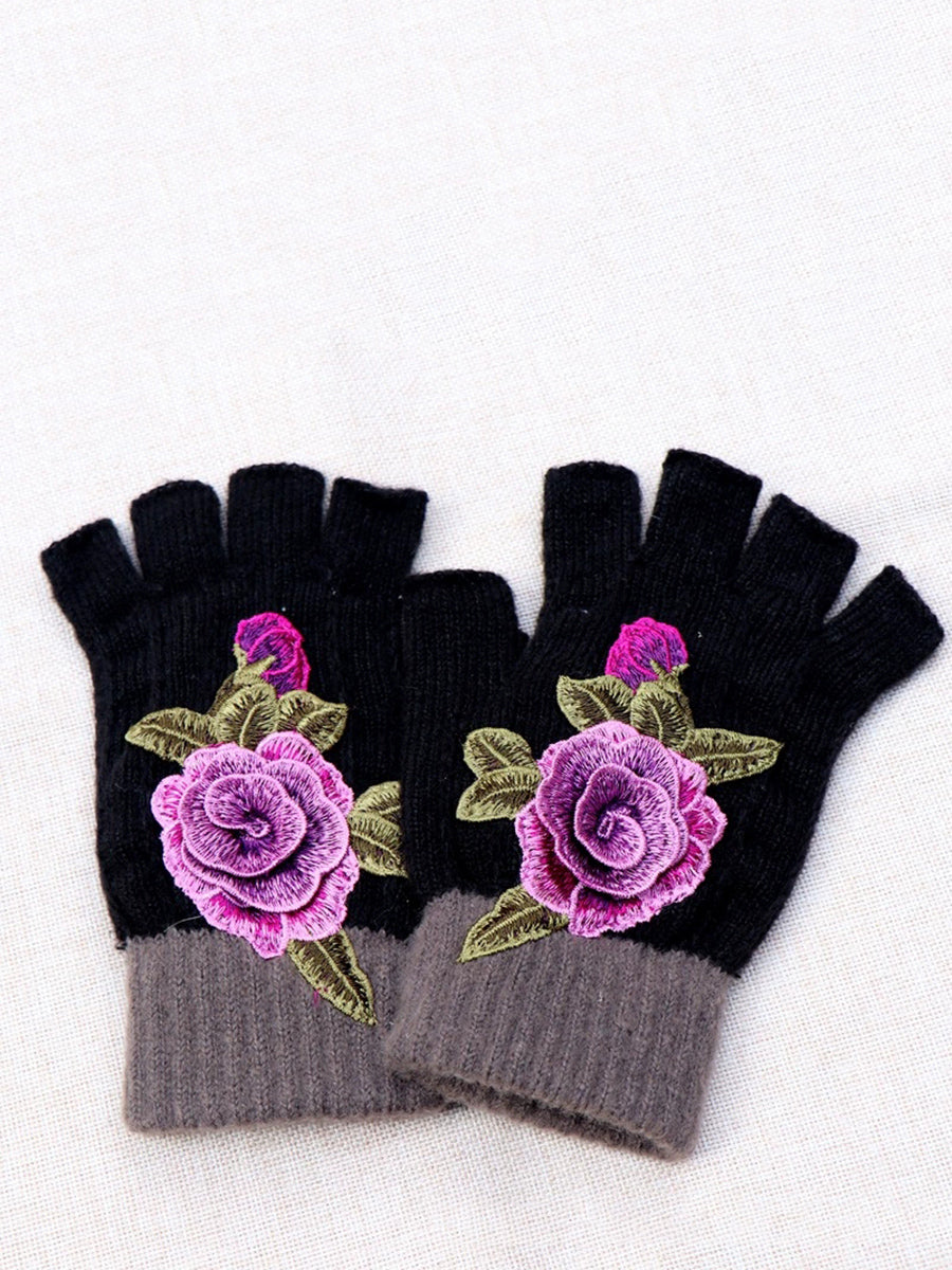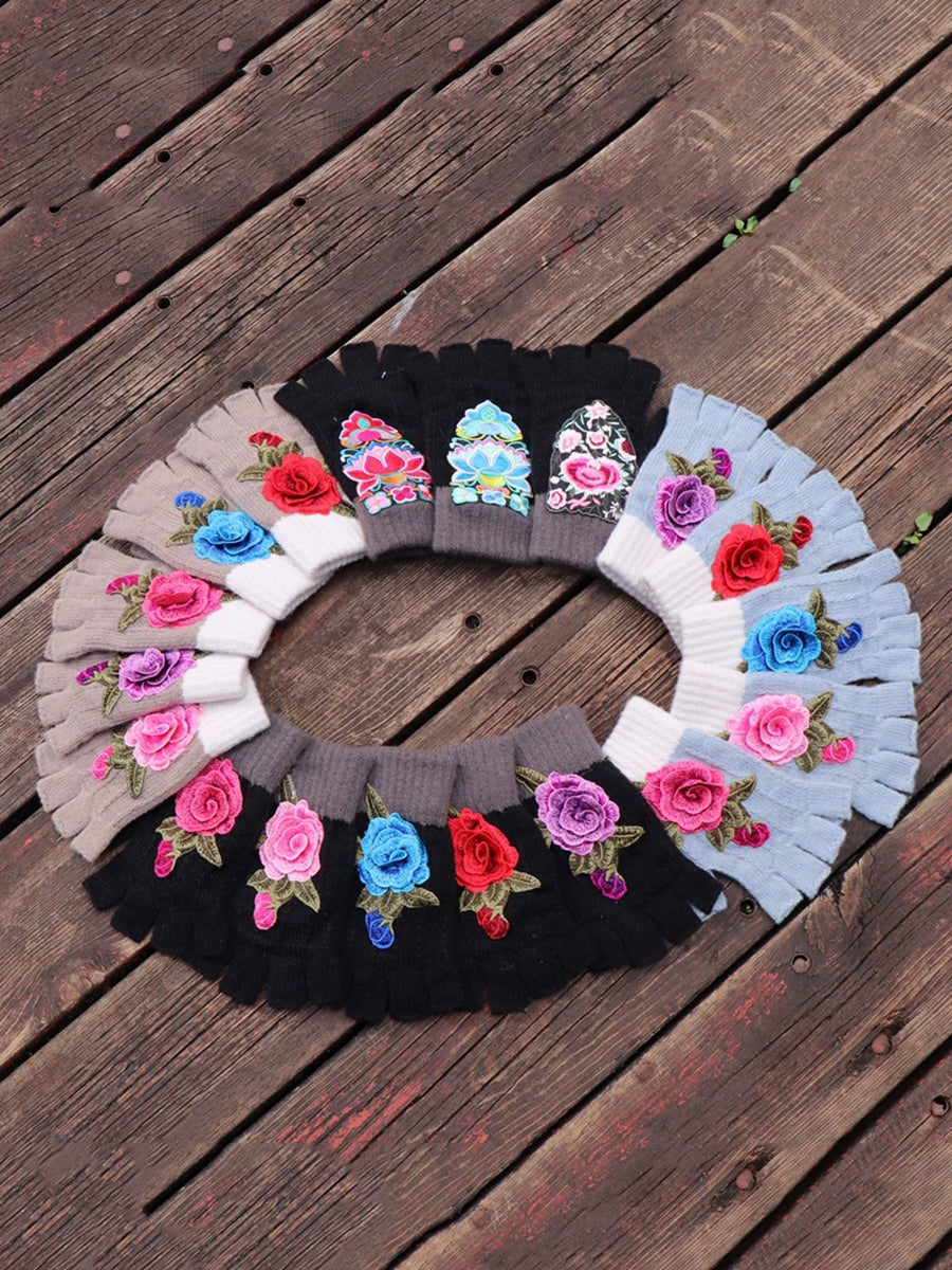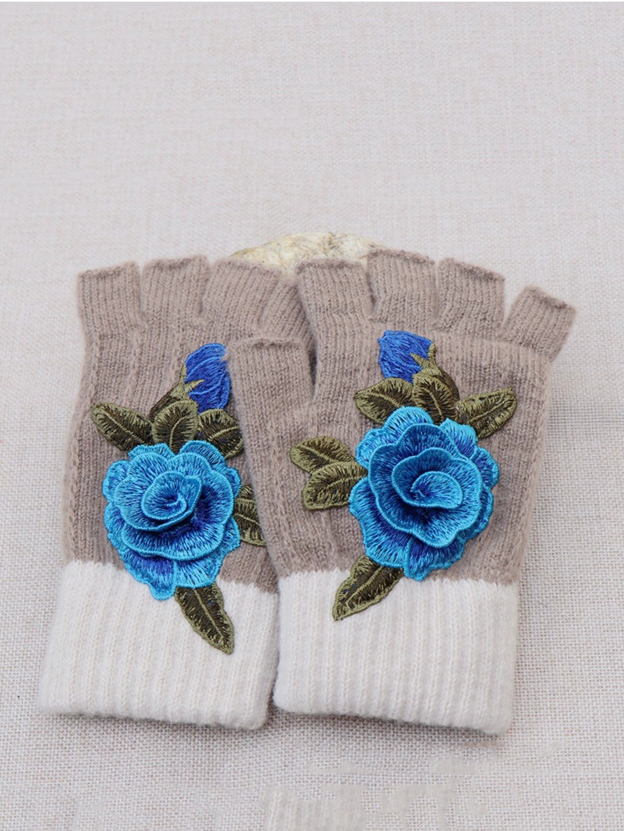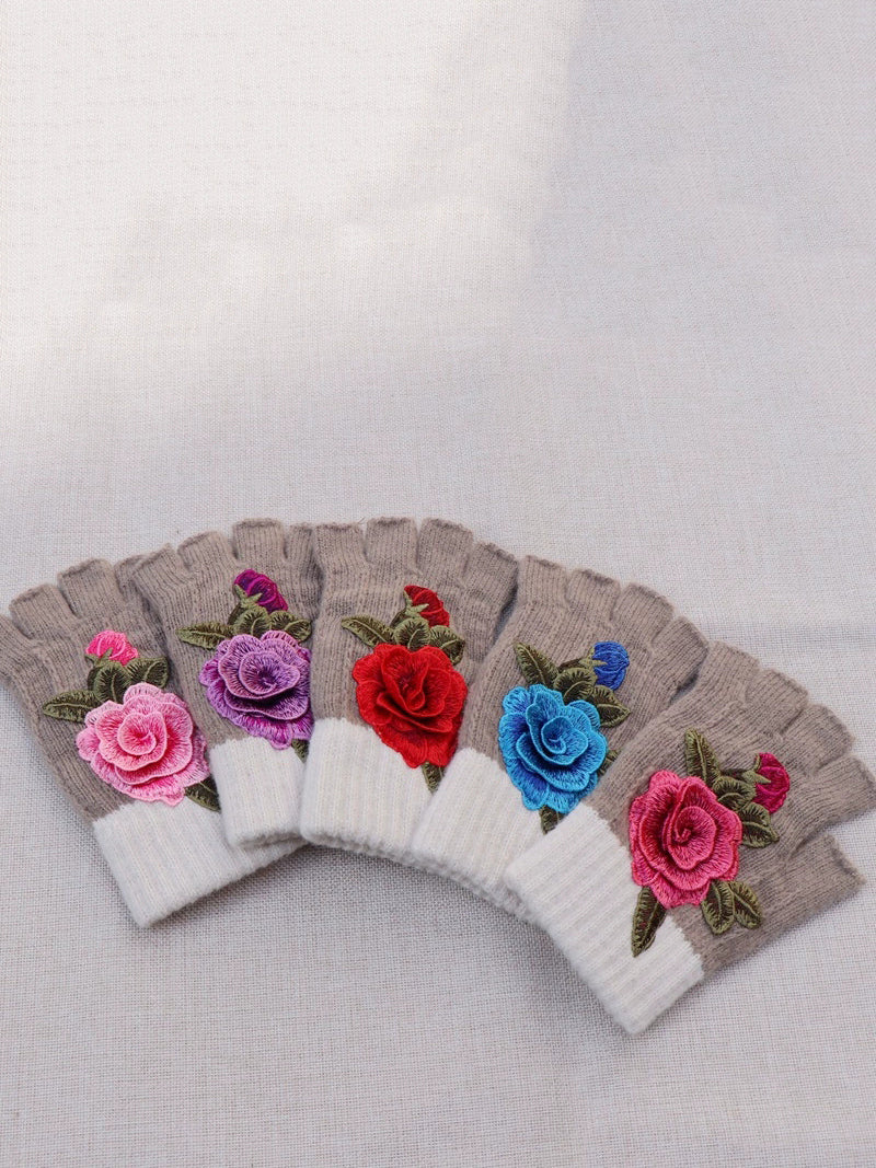 Vinterkunstneriske blomsterbroderi-splejsede handsker