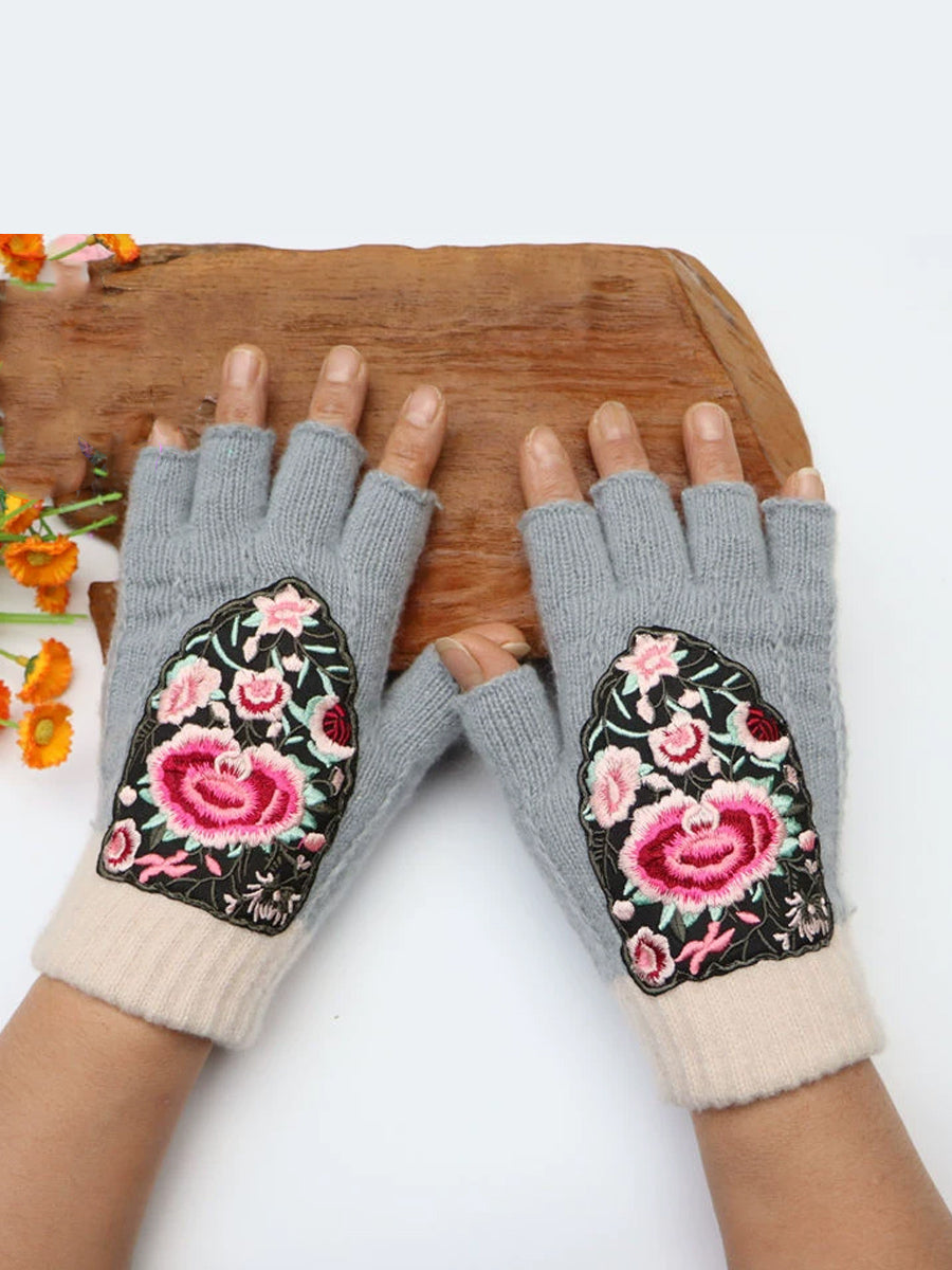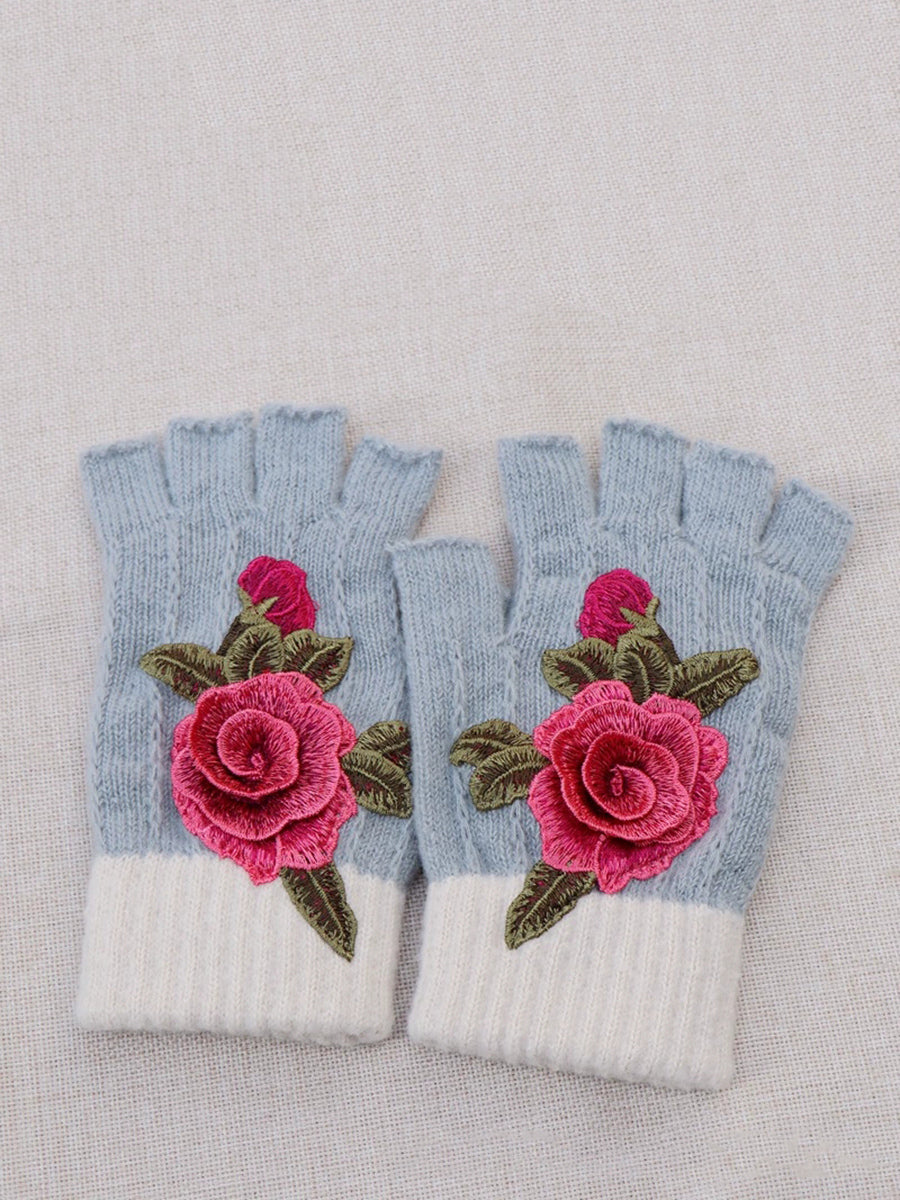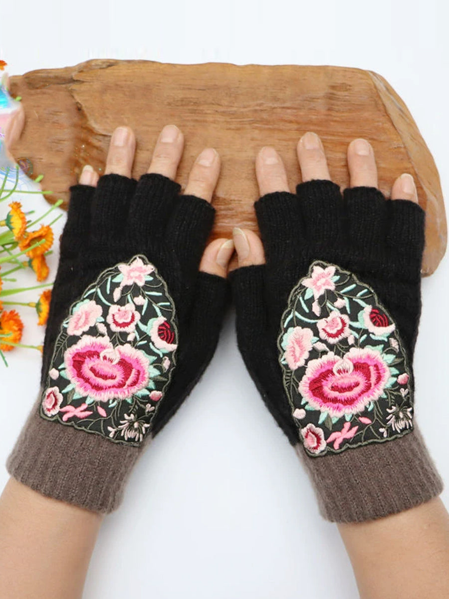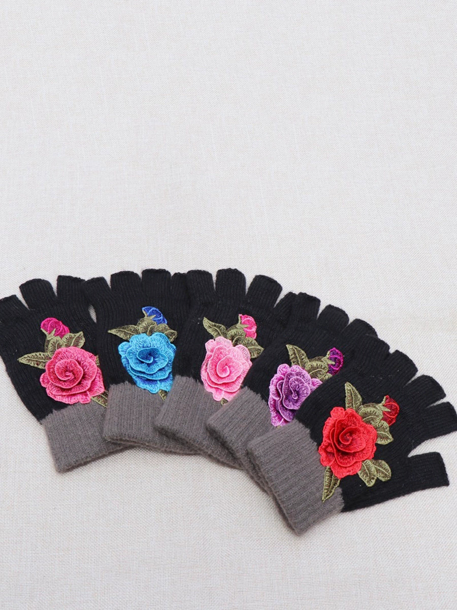Vinterkunstneriske blomsterbroderi-splejsede handsker
