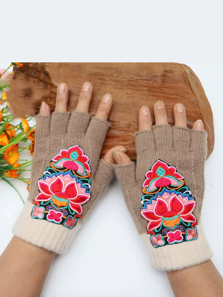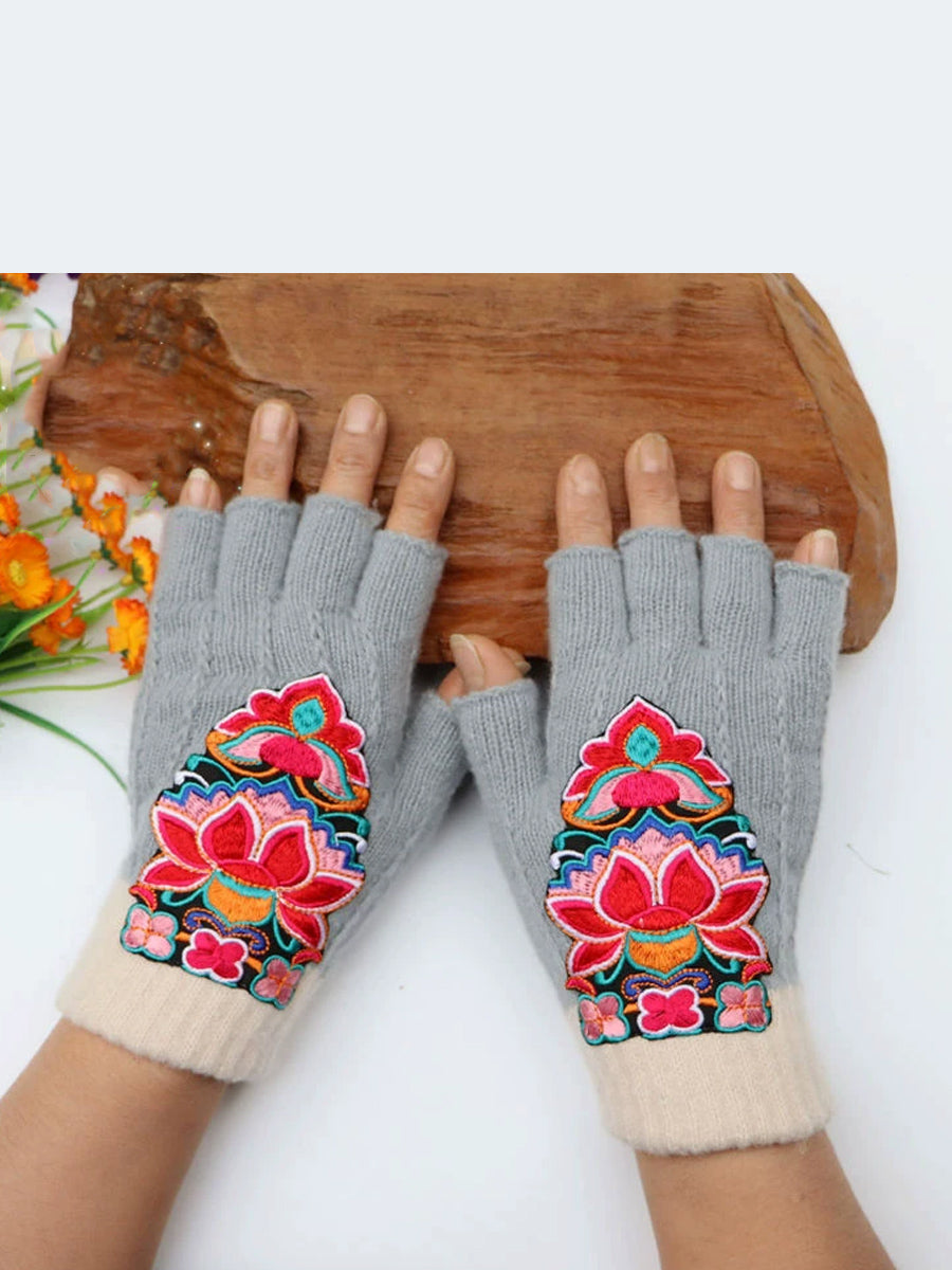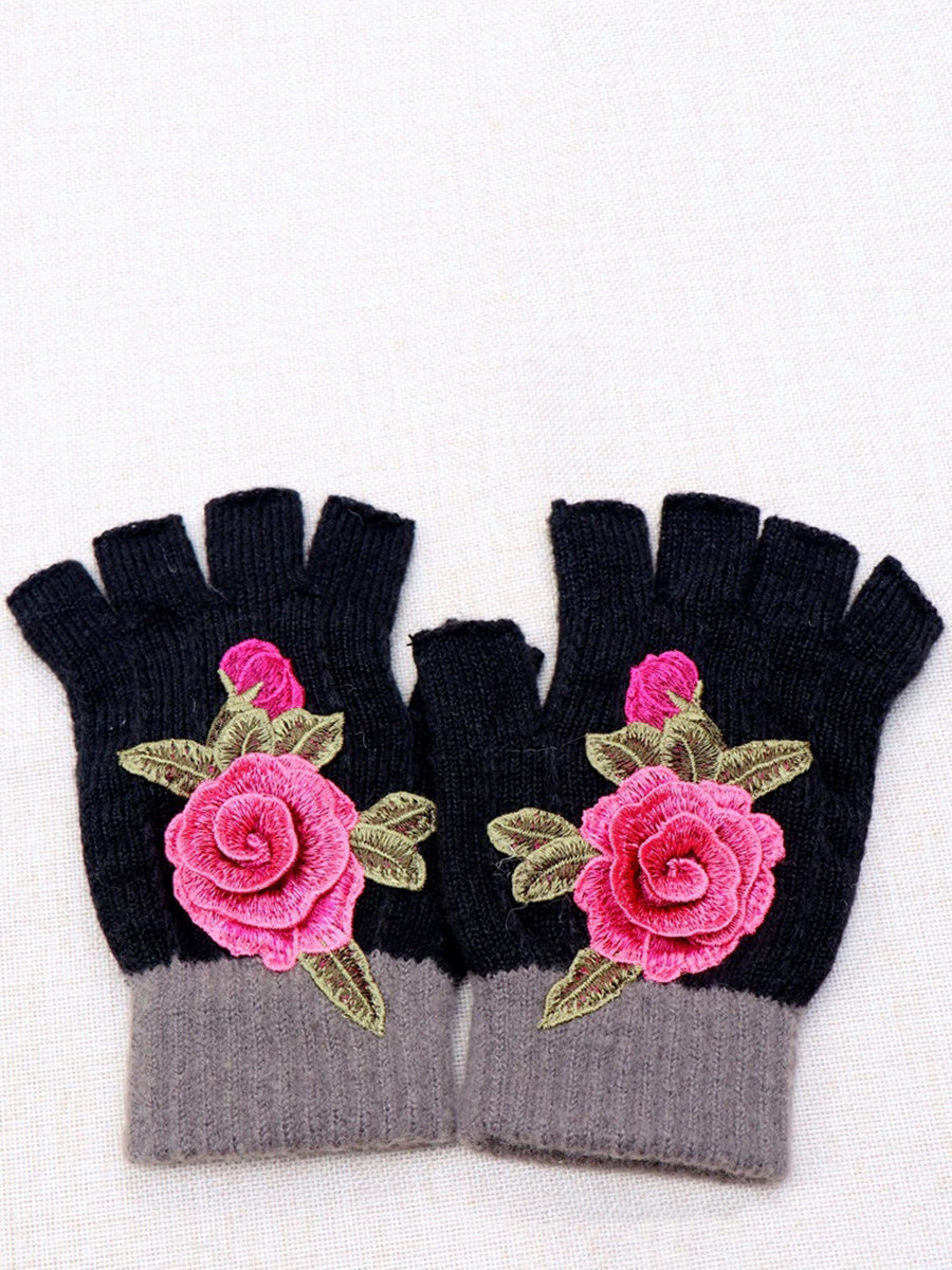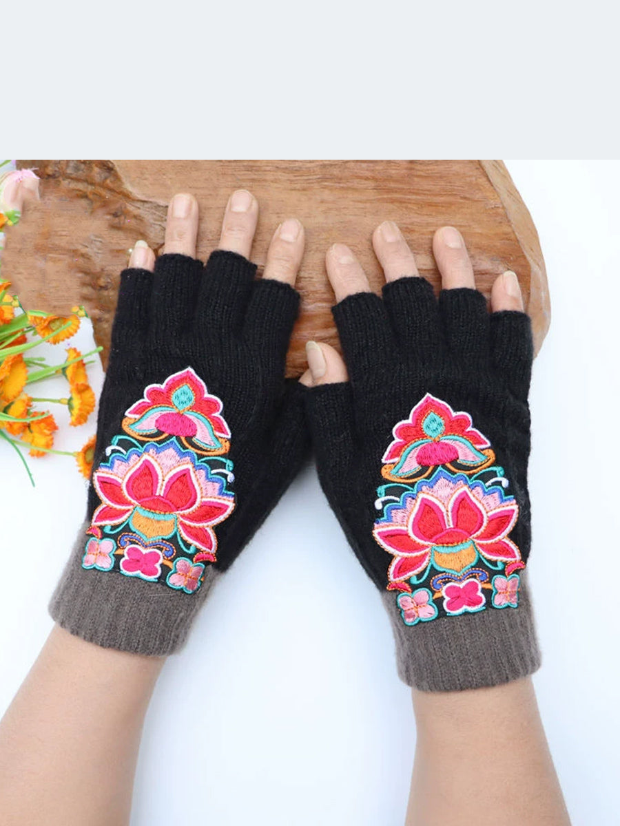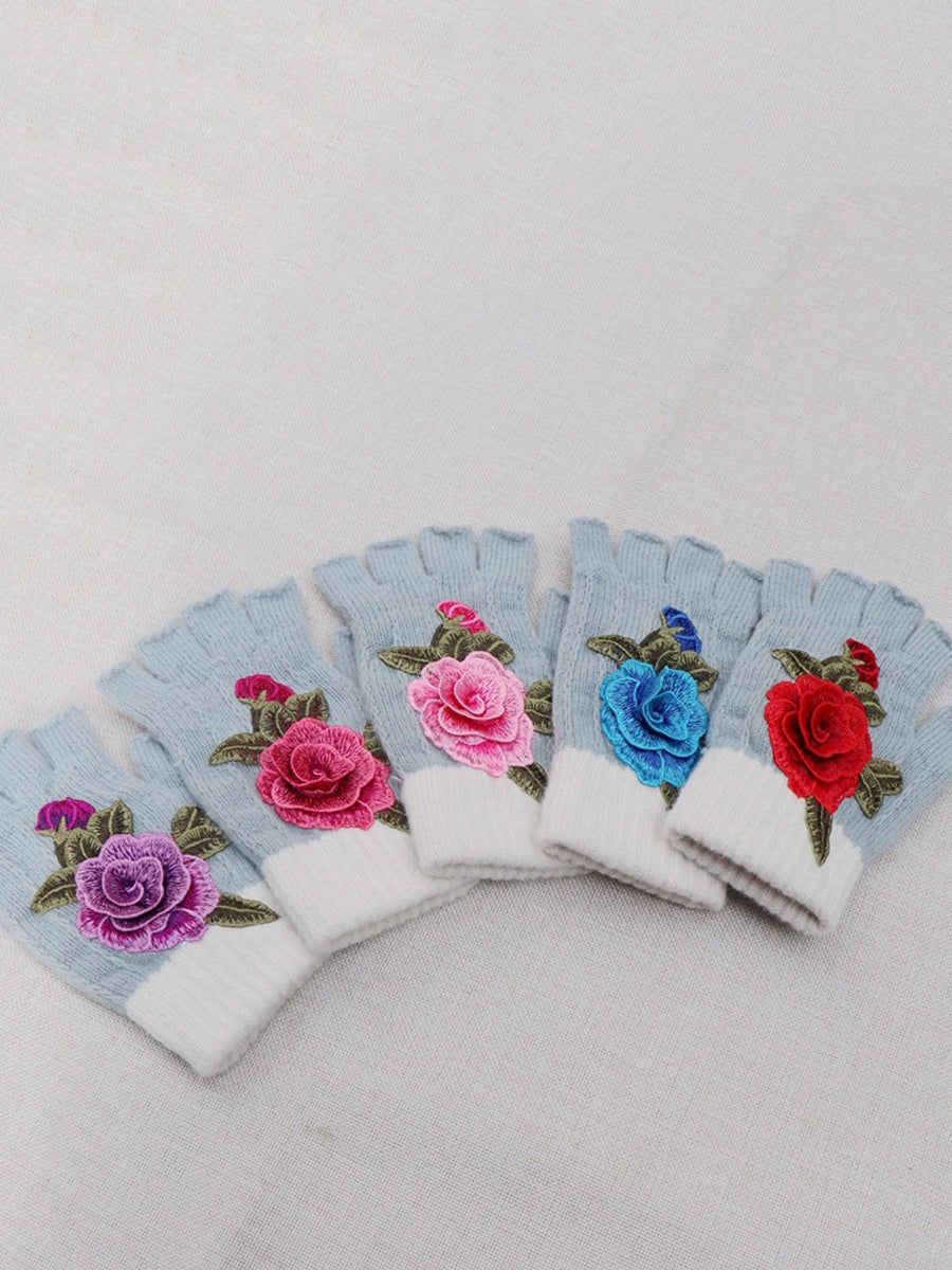 Vinterkunstneriske blomsterbroderi-splejsede handsker