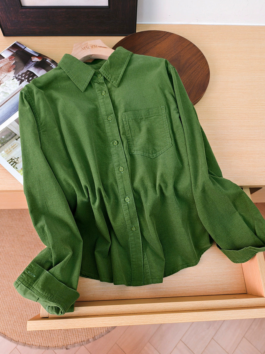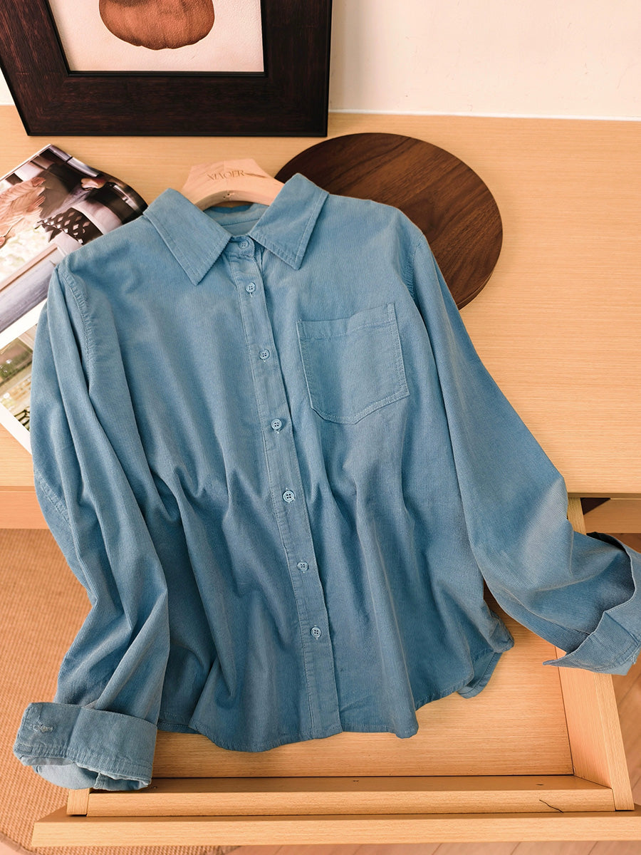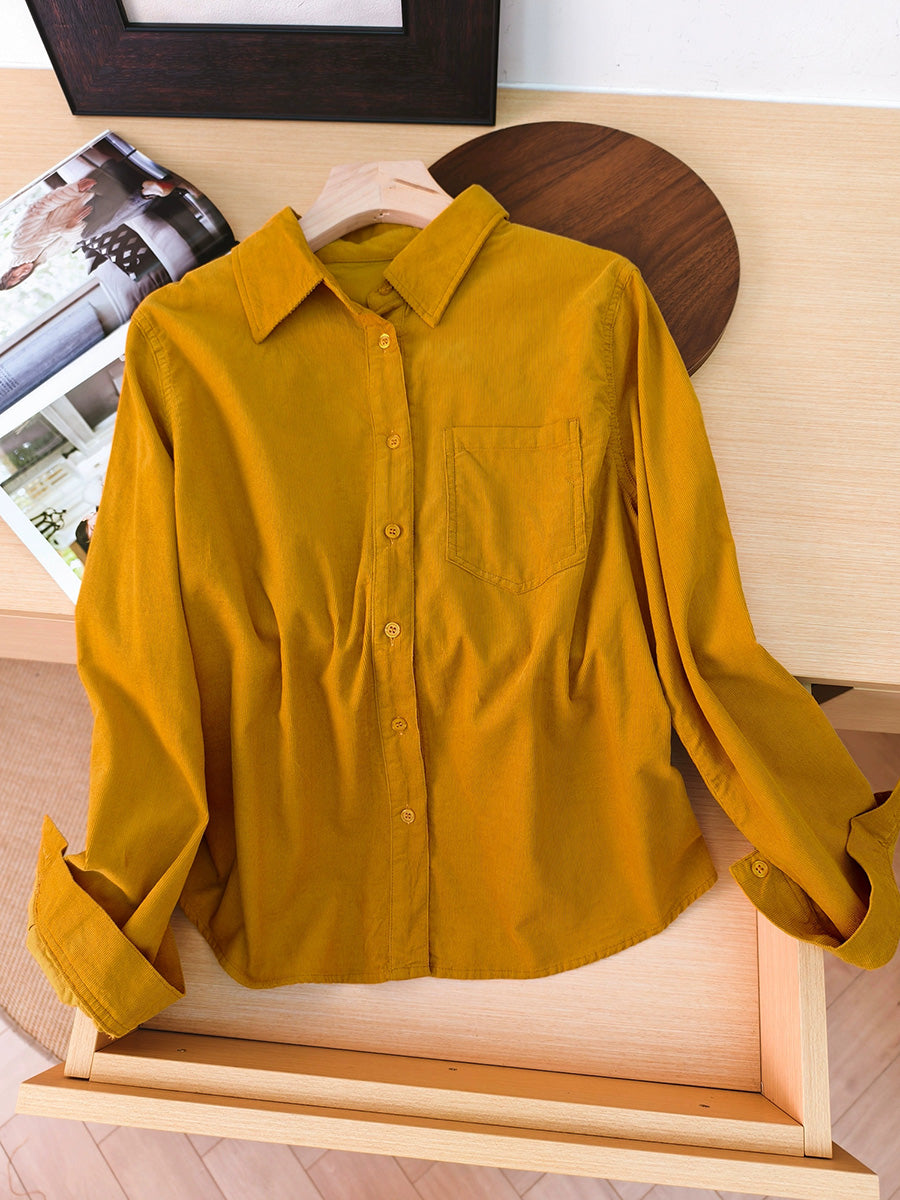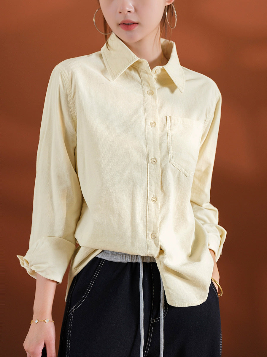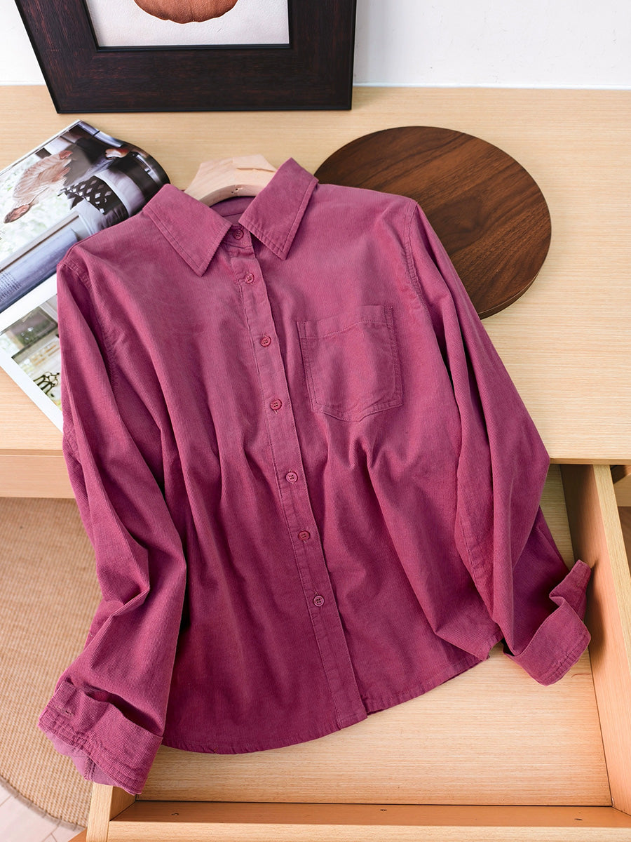 Kvinder Kunstnerisk Efterårsbluse i Ren Farve med Corduroy-motiv