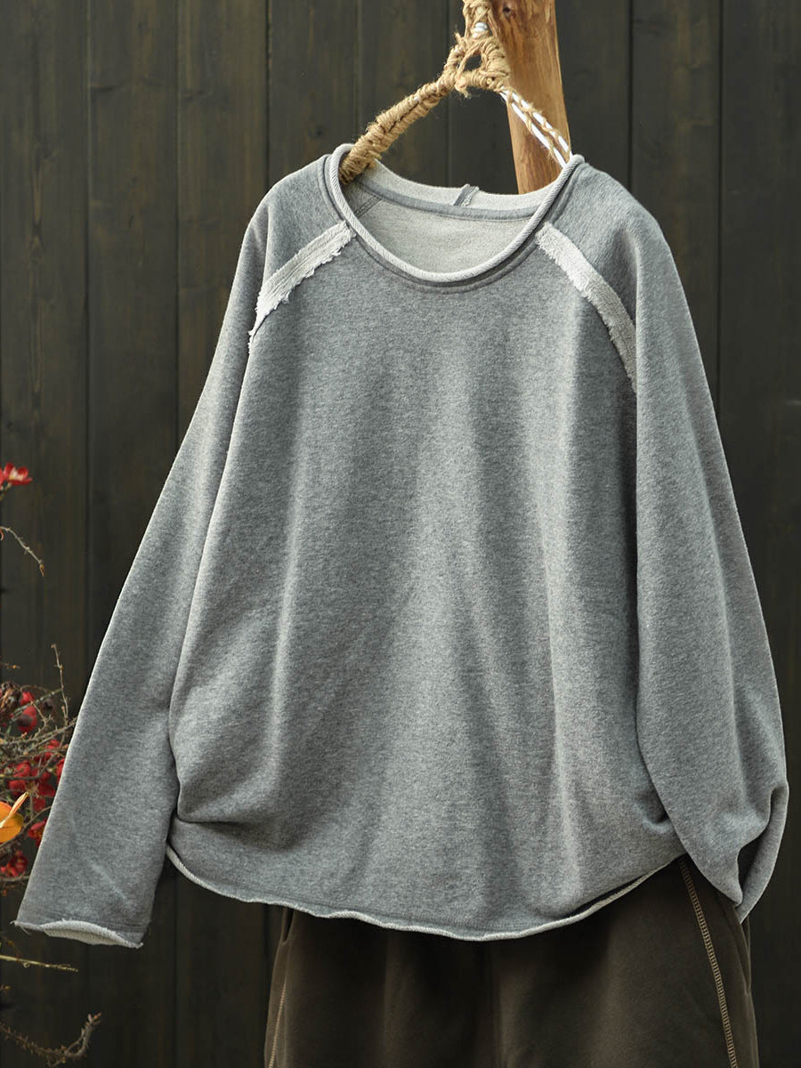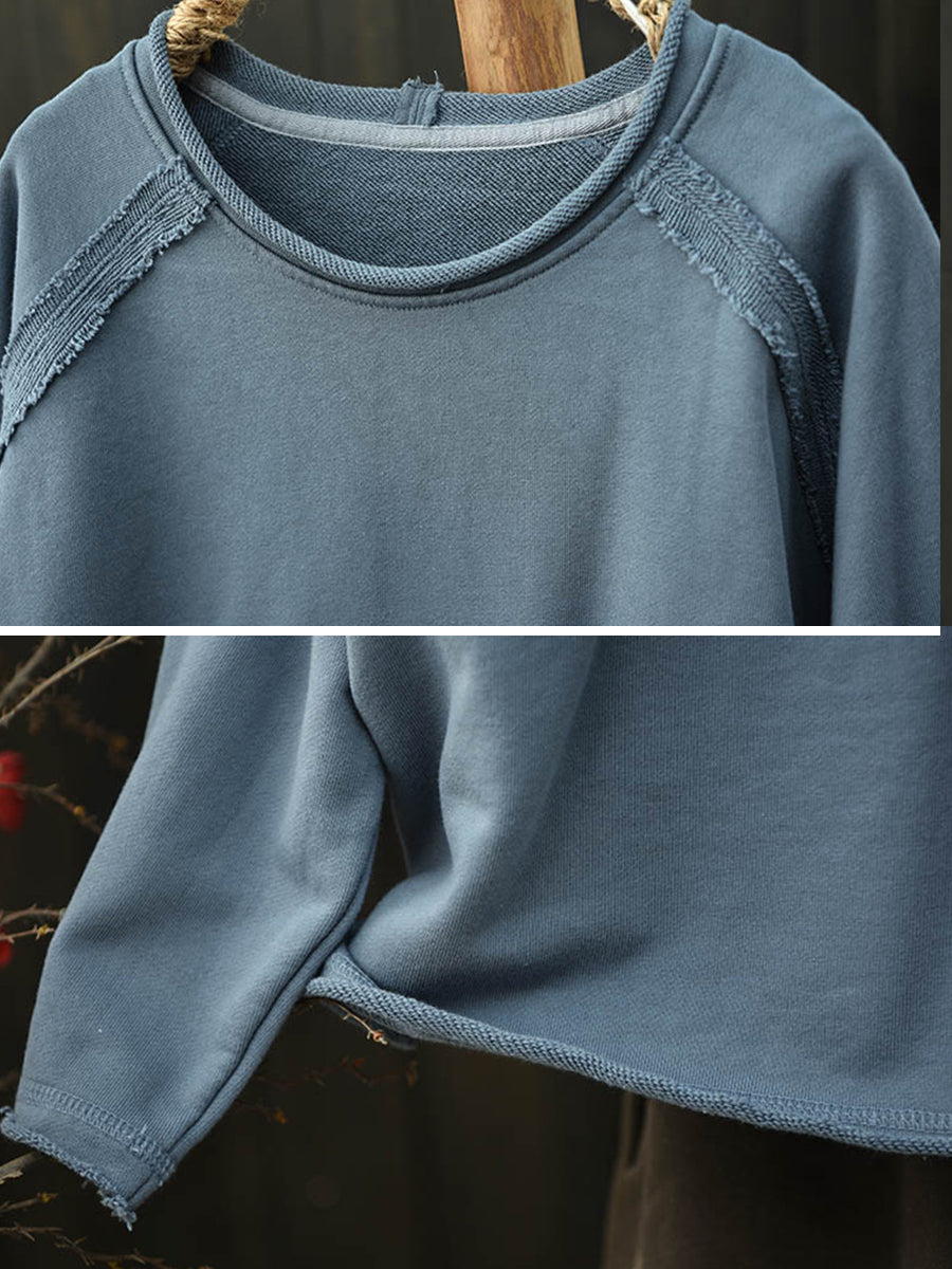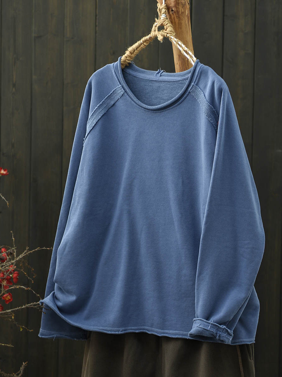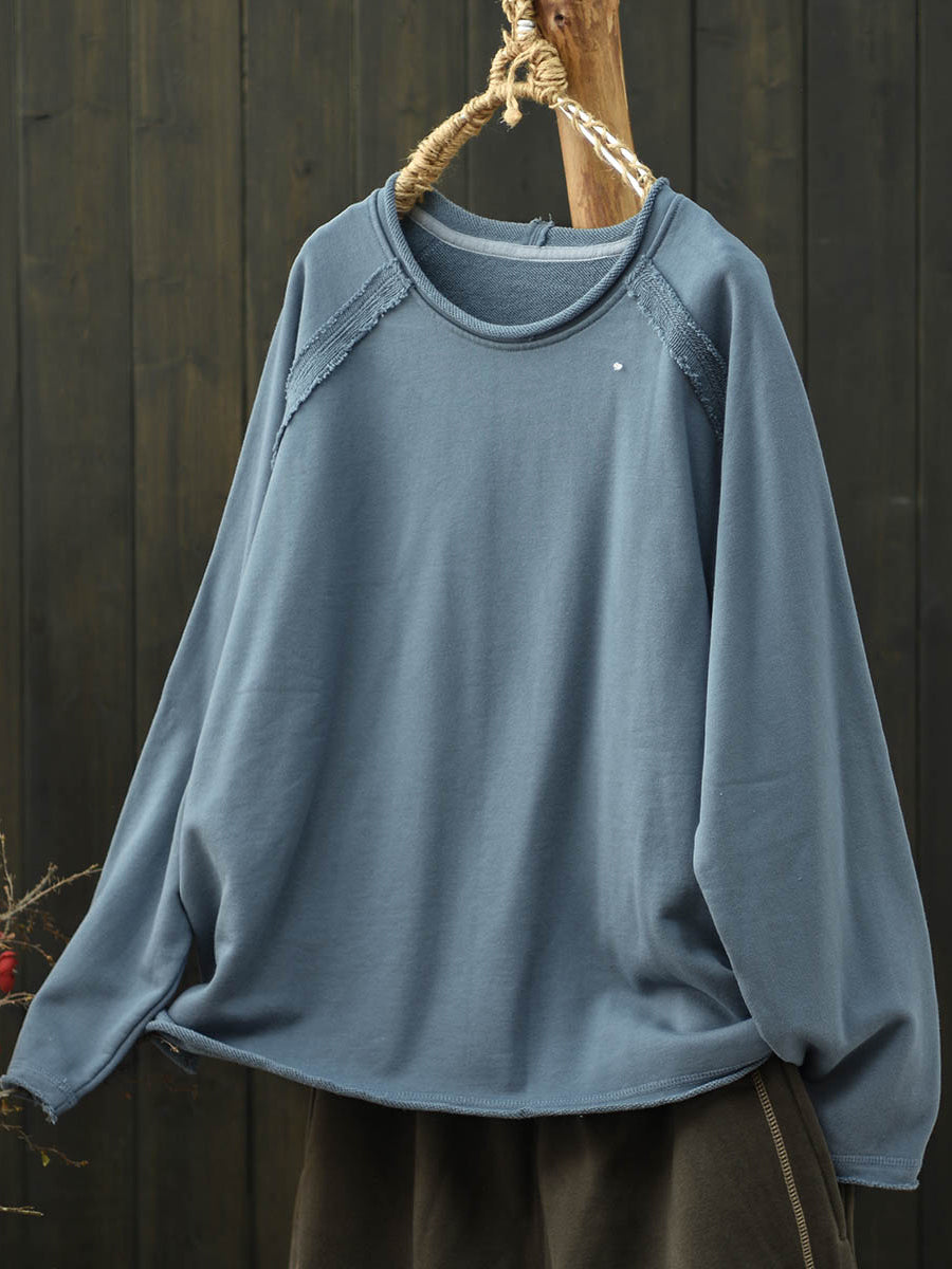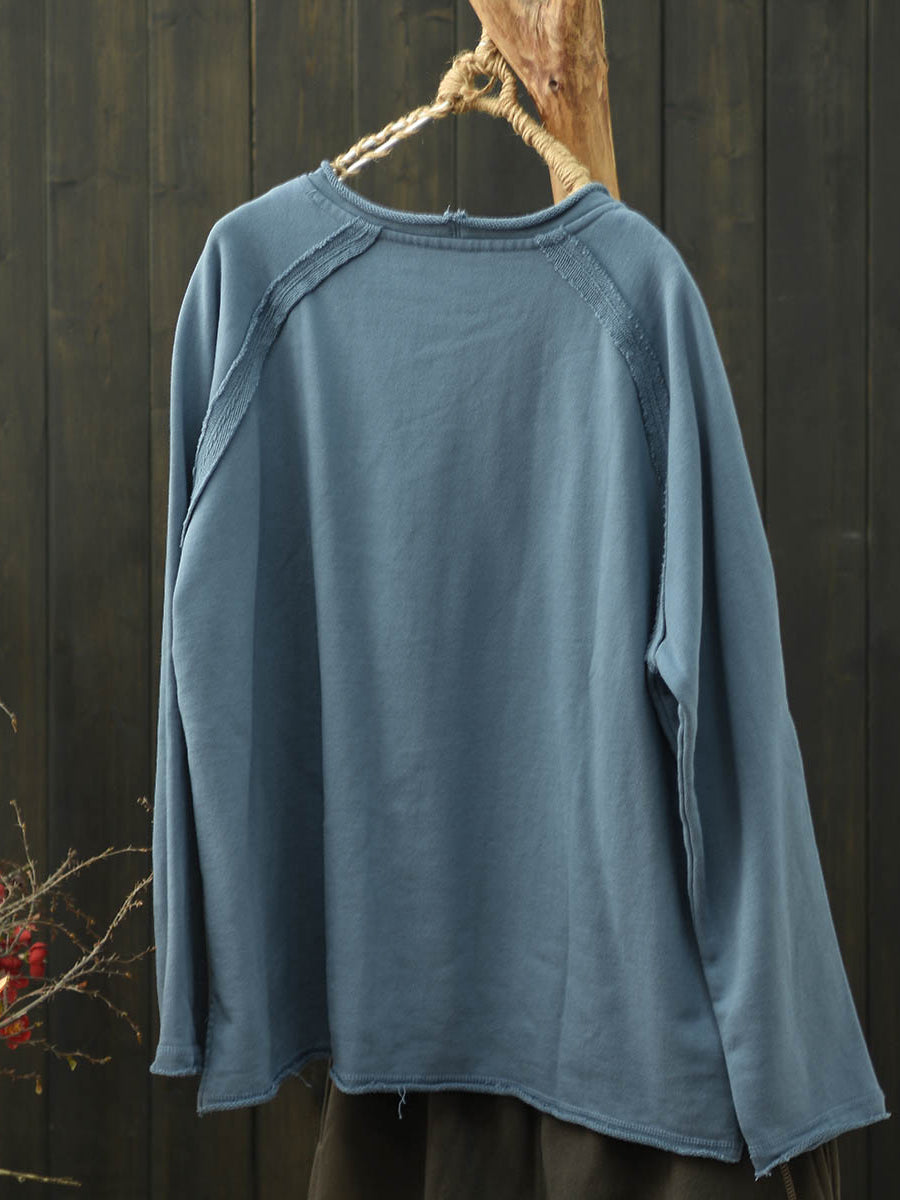 Kunstnerisk efterårsbluse med splejset O-hals i bomuld til kvinder