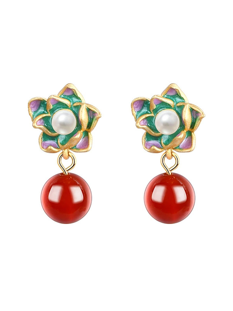 Kvinder Kunstneriske Blomster Jade S925Sølvøreringe