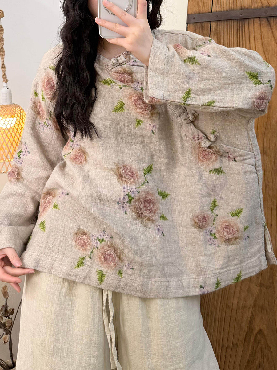 Kunstnerisk forårsblomst O-hals bluse til kvinder