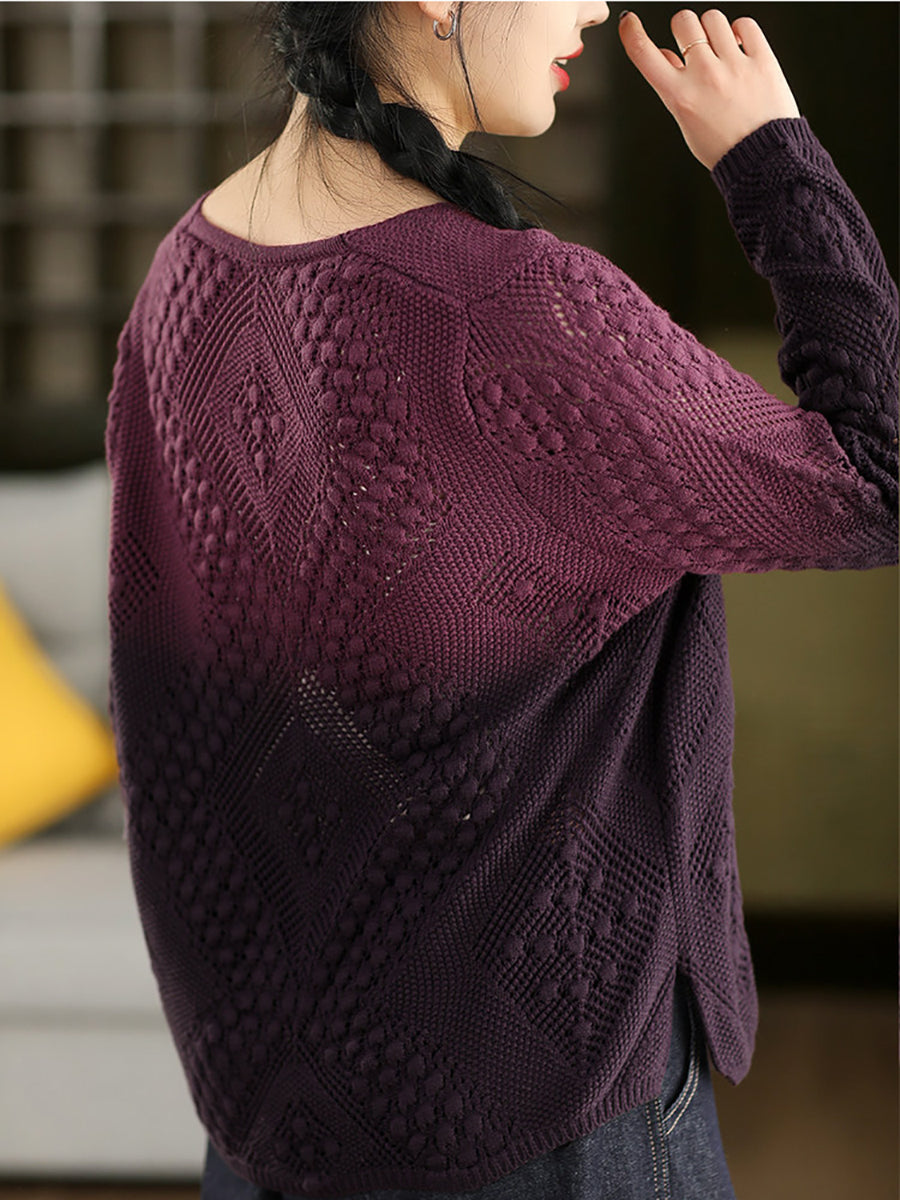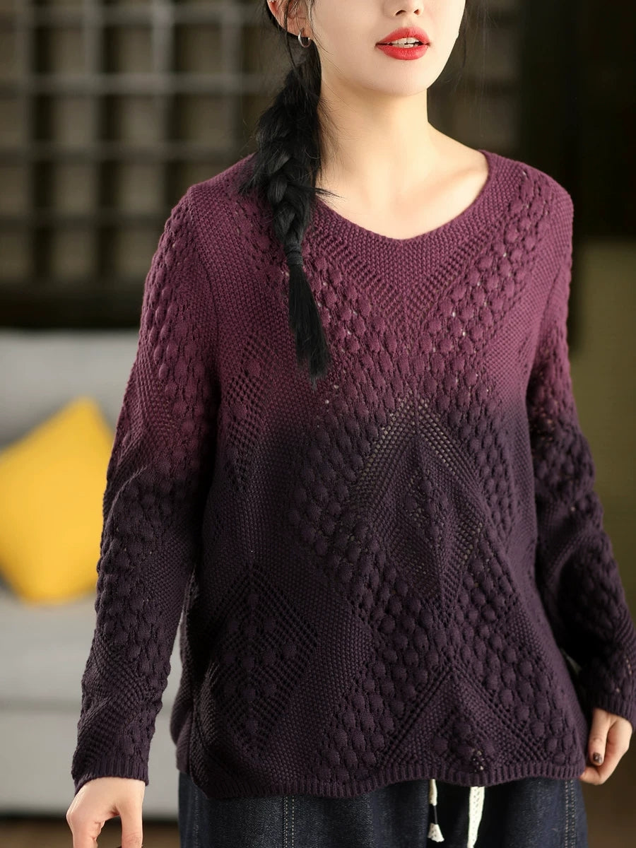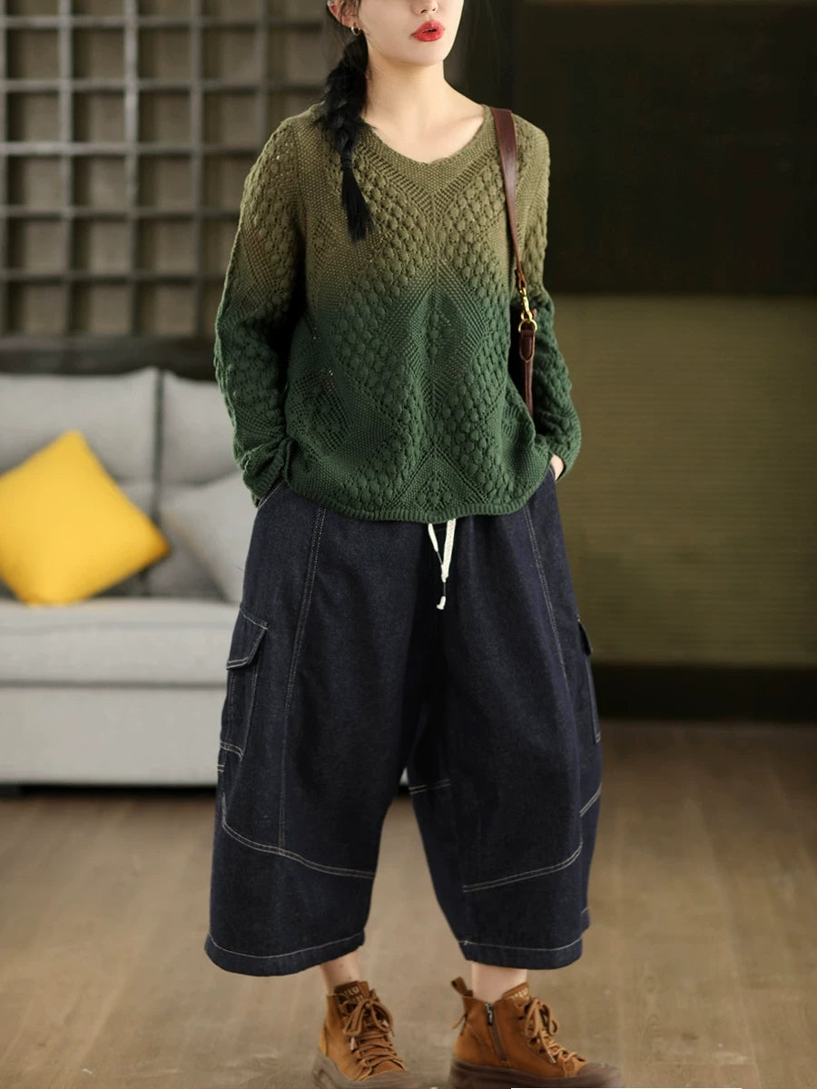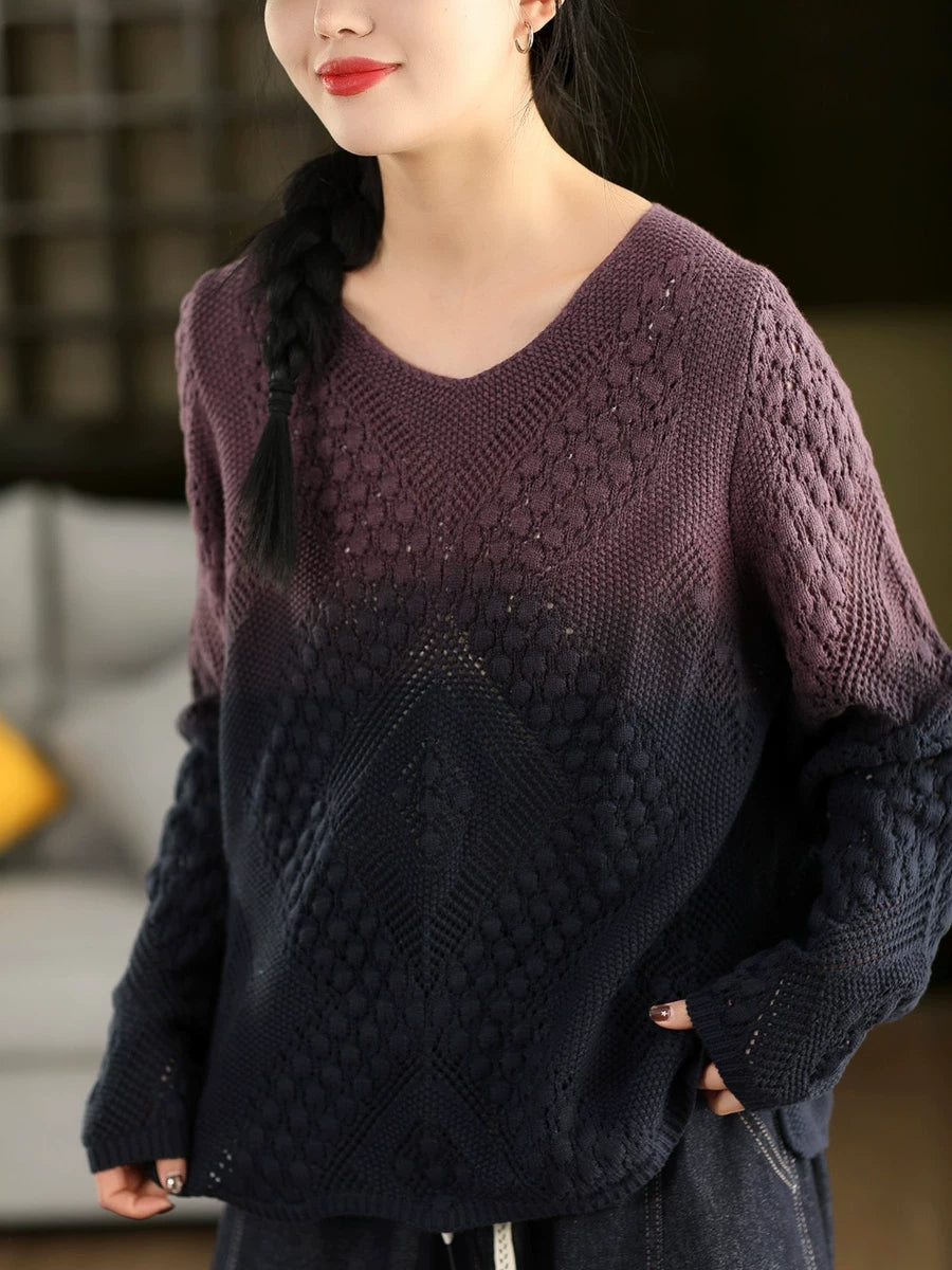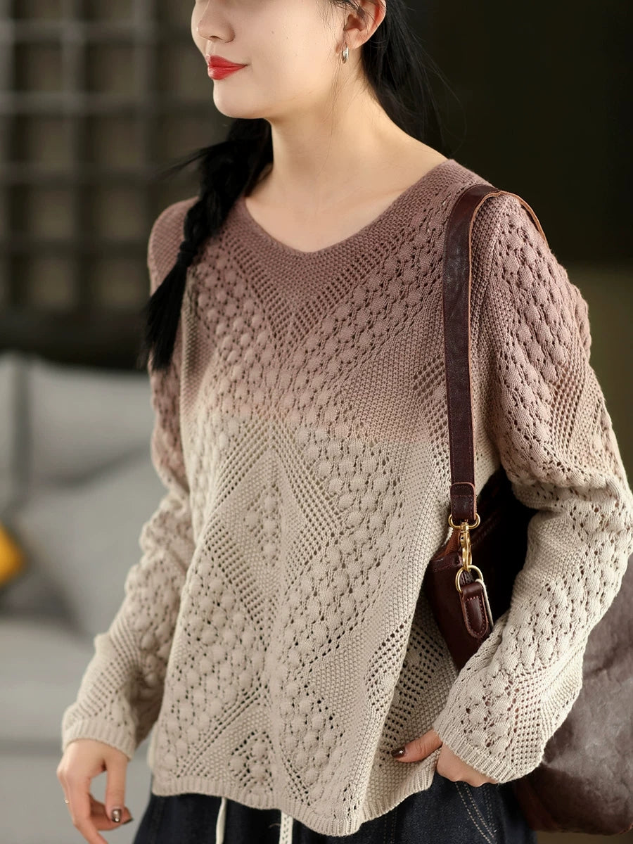 Kunstnerisk forårs-trøje med gradvis farve og O-hals til kvinder