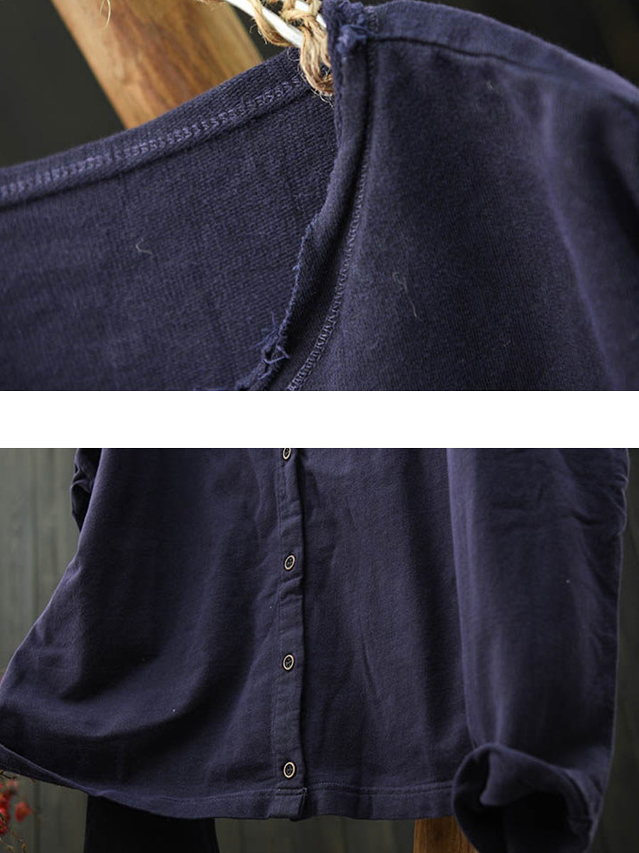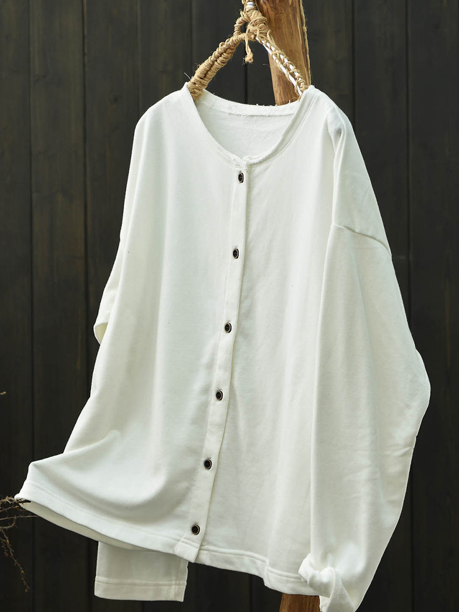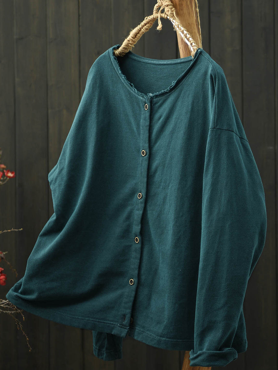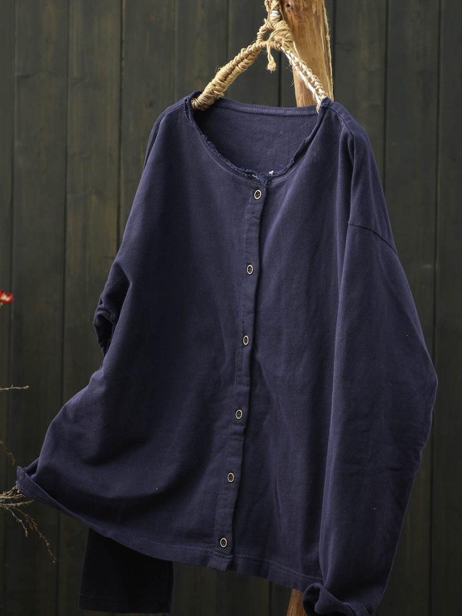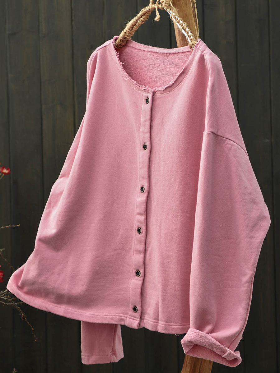 Kunstnerisk forårsskjorte med O-hals i bomuld til kvinder i ren farve