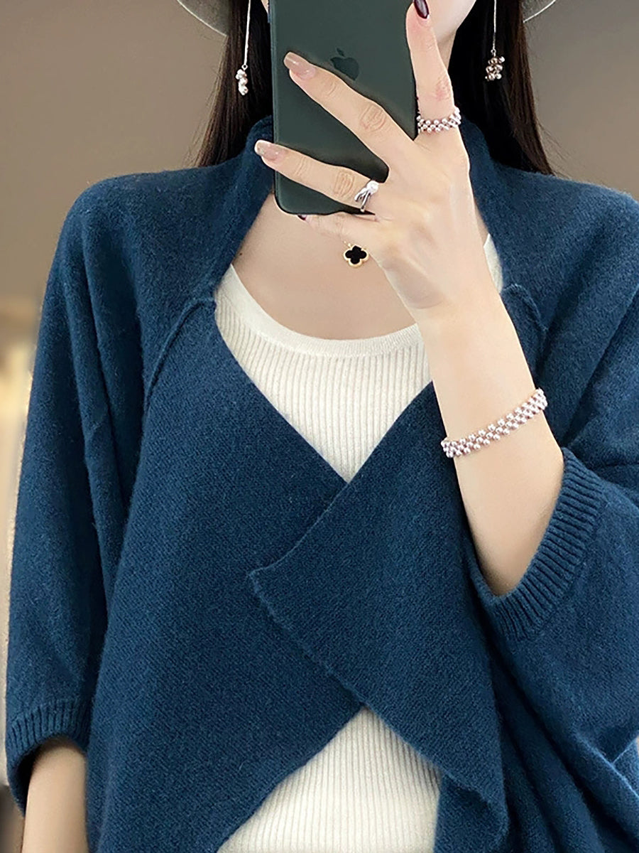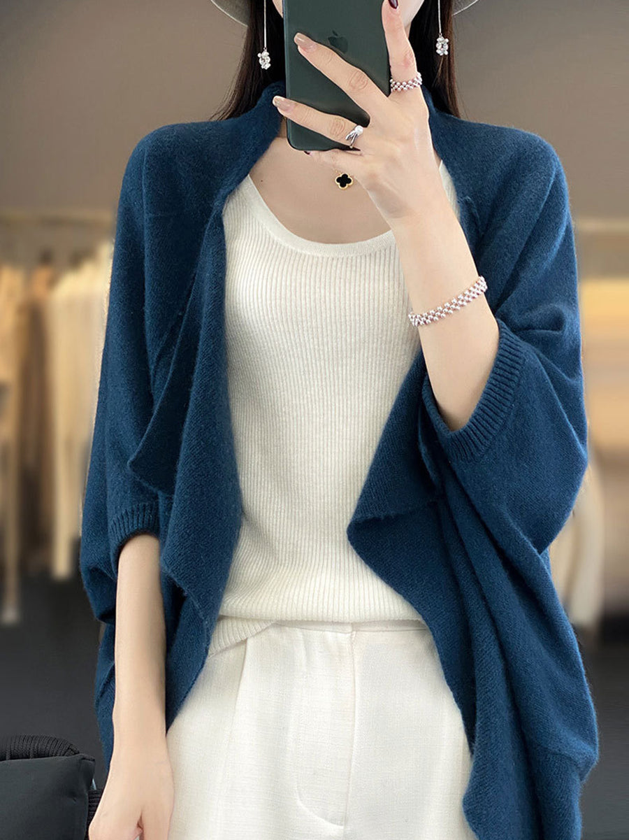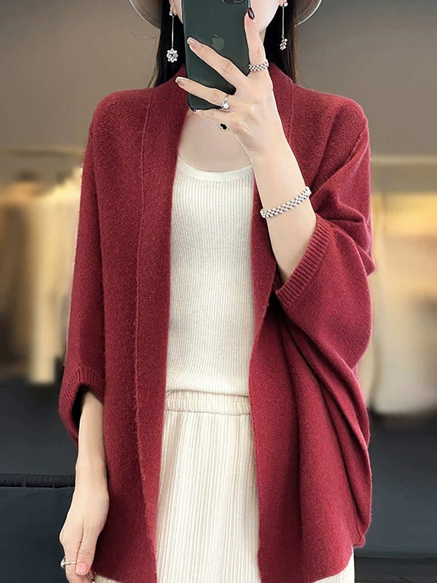 Kvinder Efterår Kunstnerisk Ren Farve Cardigan Uldtrøje