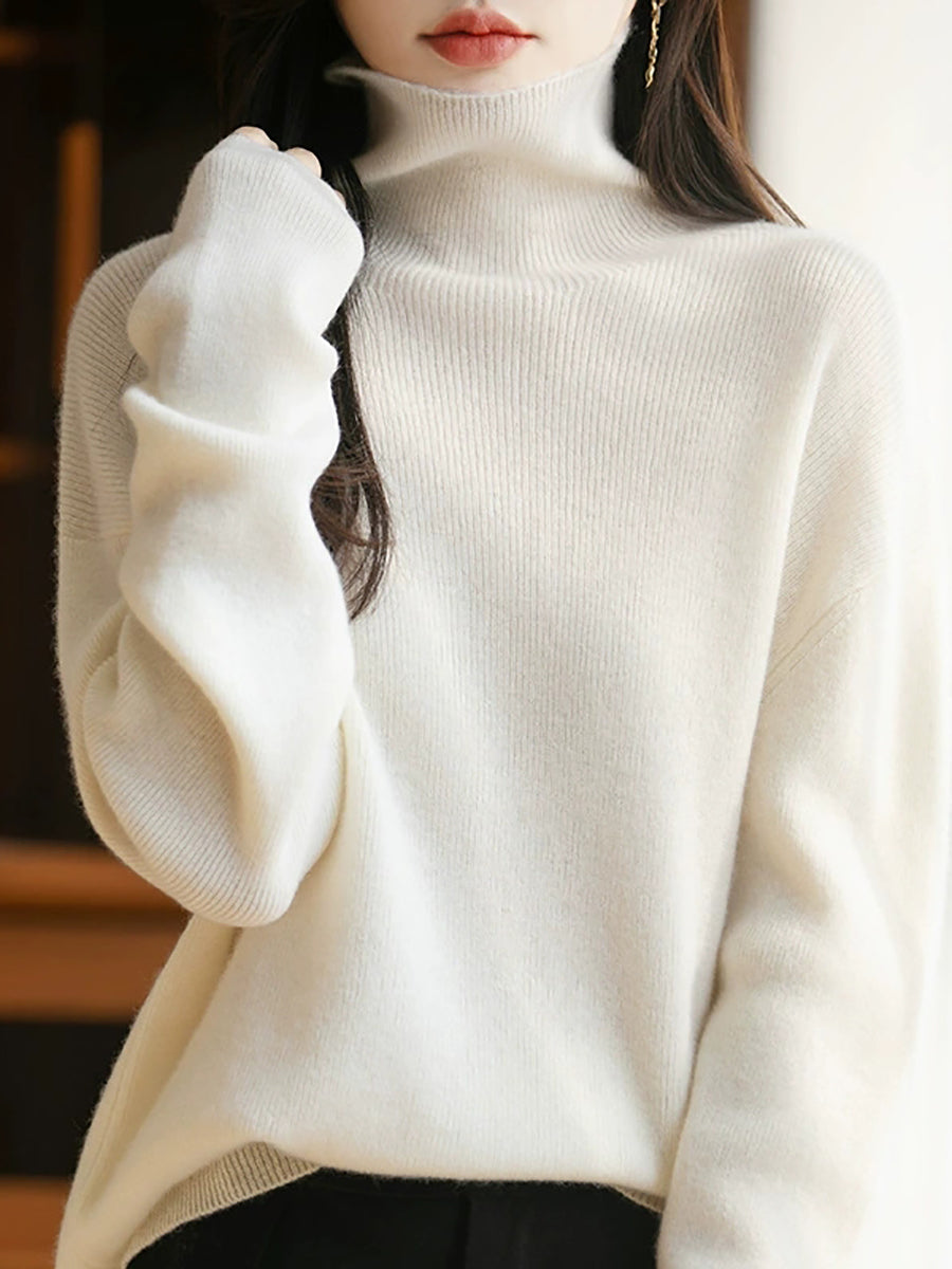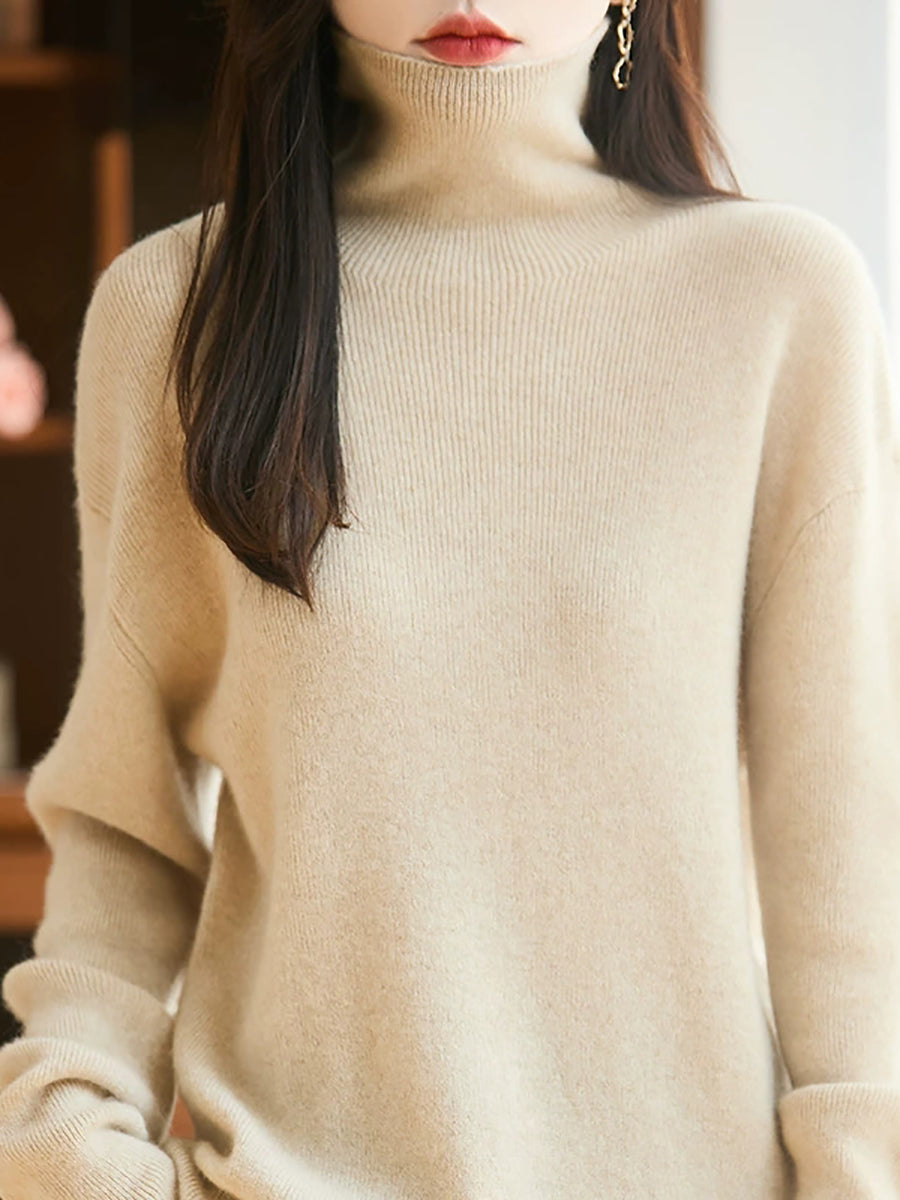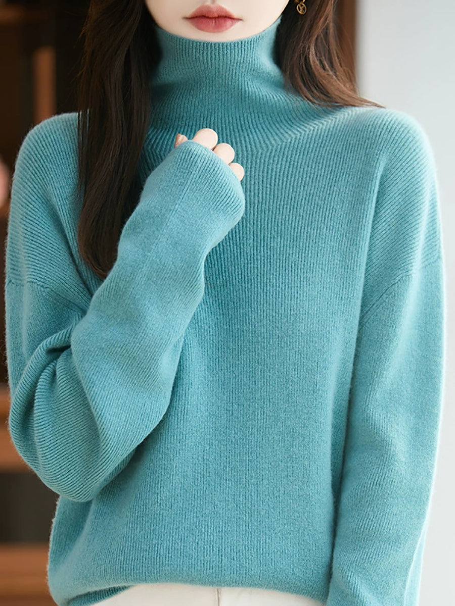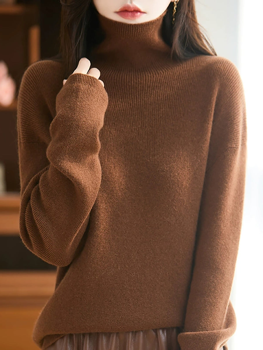 Kvinder efterårskunstnerisk ren farvet turtleneck-trøje