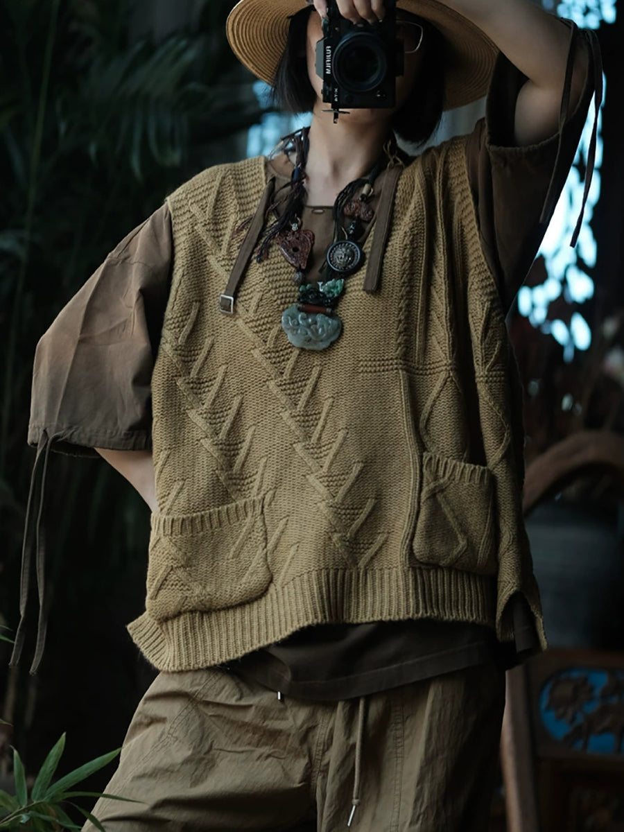 Kvinder Efterår Casual Ren Farve V-Hals Uldvest