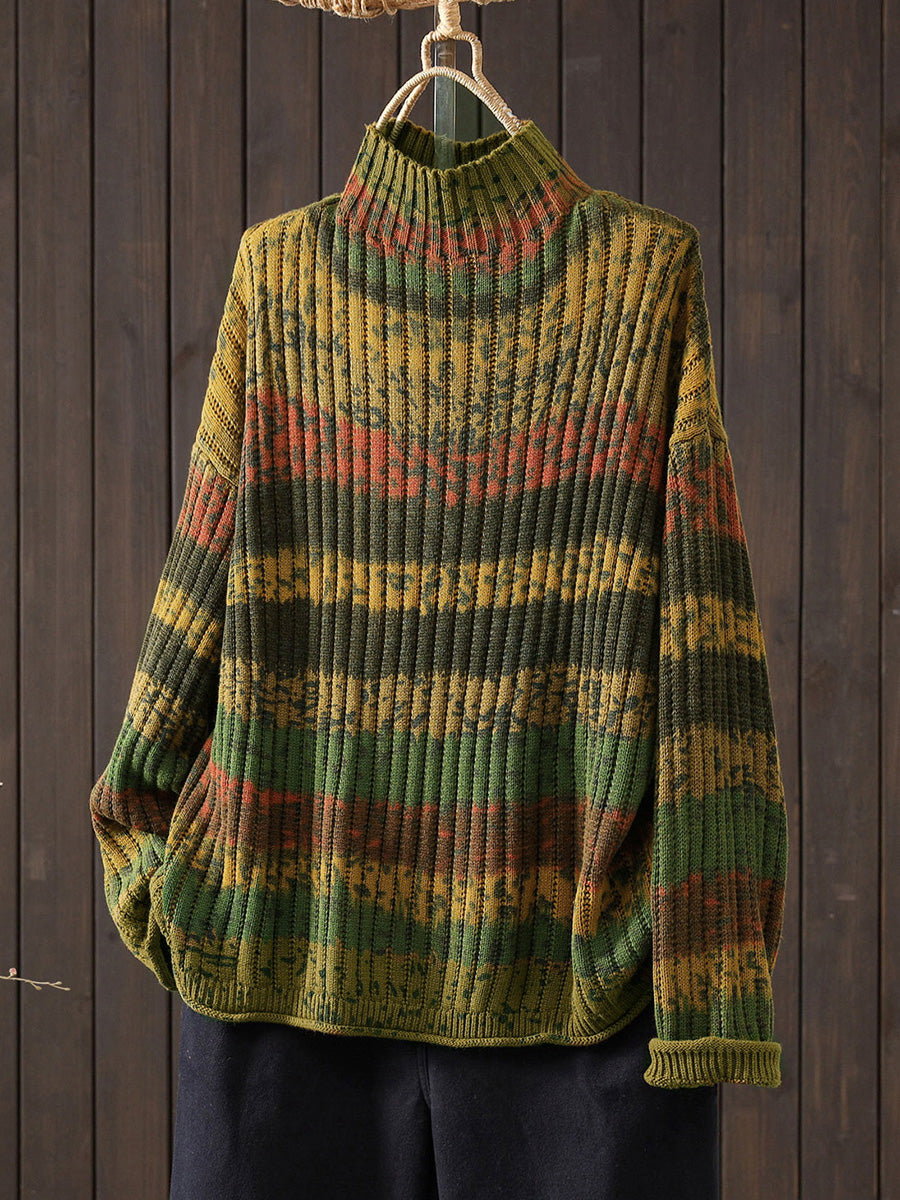 Kvinder Efterårsfarveblokstribet Halvhøjhalsetrøje