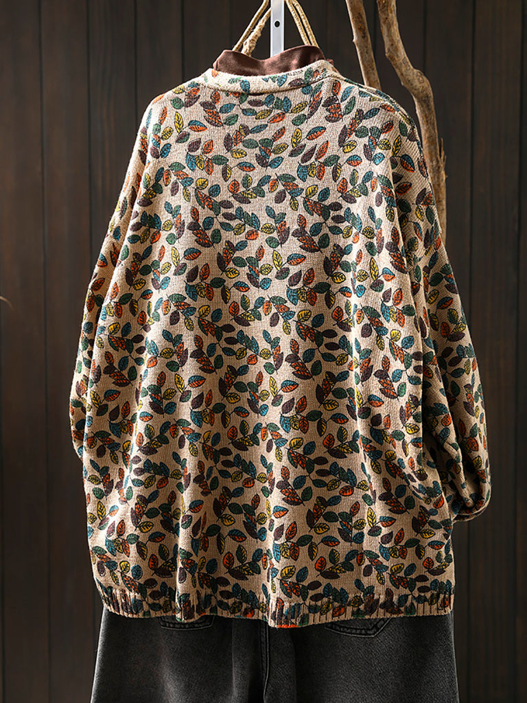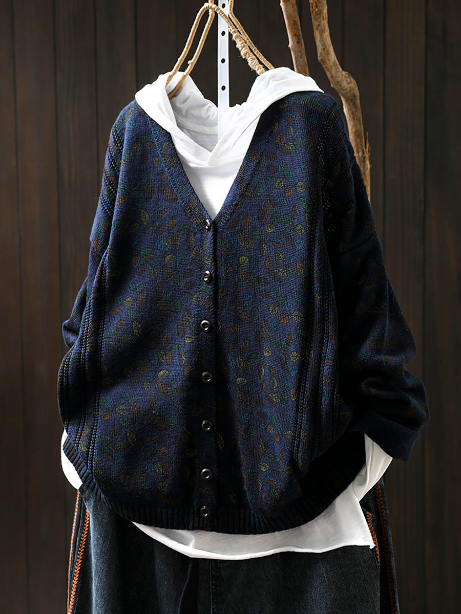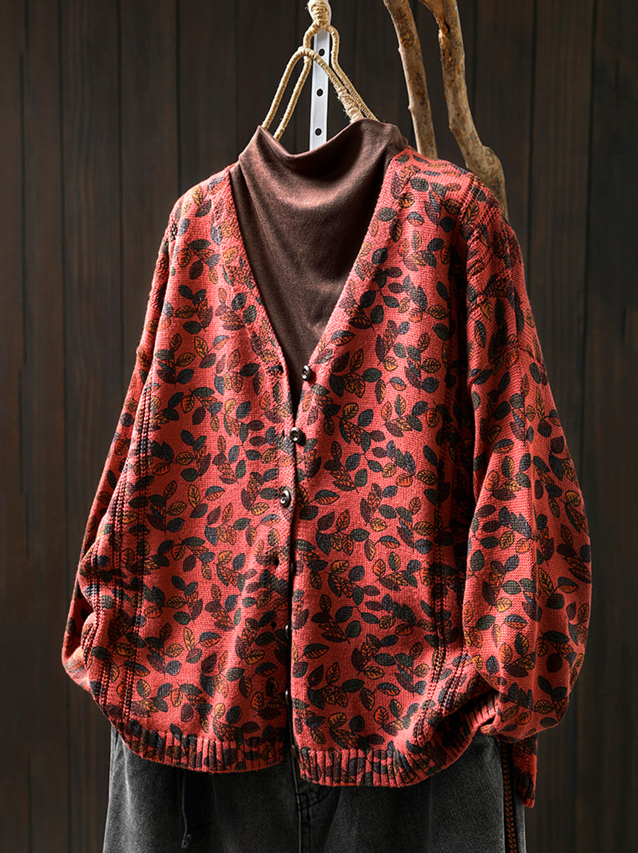 Kvinders efterårsbladstrikket cardigan med V-hals