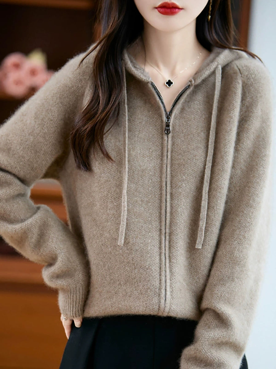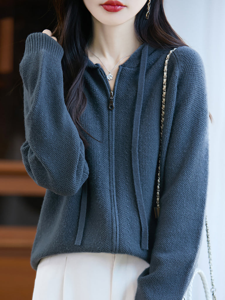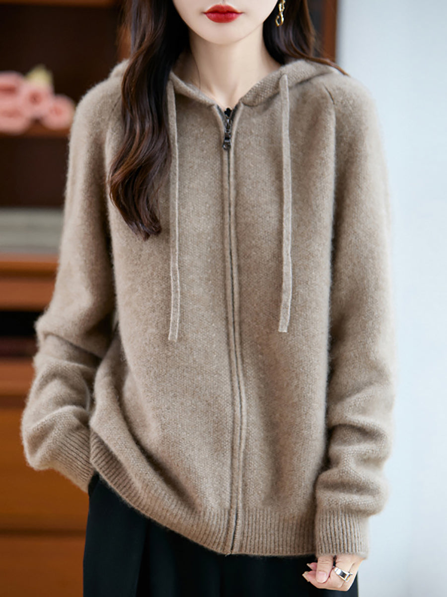 Kvinder Efterår Ren Farve Strikket Hættetrøje Cardigan