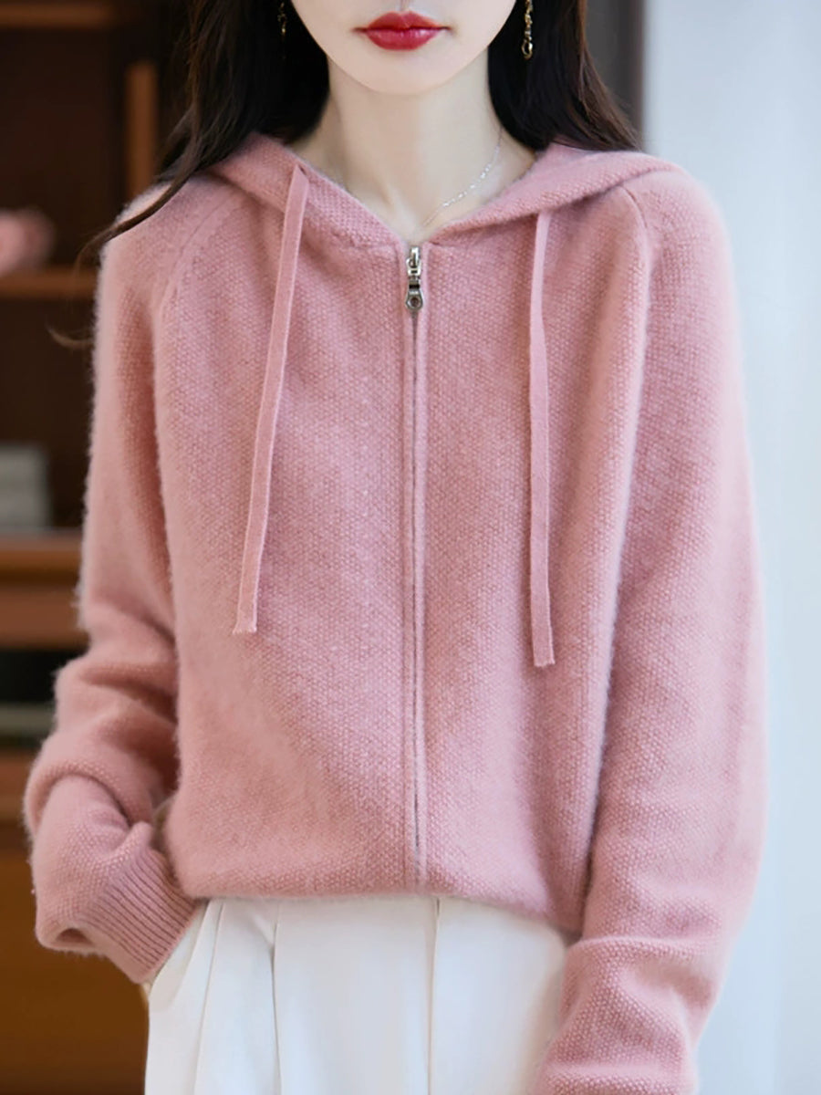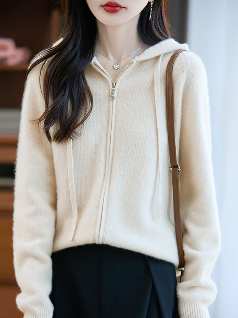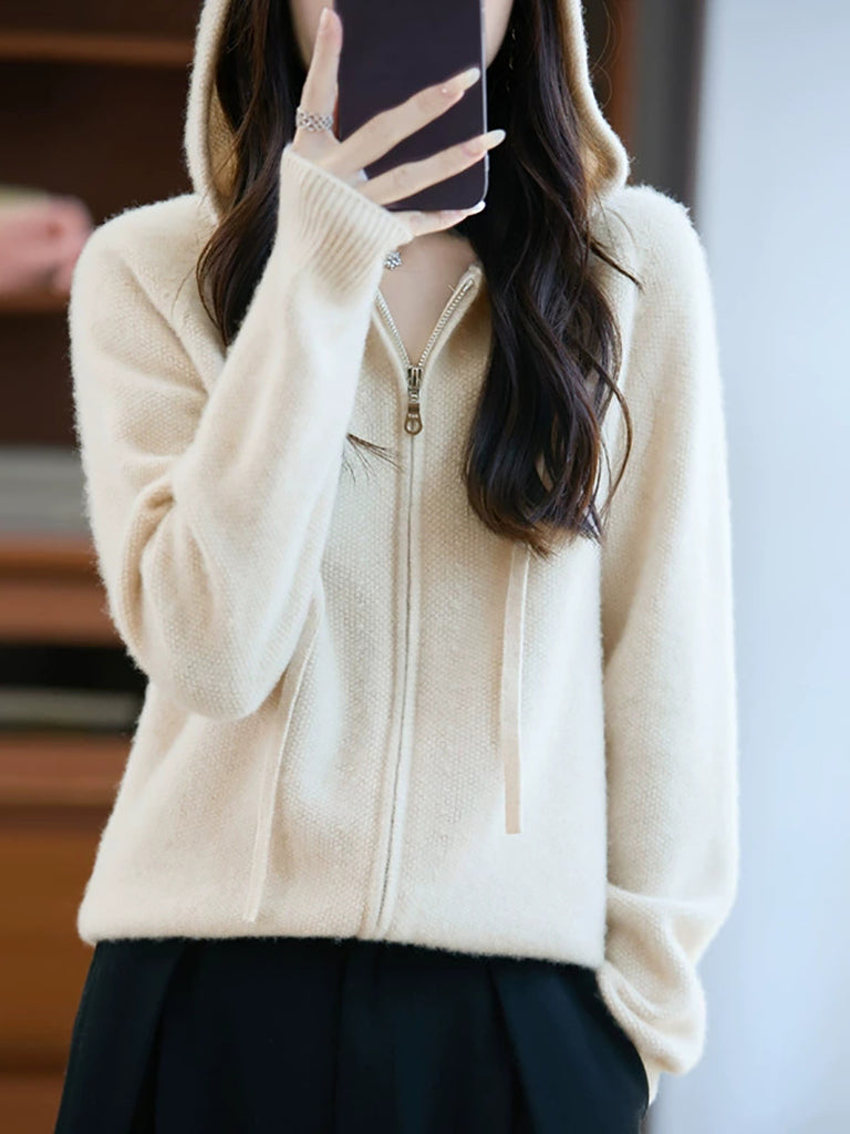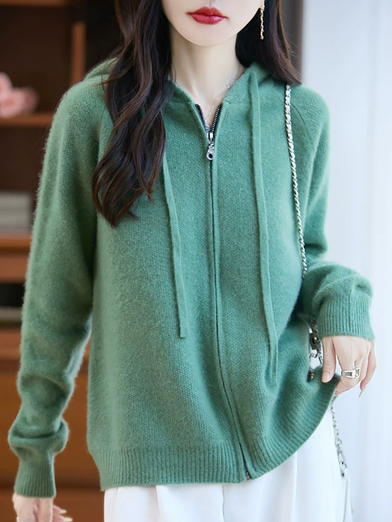 Kvinder Efterår Ren Farve Strikket Hættetrøje Cardigan
