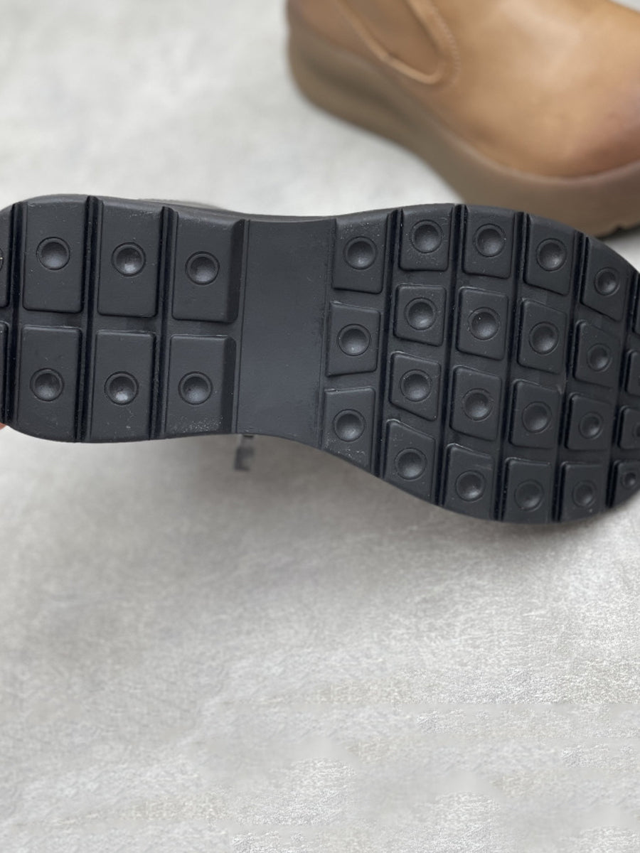 Kvinder efterårsstøvler i ren farve i læder med lynlås