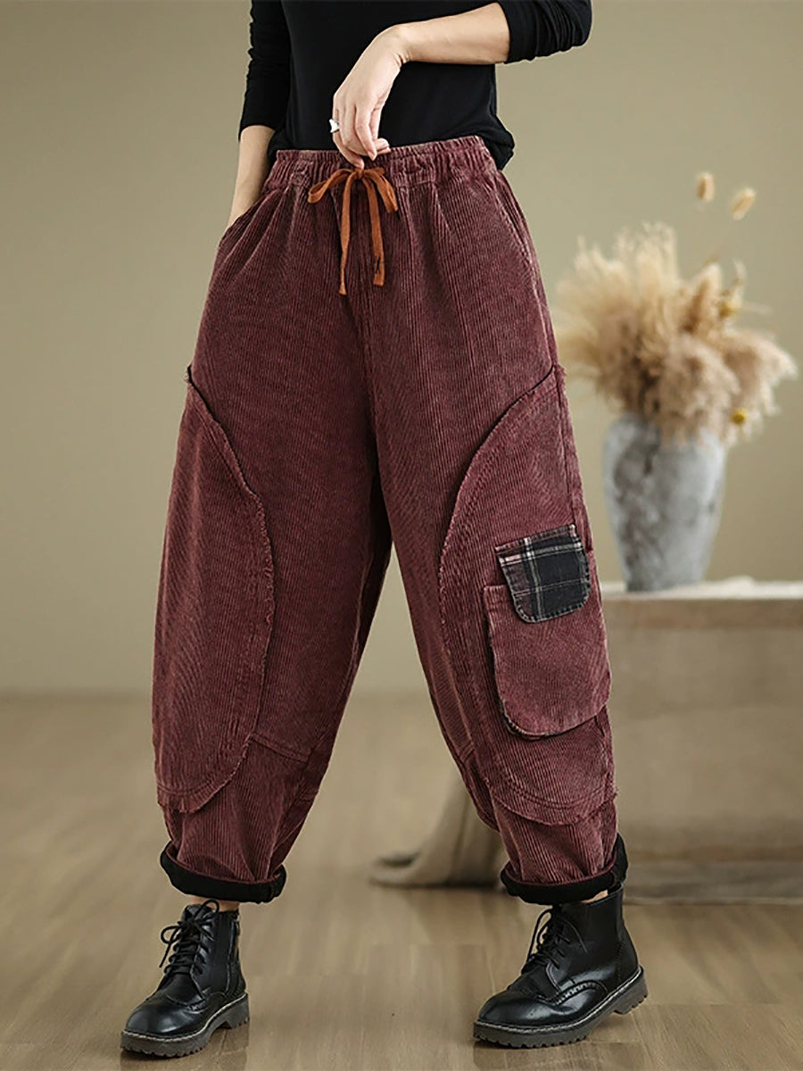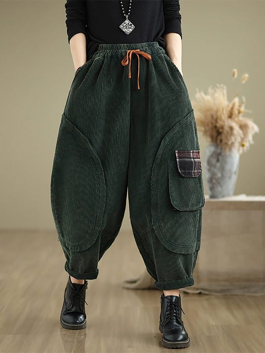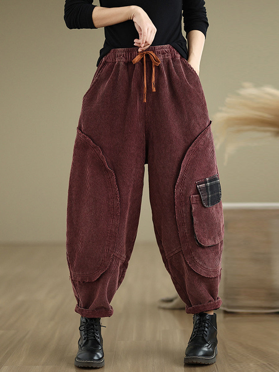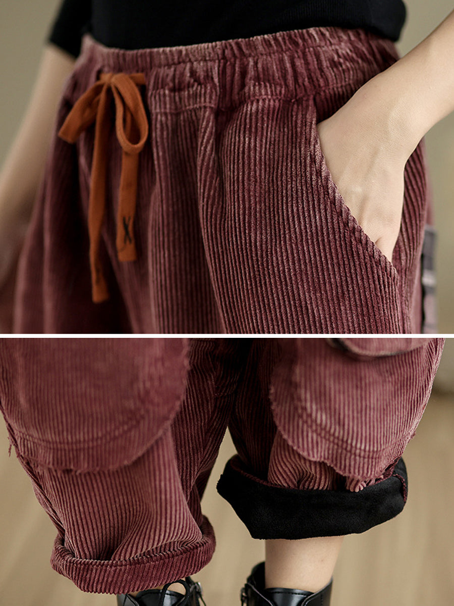 Kvinder Efterår Retro Ren Farve Corduroy Harembukser