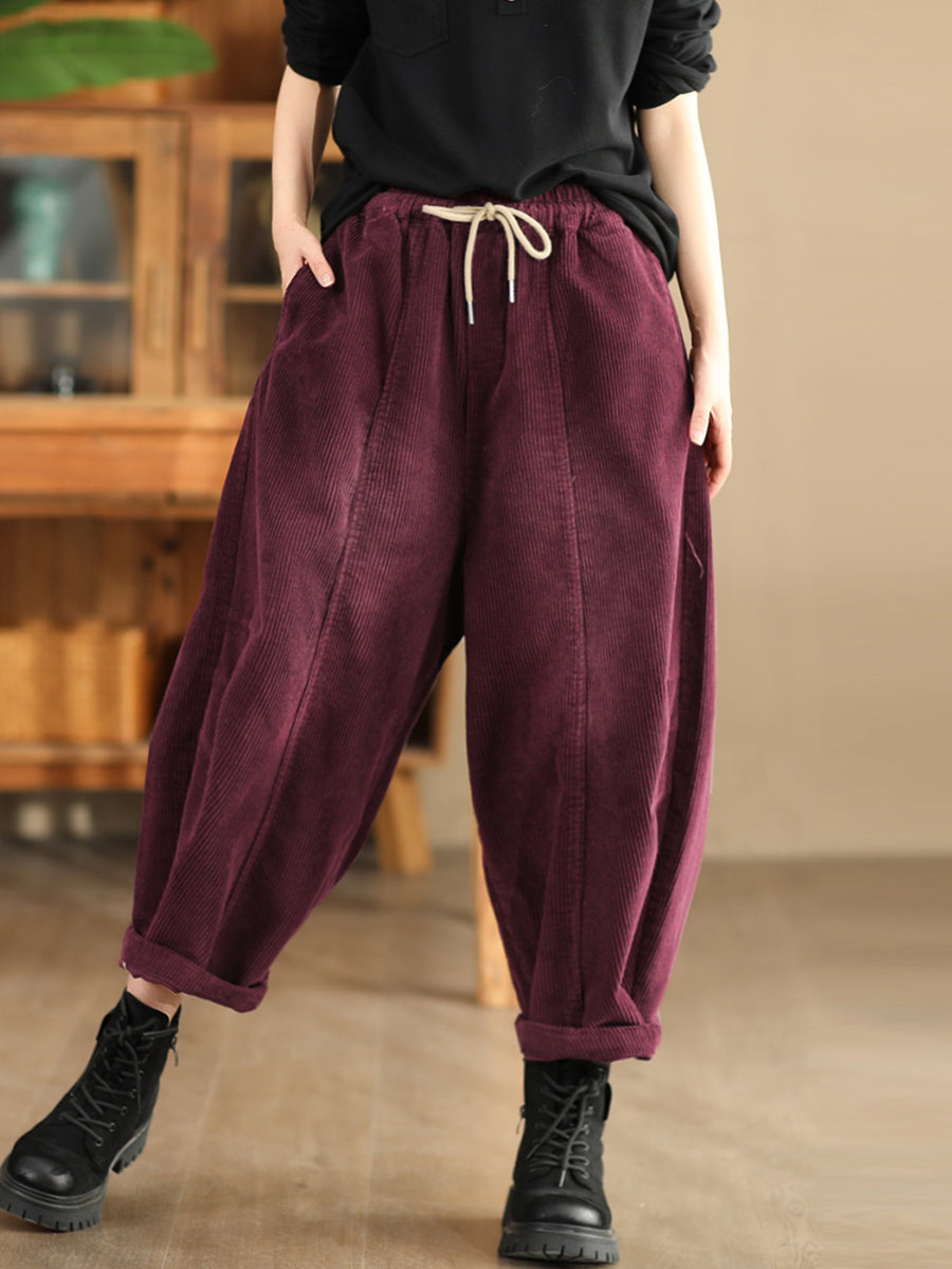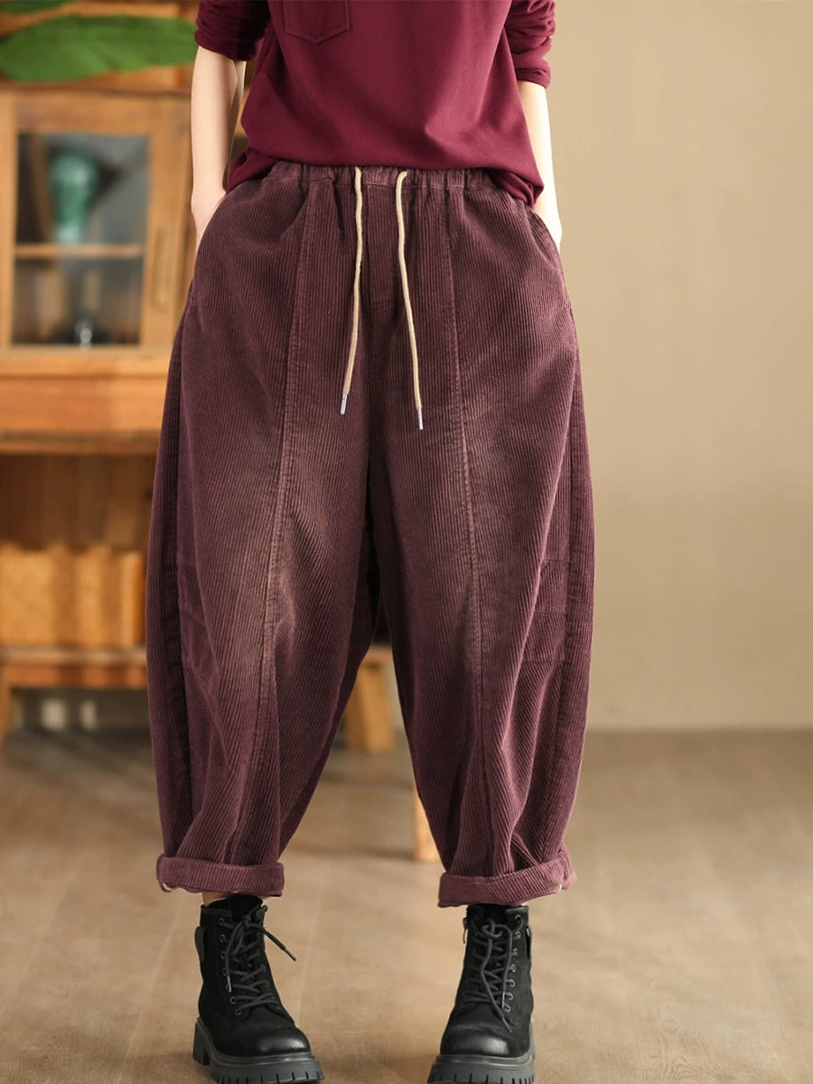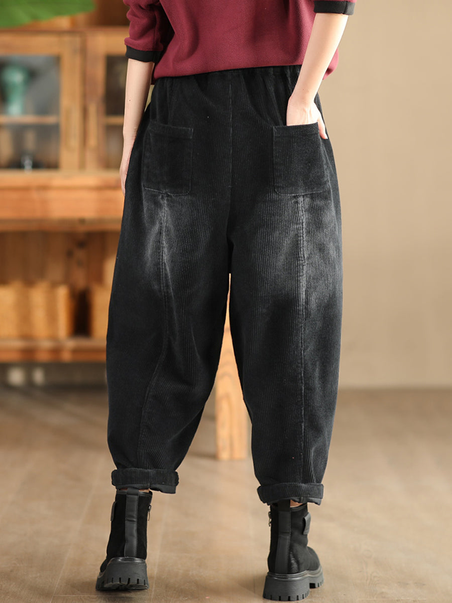 Kvinder Efterår Retro Ren Farve Corduroy Harembukser