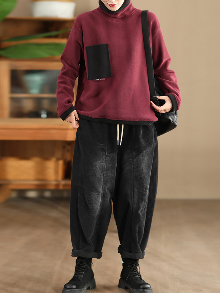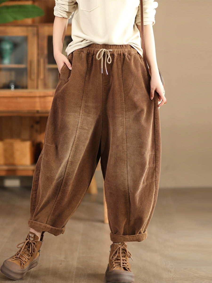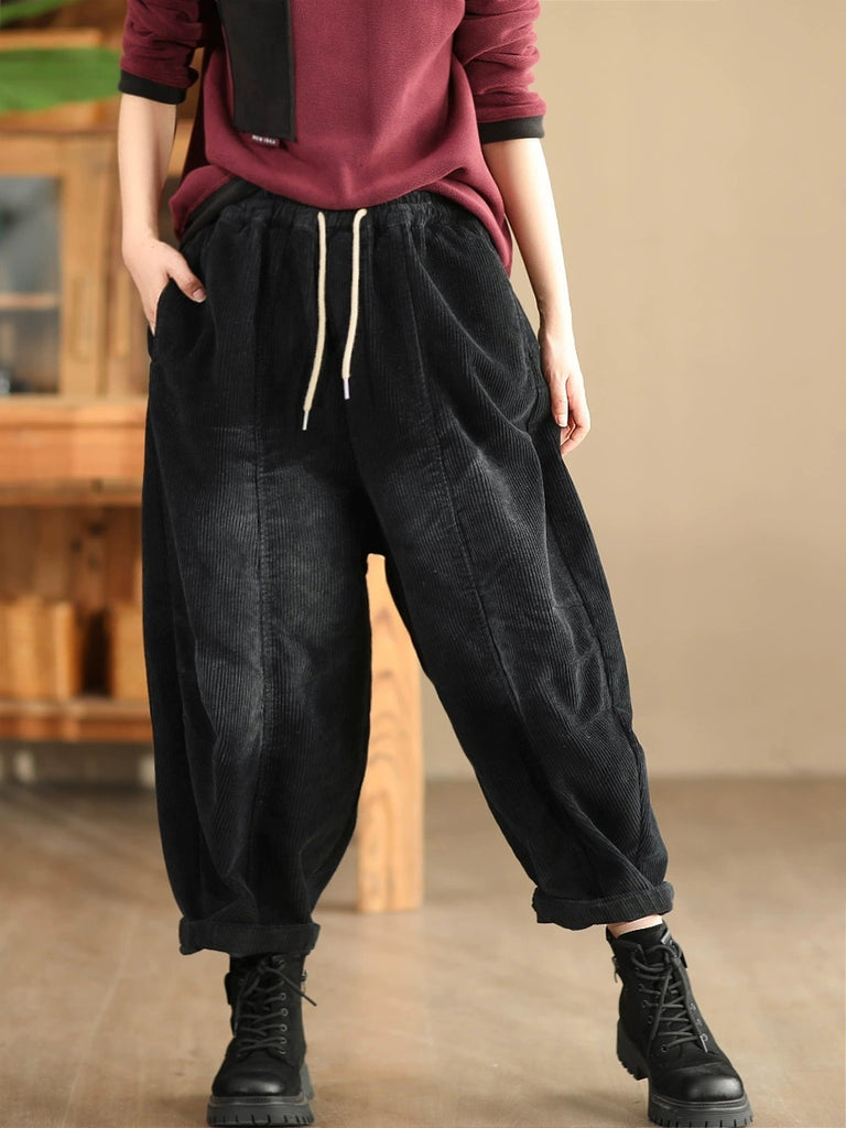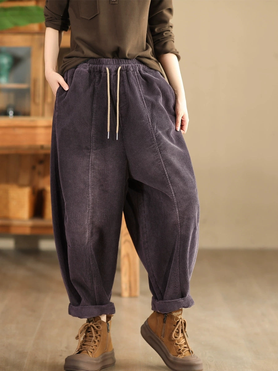 Kvinder Efterår Retro Ren Farve Corduroy Harembukser