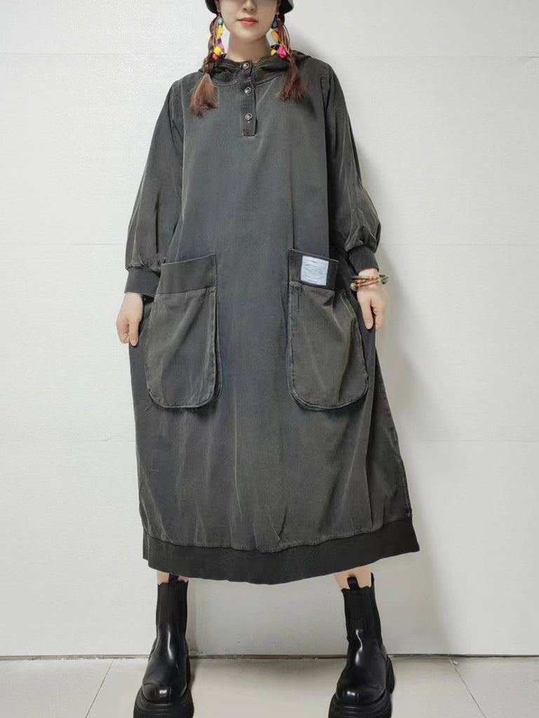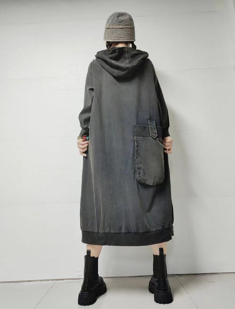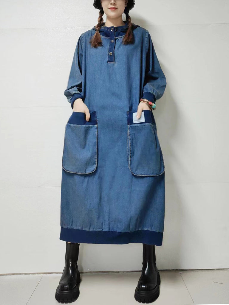 Kvinder Efterår Retro Ren Farve Denim Hættetrøje