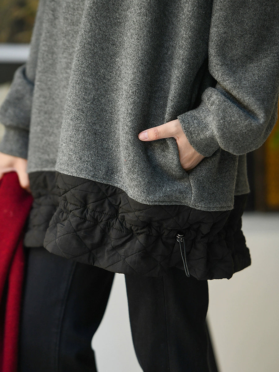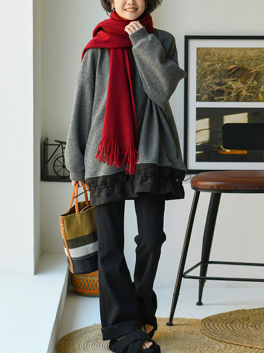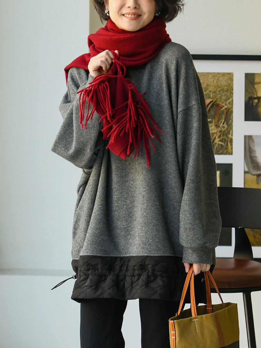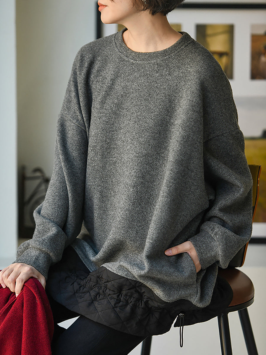 Kvinder Casual Efterår Ren Farve Spliced O-Hals Bluse