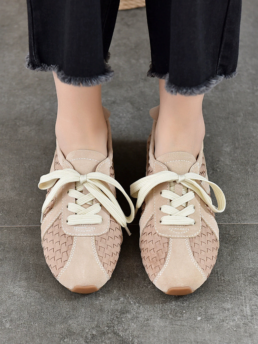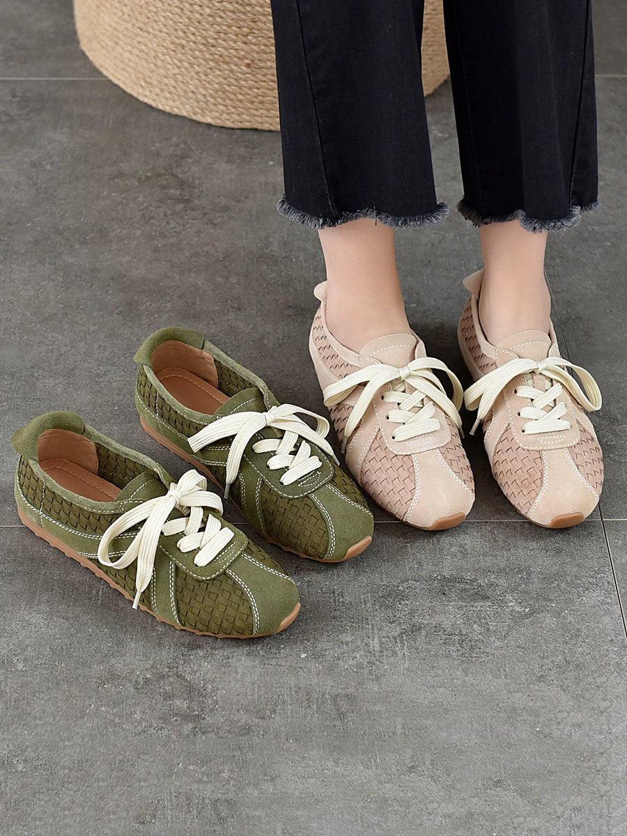 Kvinder Casual Læder Spliced Flade Sko