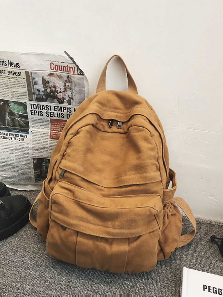 Kvinders afslappet ren farvet lærredsrygsæk
