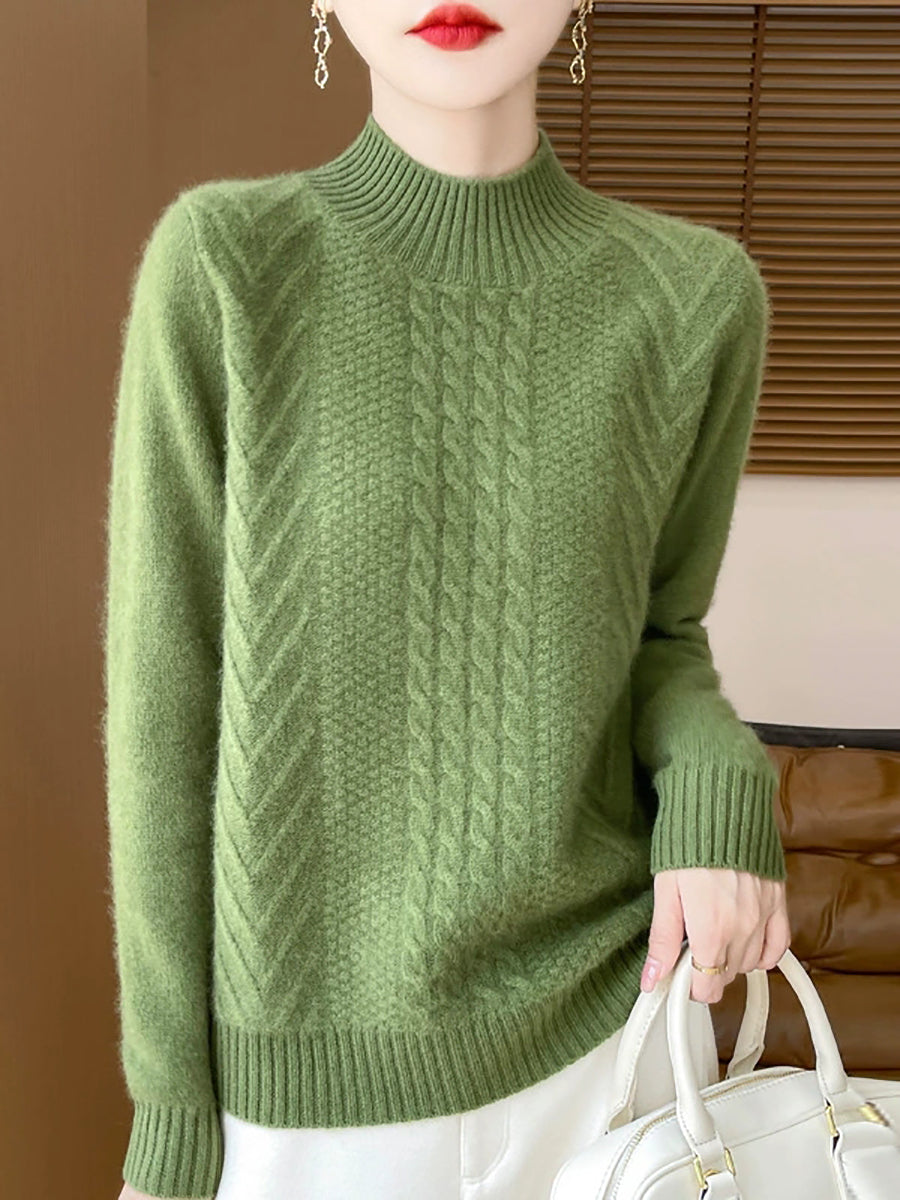 Kvinder Casual Forår Kabelstrikket Halvhøj hals Sweater