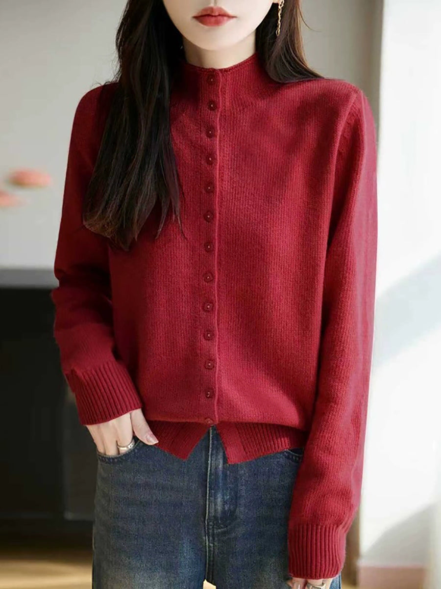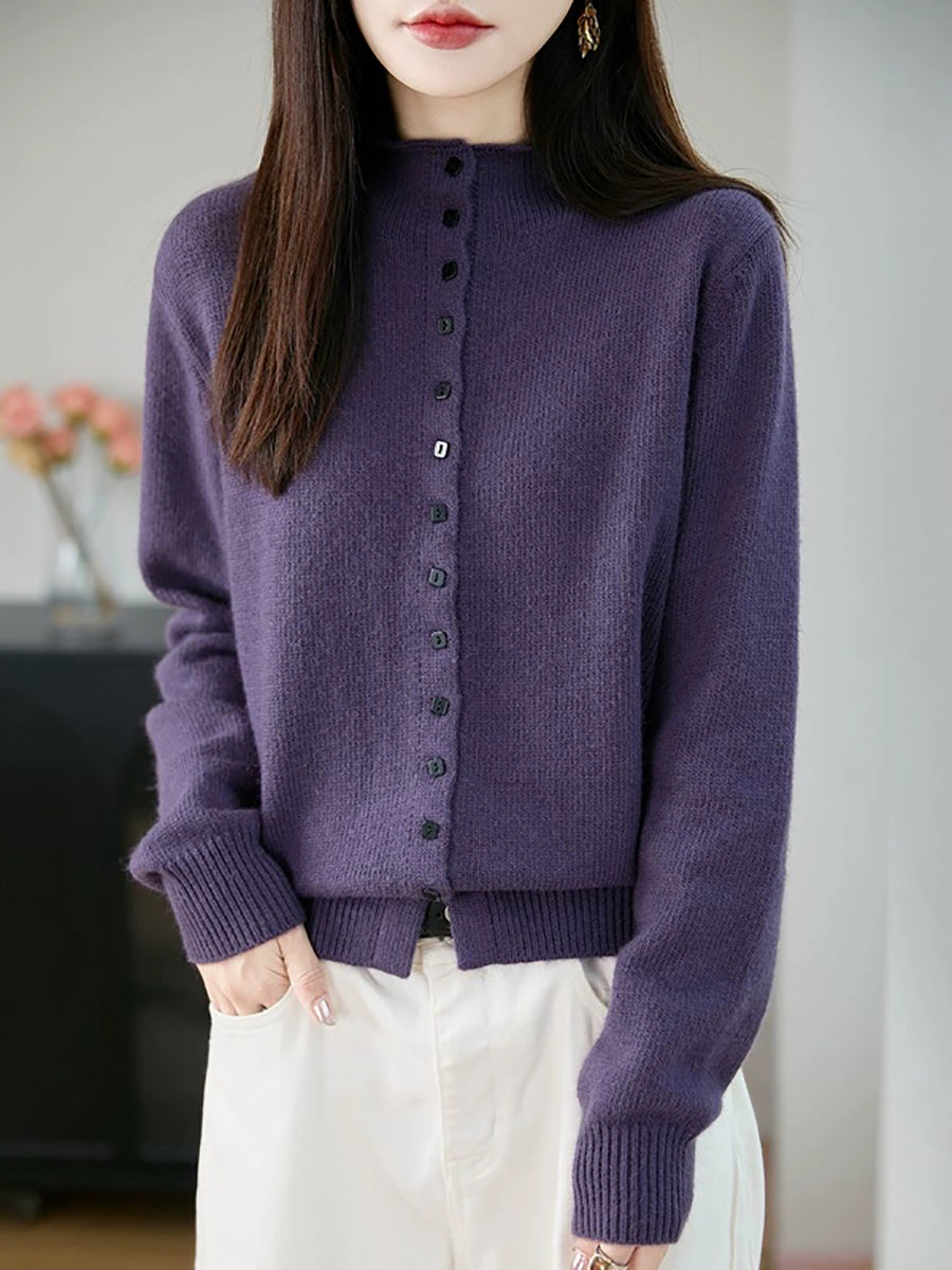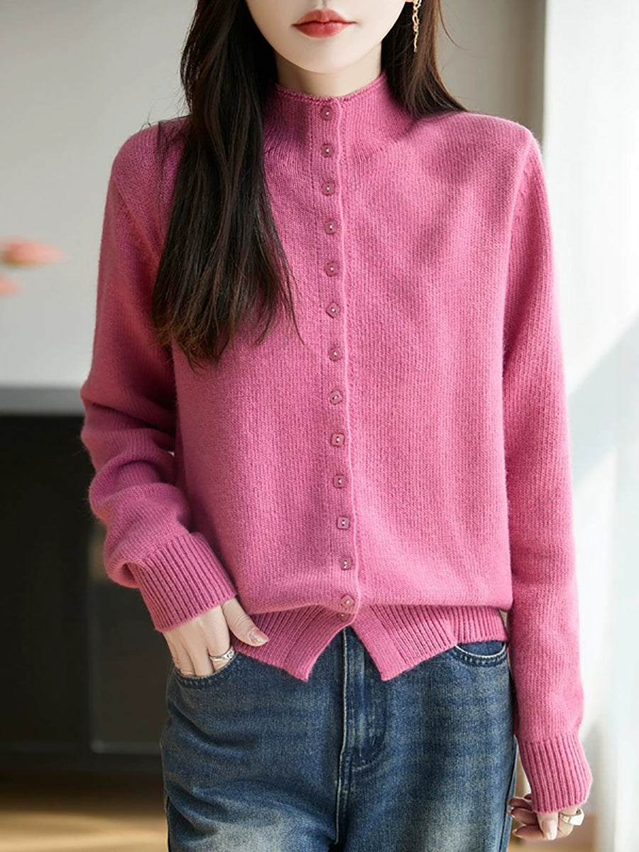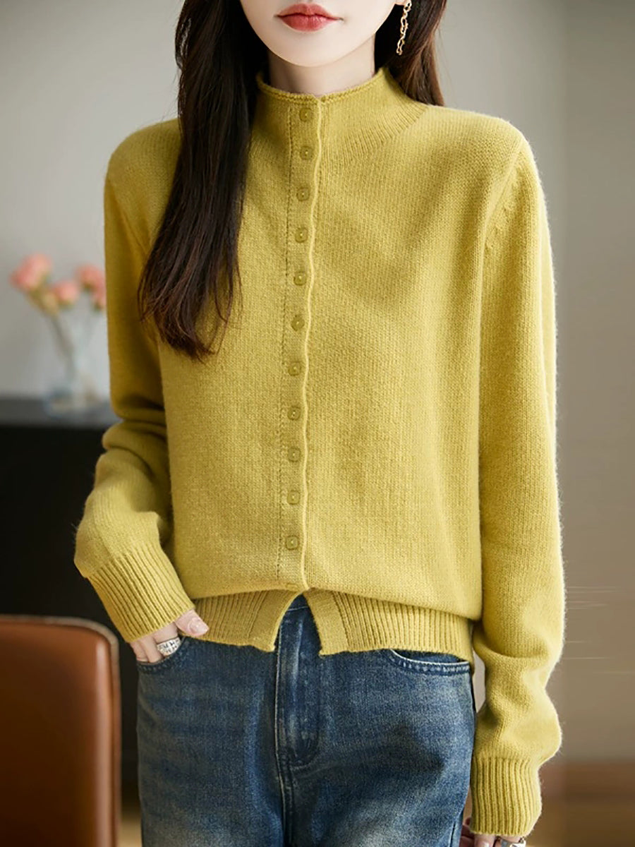 Kvinder Casual Forår Ren Farve Halvhøj Halvtop Sweater