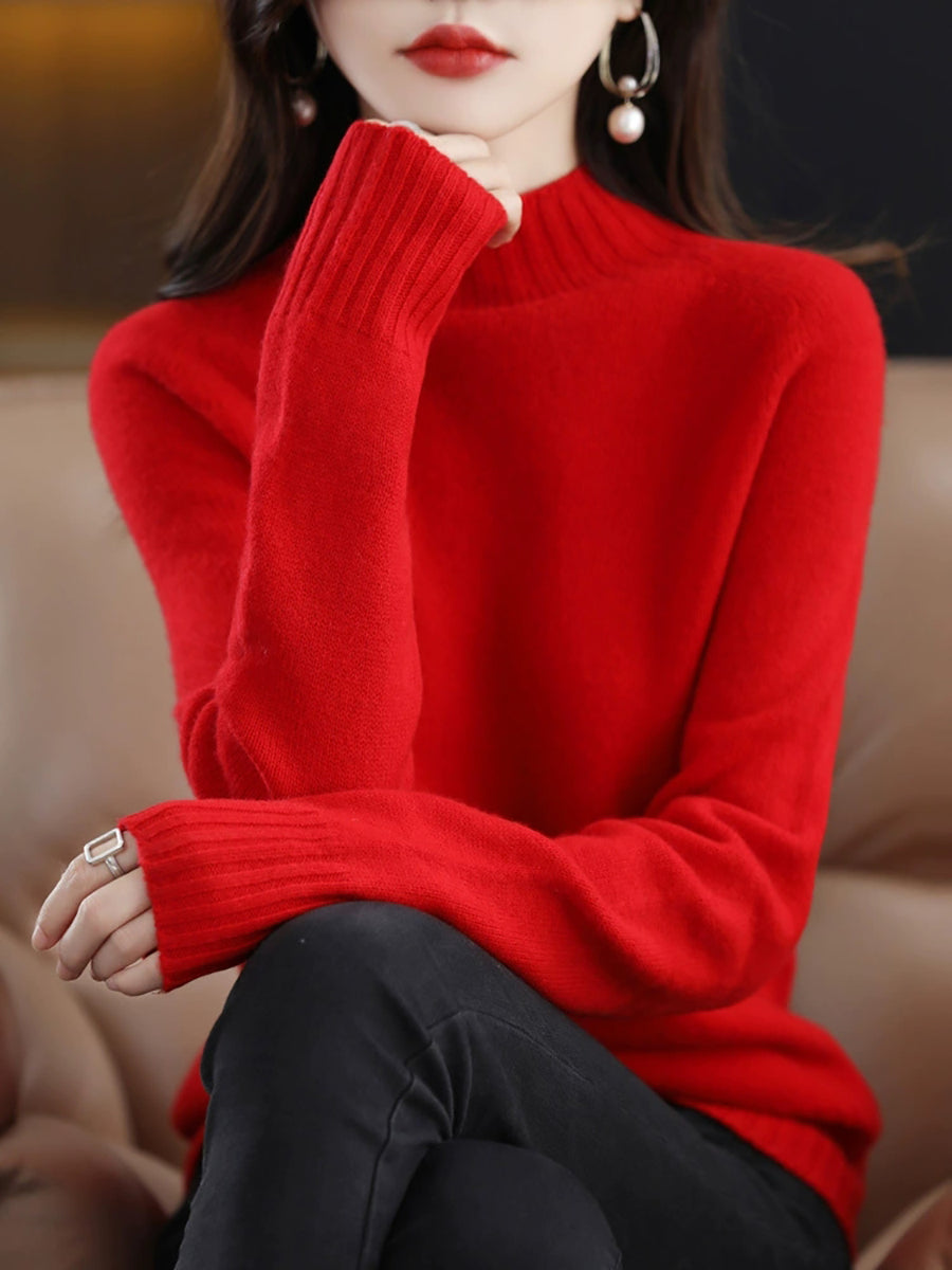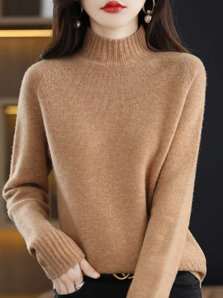 Kvinder Casual Forår Ren Farve Halvhøj Halvtop Sweater