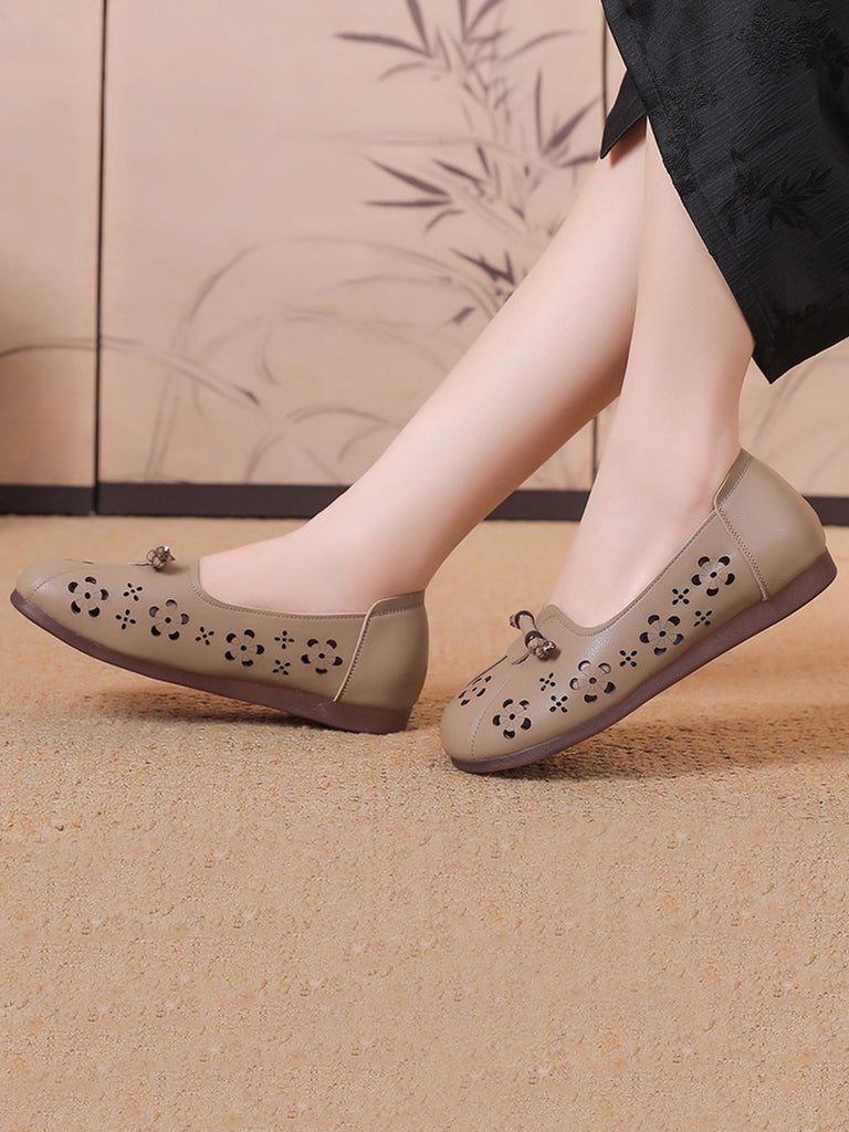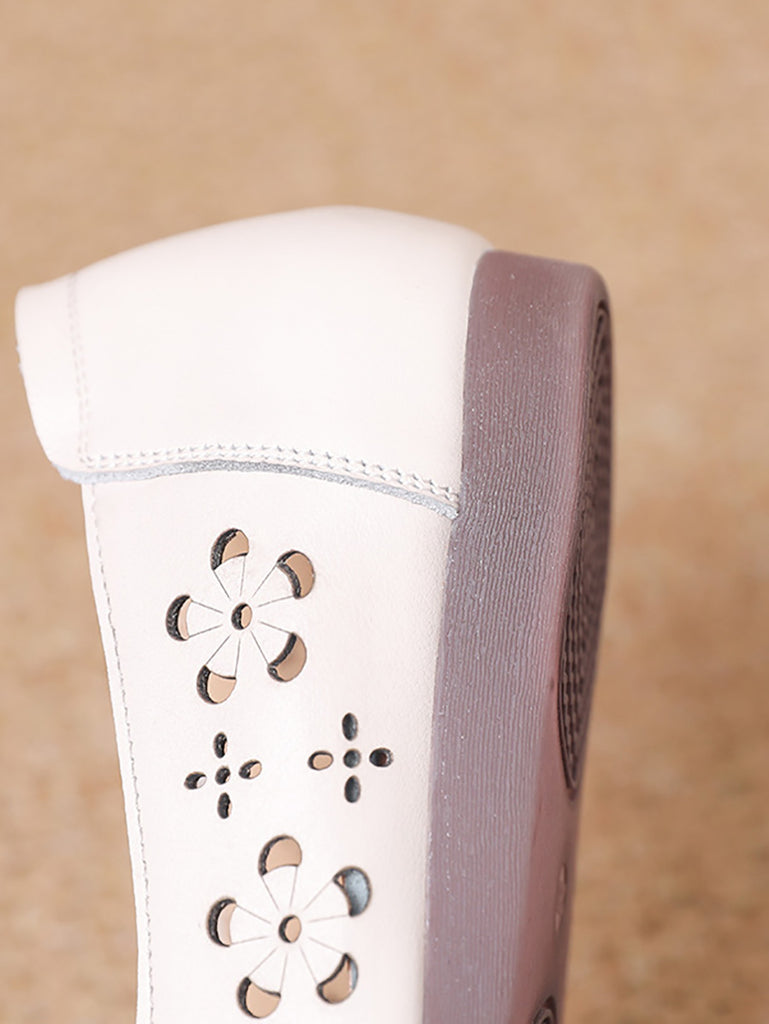Kvinder Casual Sommer Læder Udhulede Flade Sko