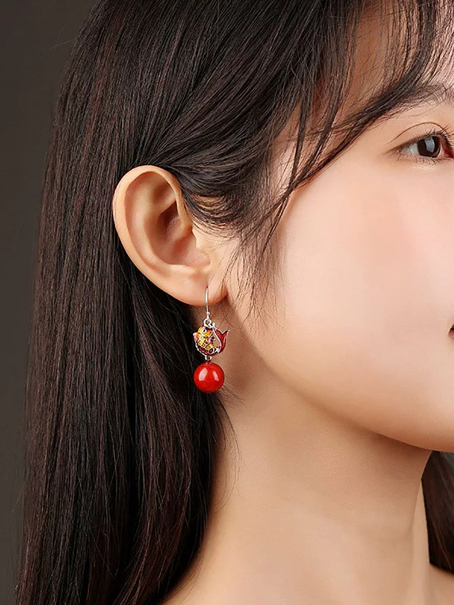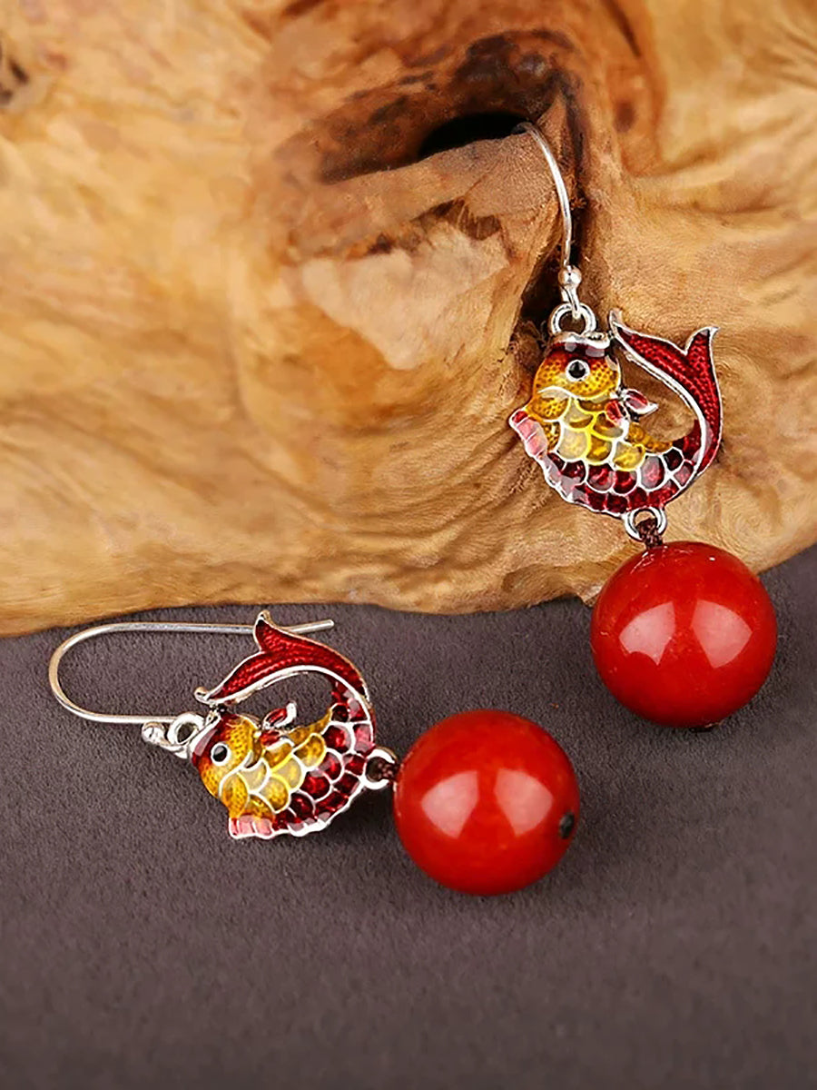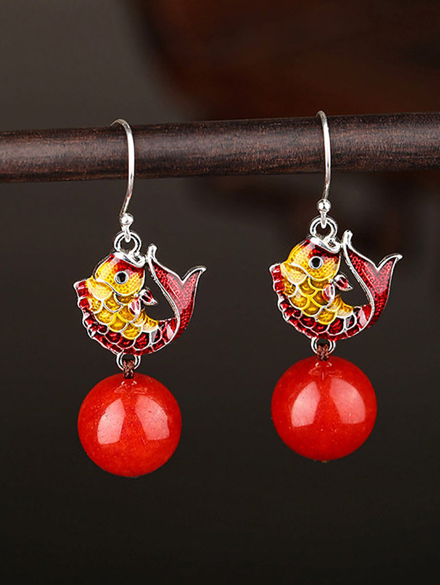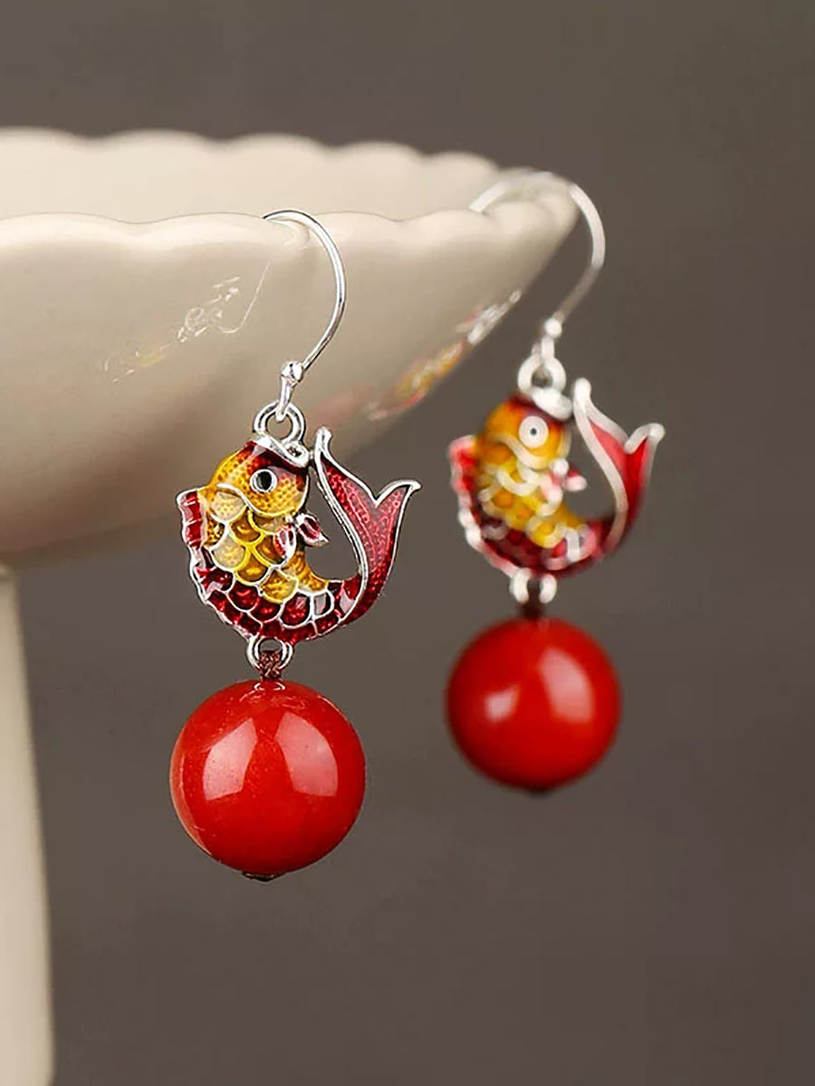 Etniske Cloisonne Fiskeøreringe til Kvinder med Røde Perler