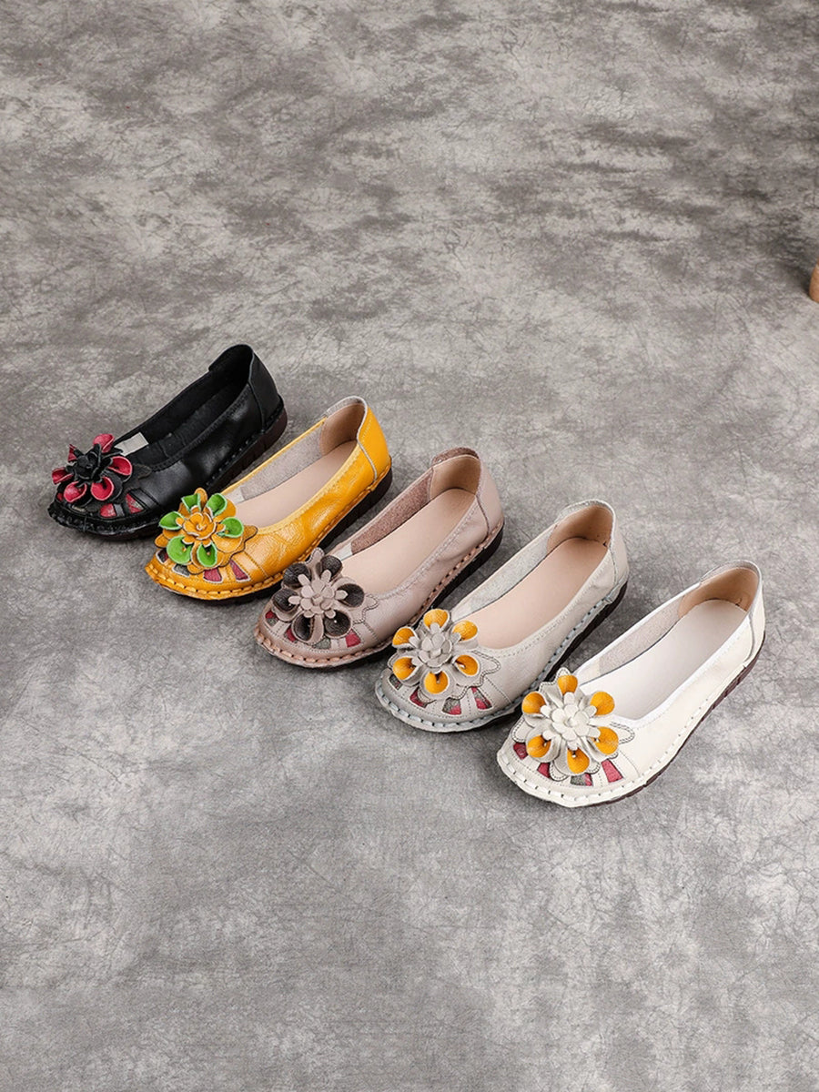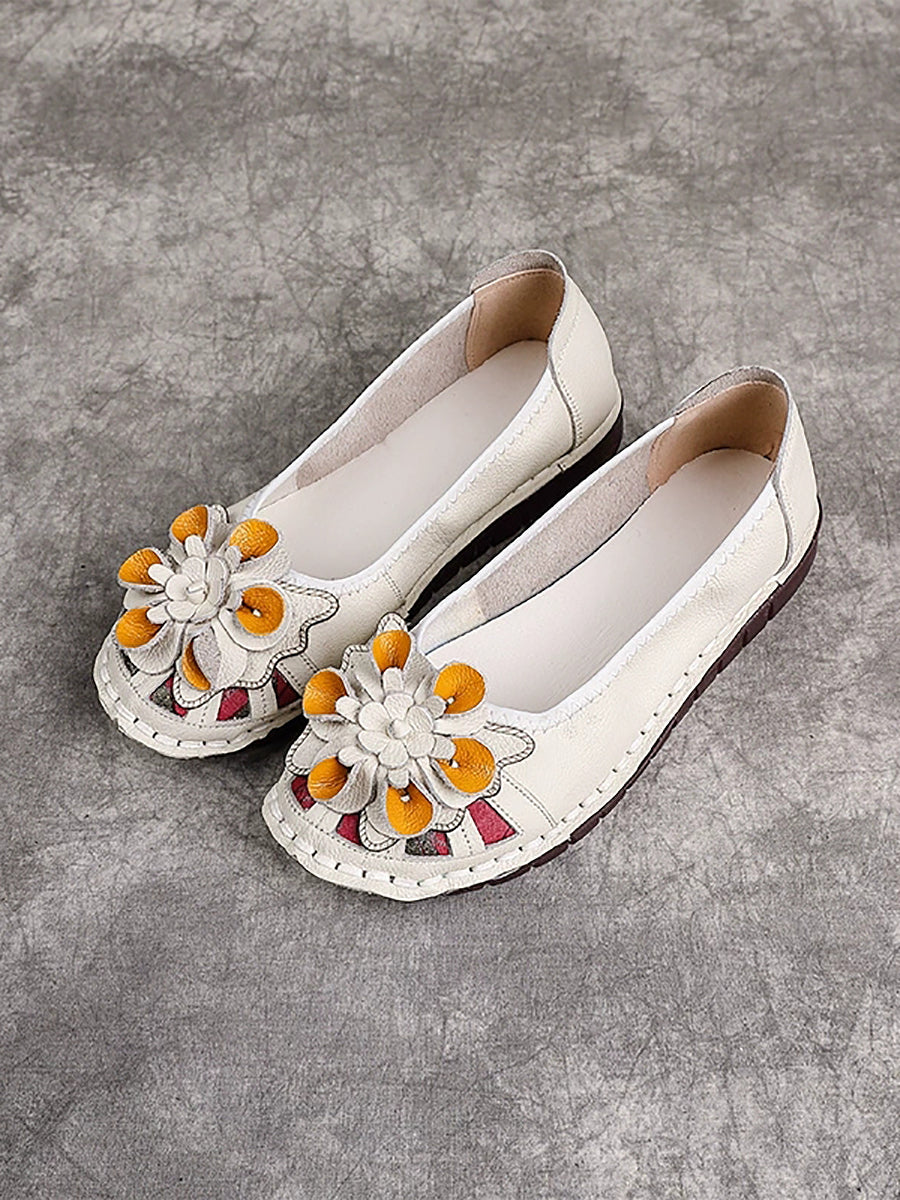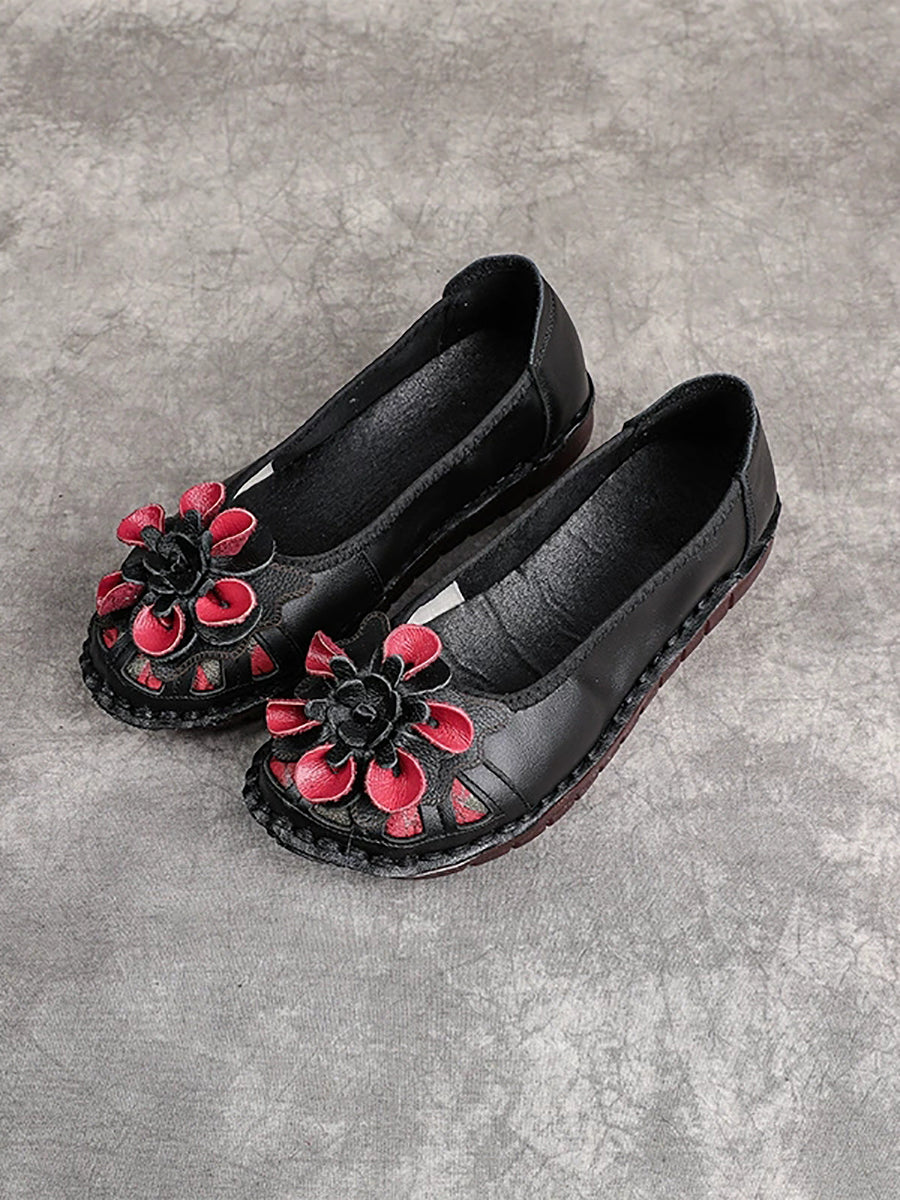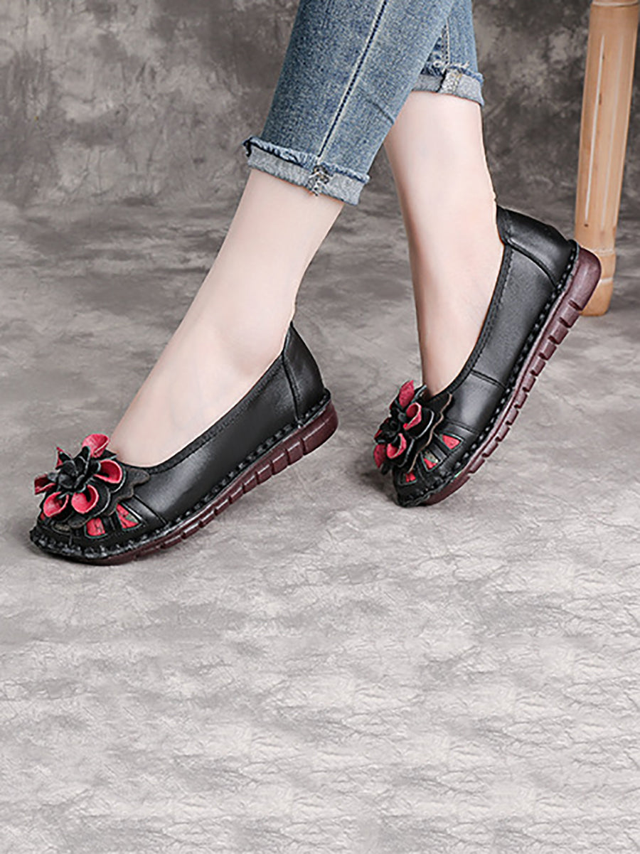 Kvinder Etniske Ægte Læder Blomster Lave Hælsko