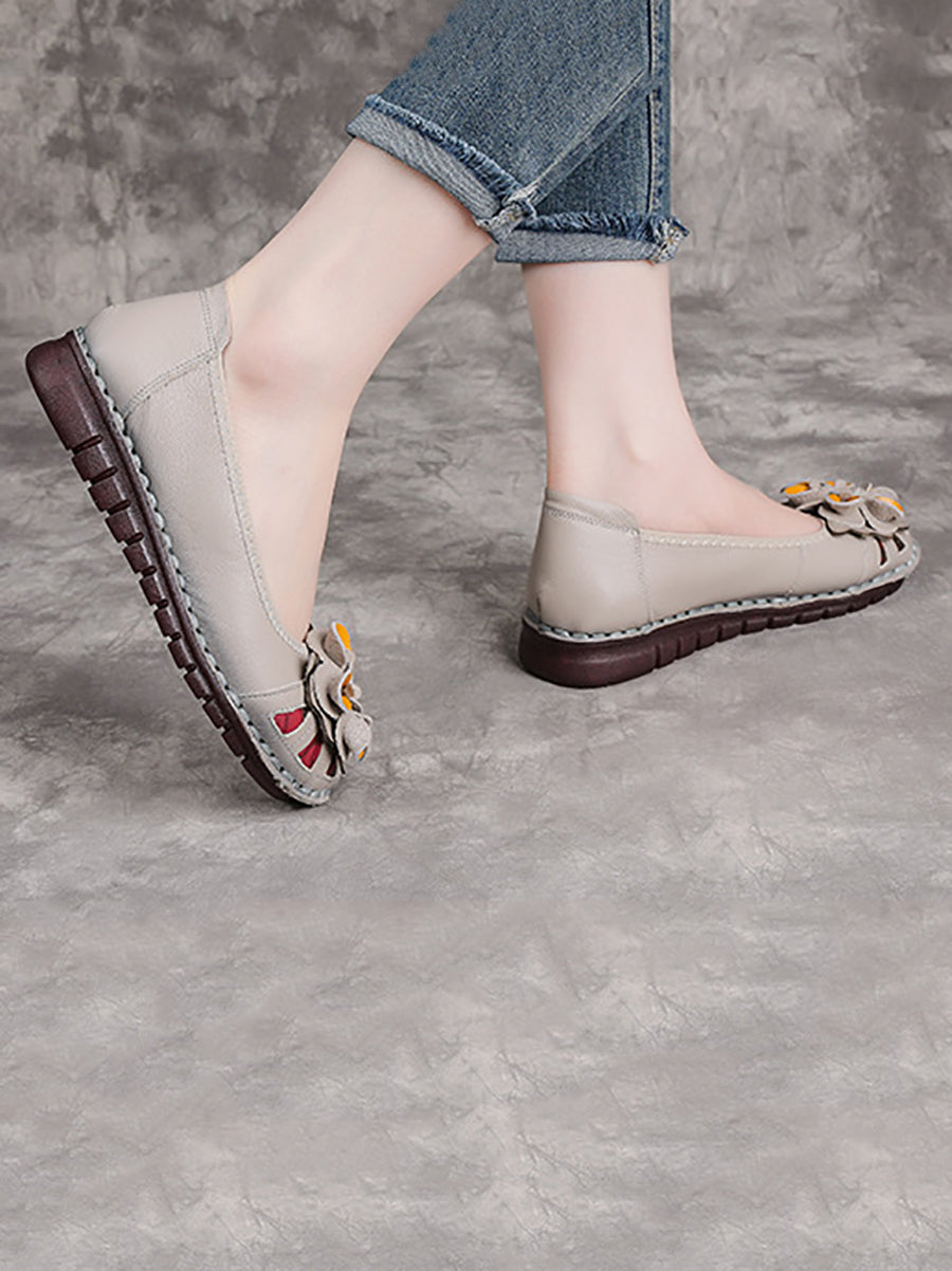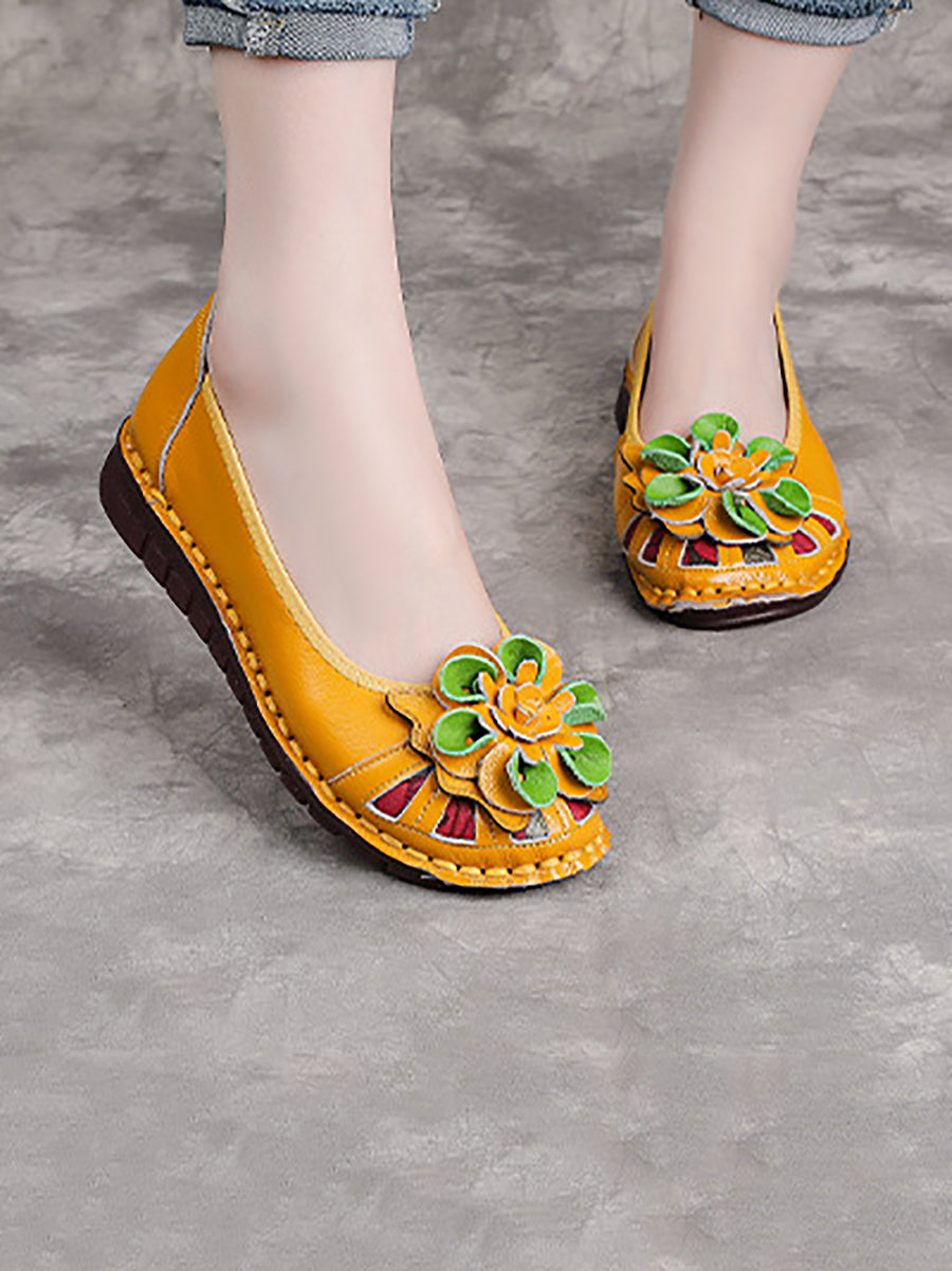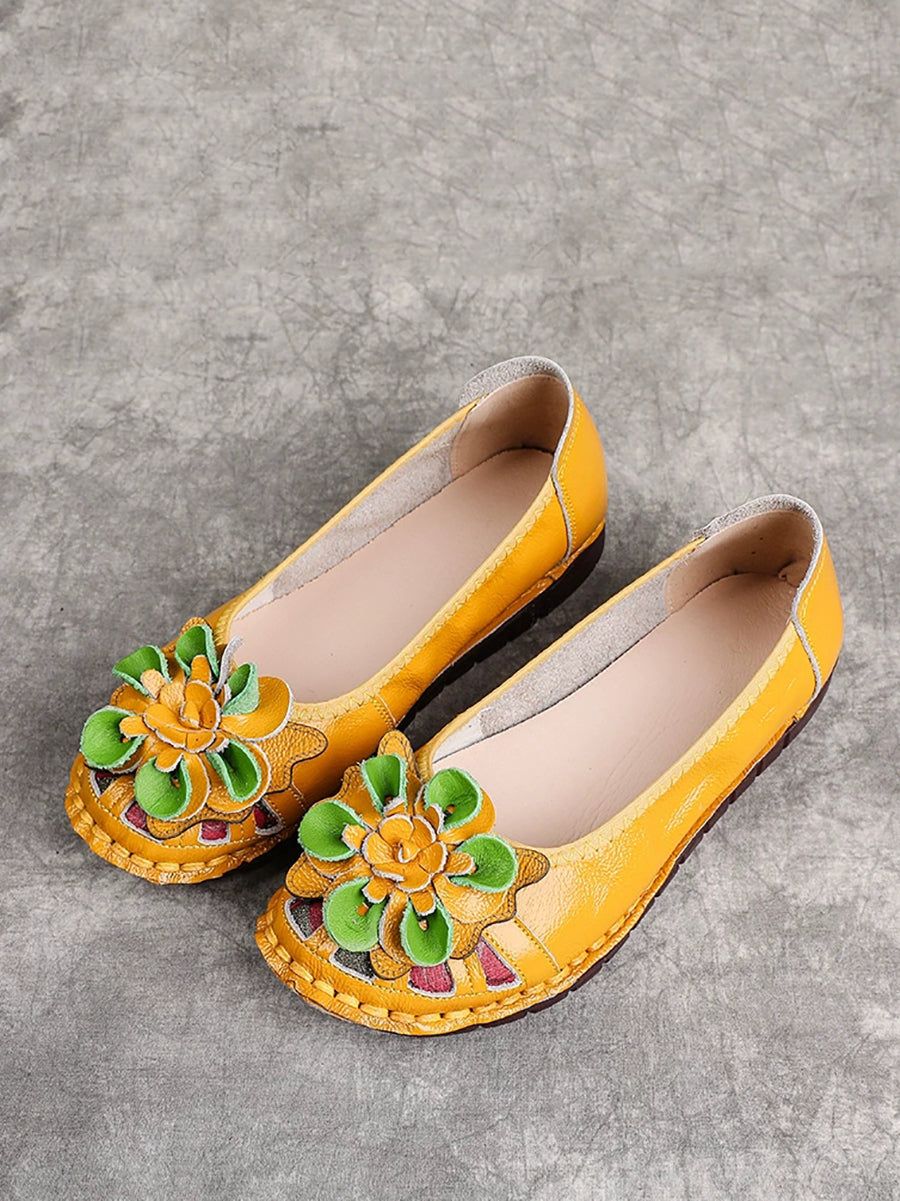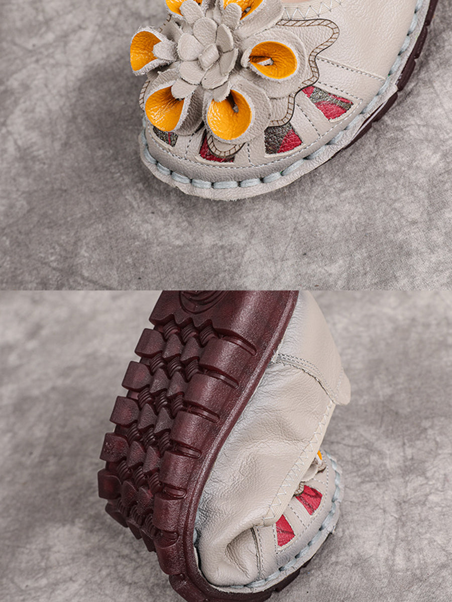 Kvinder Etniske Ægte Læder Blomster Lave Hælsko