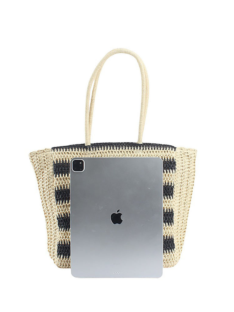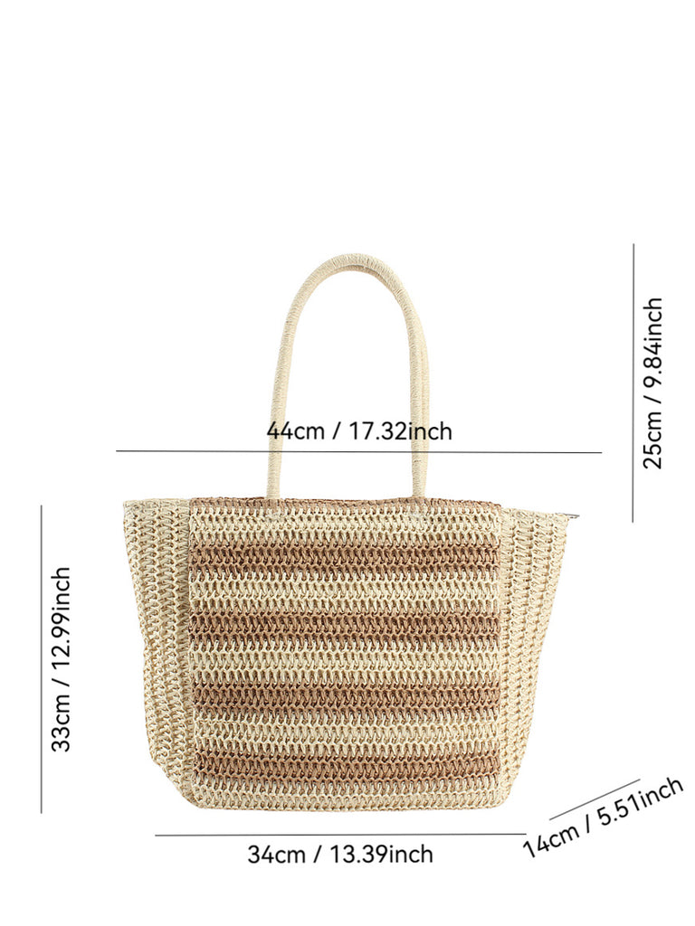 Damemode Colorblock stråvævet skuldertaske